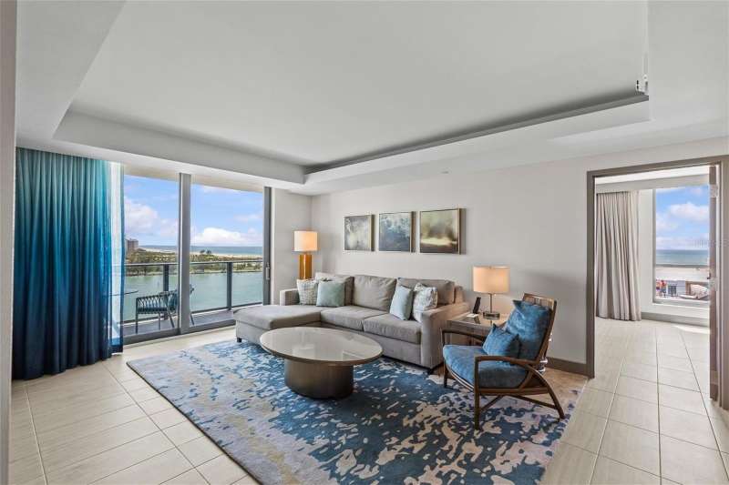 Experience elevated coastal living in this stunning, fully furnished 3-bedroom, 3-bathroom luxury condominium at the luxurious JW Marriott in Clearwater Beach. With sweeping views of the Gulf, this spacious residence blends contemporary design with relaxed coastal charm, offering the ultimate in resort-style living. Step into an open-concept living area adorned with coastal-inspired modern décor, where the sleeper sofa easily transforms into a full-size bed for additional guests. The gourmet 'vacation' kitchen is thoughtfully equipped with high-end appliances, including a refrigerator drawer, freezer drawer, convection microwave, and a full suite of countertop appliances, along with a full-size washer and dryer for added convenience. The primary suite is a luxurious retreat, featuring a king-size bed, spa-style soaking tub, upscale finishes, and breathtaking views of the turquoise waters. The second suite includes a king-size bed and en-suite bath, while the third bedroom offers double queen beds and access to a separate full bathroom — perfect for families or guests. Enjoy exclusive access to JW Marriott’s luxurious amenities, including a private beach with towel, umbrella, and food service, a spectacular rooftop pool with ocean views, multiple dining options, and exceptional resort services. Nestled in one of Florida’s most sought-after beachfront locations, this luxury condo offers an unmatched blend of comfort, style, and convenience — perfect as a vacation home, investment property, or full-time residence. This unit is currently enrolled in the Marriott Rental Program and acts as a suite in the resort; owner has usage rights outlined therein. Please ask for details. This is a hassle-free rental property and generates significant income. Live the JW Marriott lifestyle—where luxury meets the beach.
