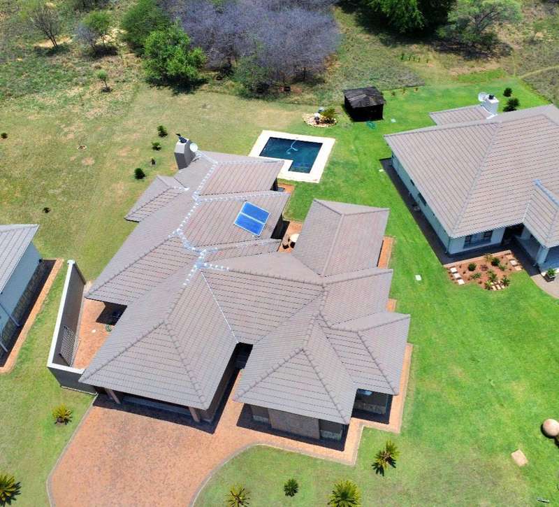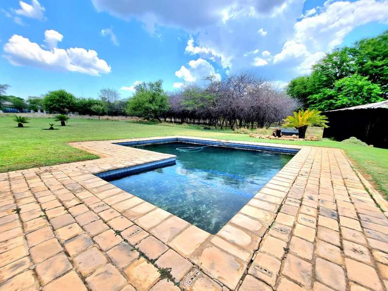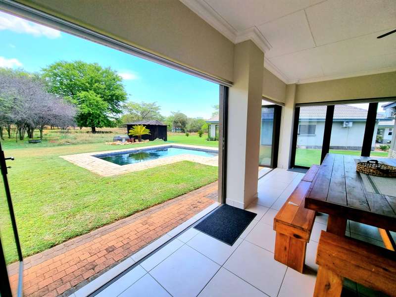 open up to reveal a sparkling swimming pool, providing the perfect backdrop of lush greenery and bushveld.