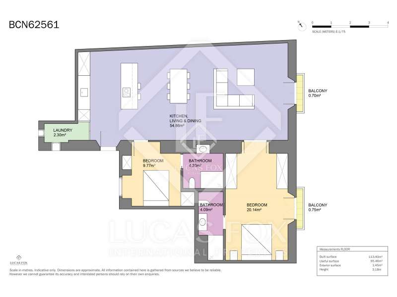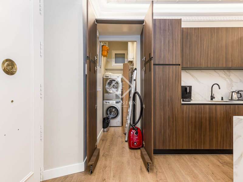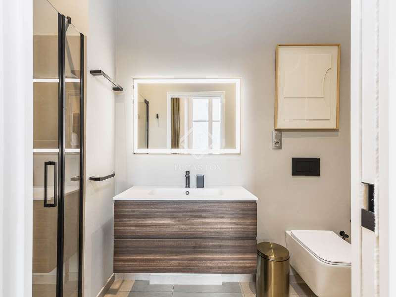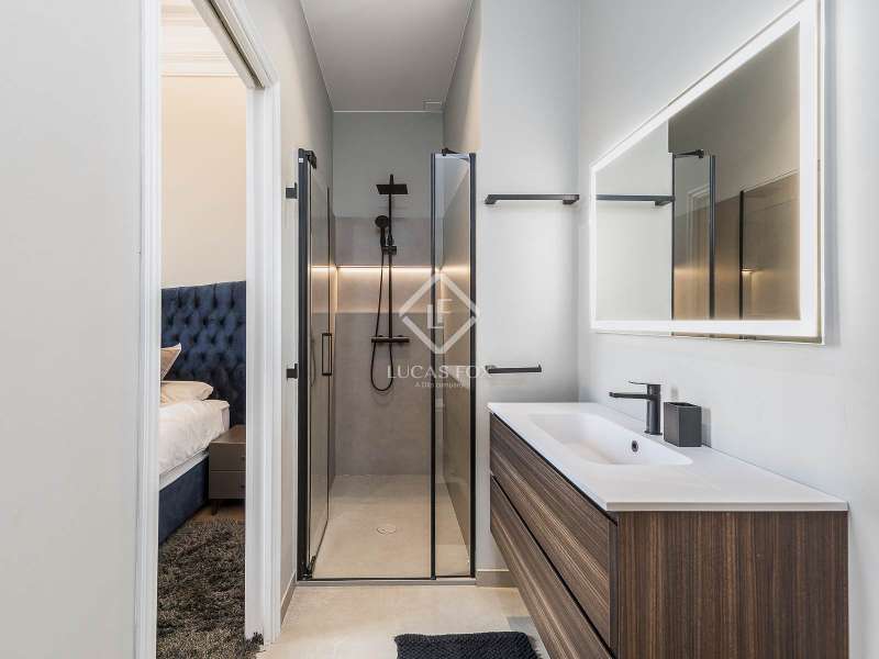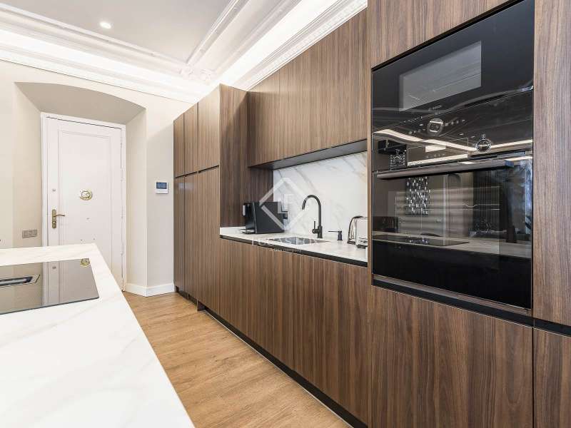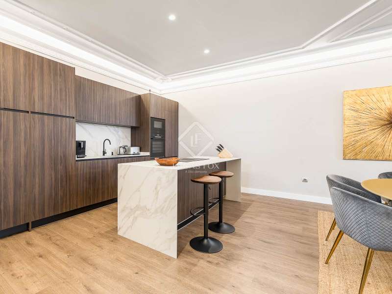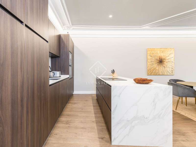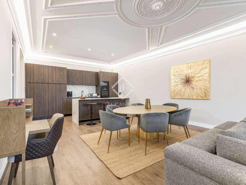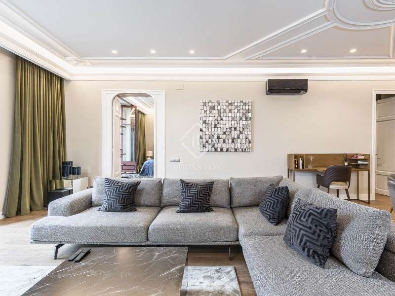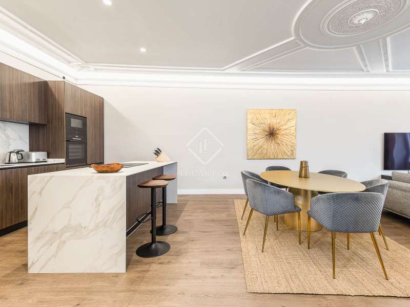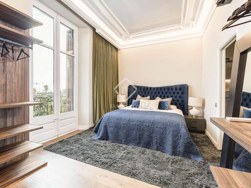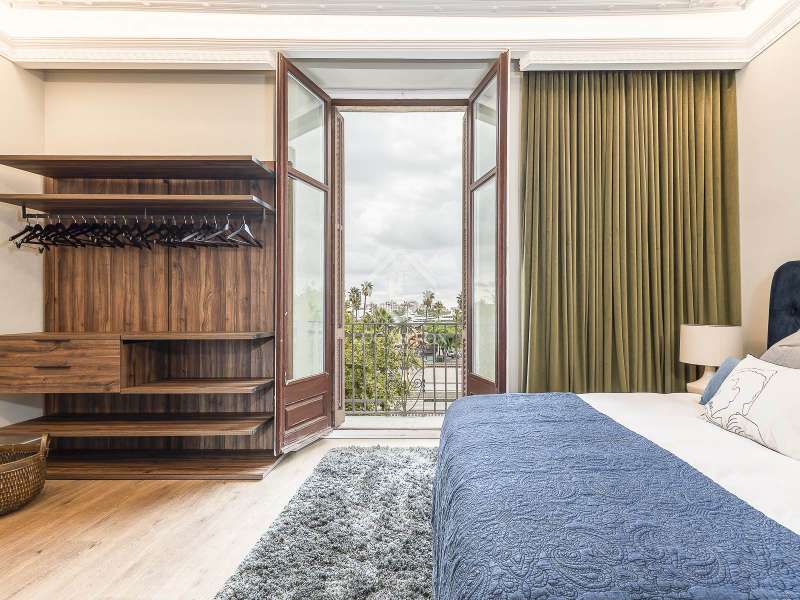 Located within a meticulously renovated finca regia (a historic grand building) in Paseo de Colón, this 116 m² property offers a rare blend of timeless elegance and modern luxury. The building holds a unique place in history, having once been a residence of the renowned artist Pablo Picasso. This exceptional apartment has been thoughtfully redesigned to an impeccable standard, while preserving its classic character. Original, restored ceiling mouldings add a touch of historic grandeur, complementing the contemporary open-plan layout. The main living area is a bright and spacious open concept, seamlessly integrating the living room, dining room, and an American-style kitchen. The kitchen is a chef's delight, equipped with high-end appliances and a stylish central island, perfect for both casual dining and entertaining. The residence features two beautifully appointed double bedrooms. The main suite is a generous size, complete with elegant wooden wardrobes, a private en-suite bathroom, and a balcony that offers captivating views of the port of Barcelona. The second double bedroom also includes a private en-suite bathroom and built-in wardrobes. The apartment is furnished with high-end pieces from Dubai and offers ducted air conditioning and heating for year-round comfort. A dedicated laundry area adds to the convenience of the home. The balconies offer a great place to enjoy refreshing breezes and views that stretch over the vibrant port of Barcelona. Please contact us for further information.