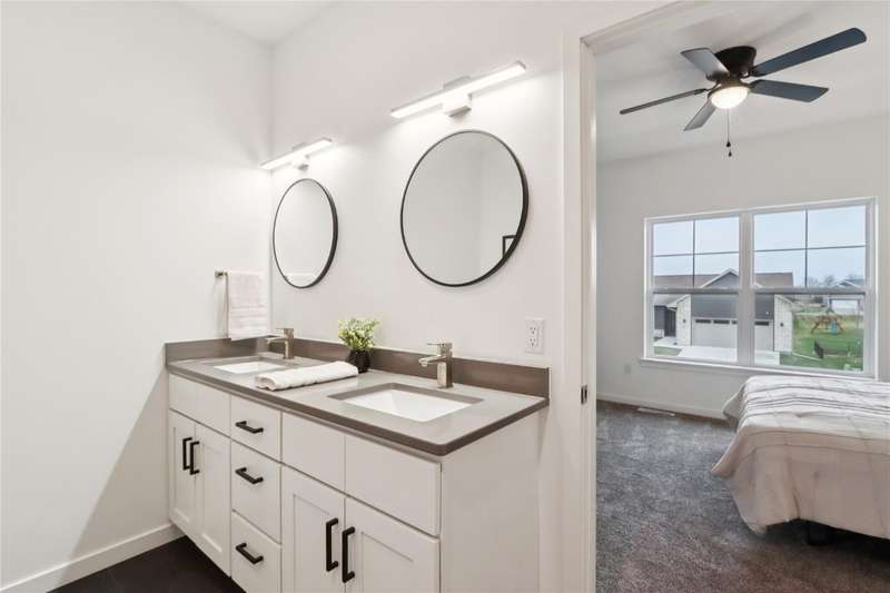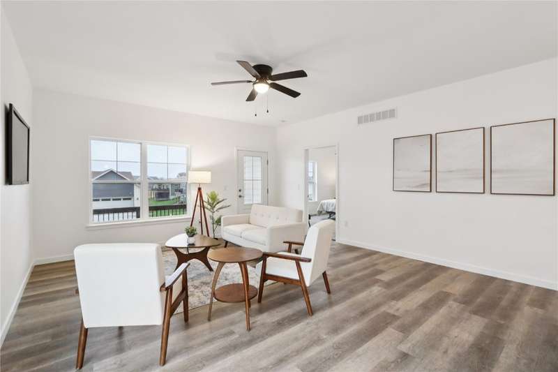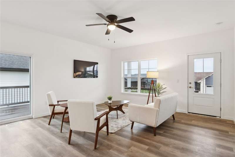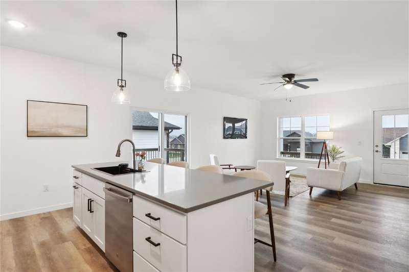 Super cute 5-bedroom, 3-bathroom with bright, open great room. Zero entry from 22-foot-deep garage. Laundry room behind kitchen off hallway. GE stainless steel appliances & concealed pantry. Bliote SS Waterfall Kitchen Sink Workstation with glass washer. GE Stove/range with griddle and broil functions. GE Fingerprint resistant French door refrigerator with water dispenser. Quartz countertops and island with breakfast bar. Lovely primary suite with unique tiled accent wall, generous walk-in closet and divided primary bathroom. Downstairs family room is generous blank canvas with large windows and there are two bedrooms with a bathroom and large storage space. Two stall garage with extra workspace on the side, plumbed for a heater and pedestrian door that opens onto extra parking pad. Cute front porch for relaxing with a cup of coffee. Located in northeast Iowa City with quick access to I-80