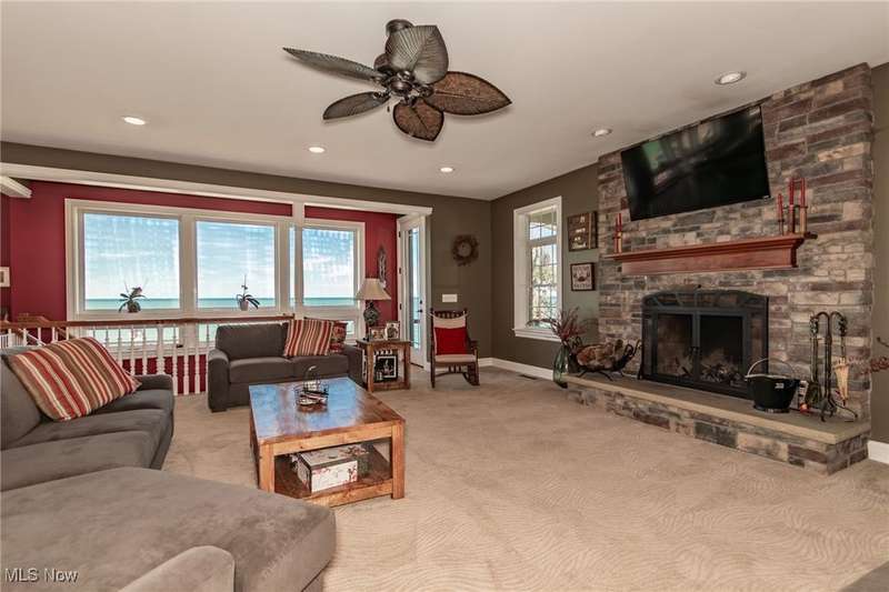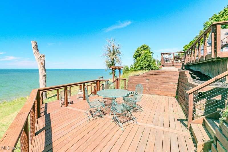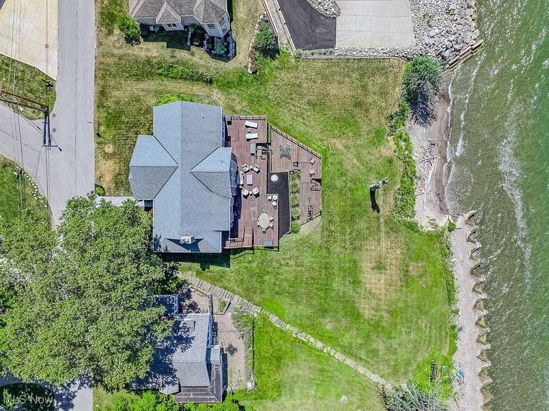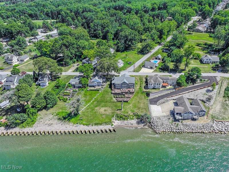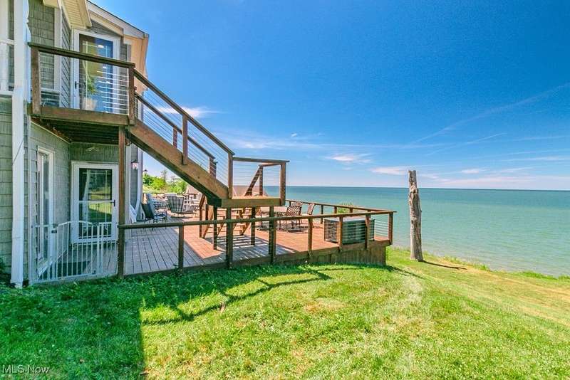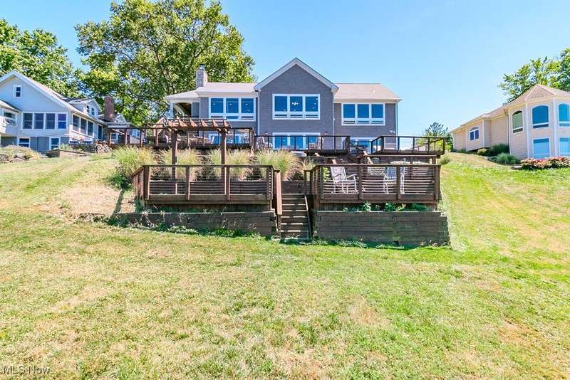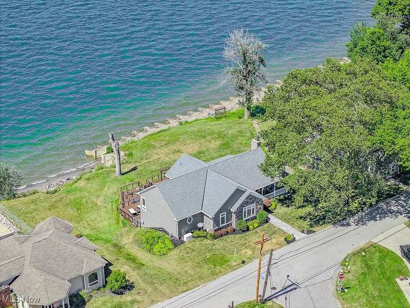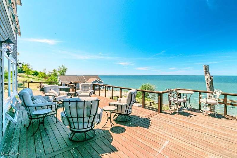 Welcome to your dream lakefront retreat on highly desirable Headland Road Beach! Built to last in 2012, this stunning ranch home sits on 1.4 acres of paradise with 104 feet of Lake Erie frontage. The house is built on a superstructure constructed of a series of 36 Caison's piers, 36" in diameter on perimeter points of the house, which extend 24 feet below the surface to the bedrock which then is tied to the surface in a 3' x 4' feet grade beam which the structure is built upon. It was designed by structural engineer Isaac Lewin one of Cleveland's top structural engineers and then Built by JLJI Specialty contractors which is one of the top leading contractors in the Cleveland area. Elevated for panoramic water views, the home offers a perfect blend of luxury and comfort. Step onto the charming wraparound porch and take in the view from the expansive three-level deck. Inside, the gourmet granite kitchen with island flows seamlessly into the great room, highlighted by a dramatic stone fireplace?ideal for entertaining or cozy nights in. The owner's suite is perfectly positioned to capture breathtaking sunsets, while two additional spacious bedrooms and a full bath complete the main level. The finished walkout lower level expands your living space with a family room, recreation room, and a 4th bedroom that also enjoys lake views. There's even a large deck-side storage room for all your wakeboards and water toys. The 3-car garage opens to a resort-style pool with a hot tub and cabana?your private staycation oasis. A separate storage shed adds extra convenience. Lake life doesn't get better than this! There is erosion control has been in place for over 30 years and is an effective element to ensure the integrity of the property!