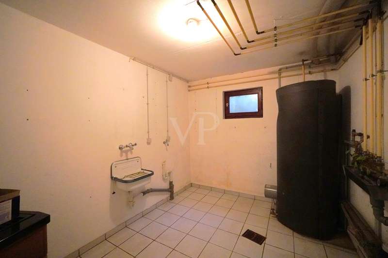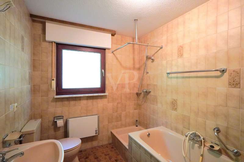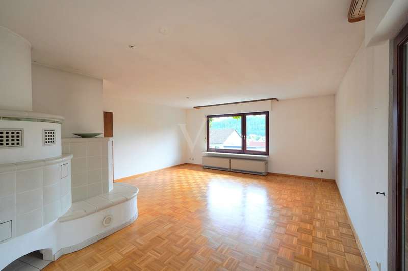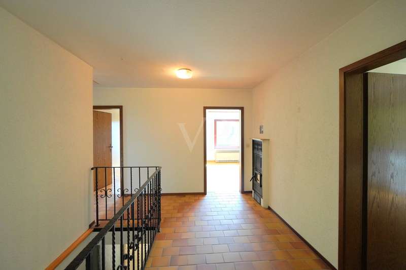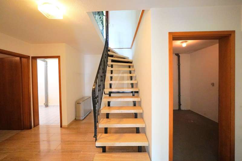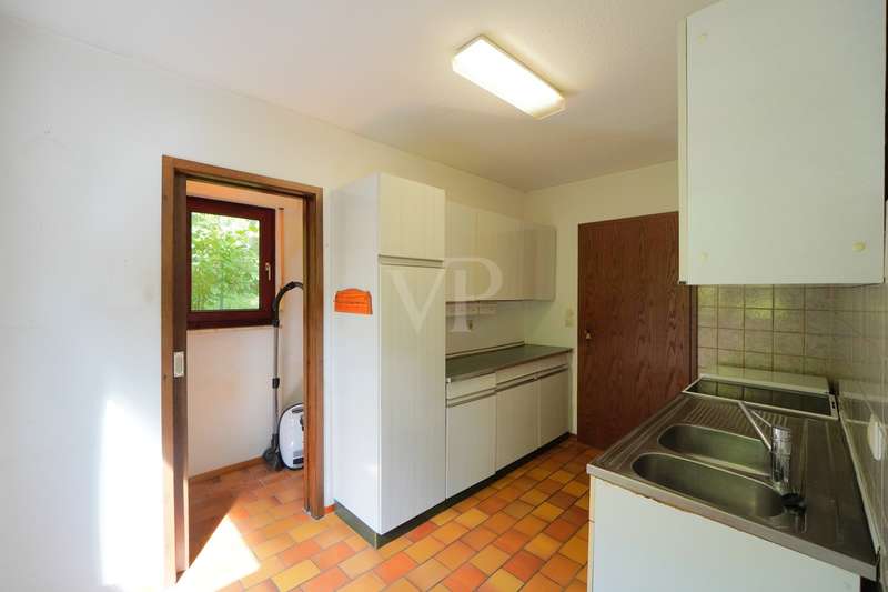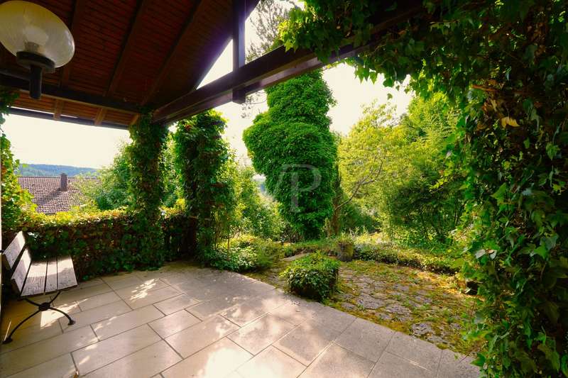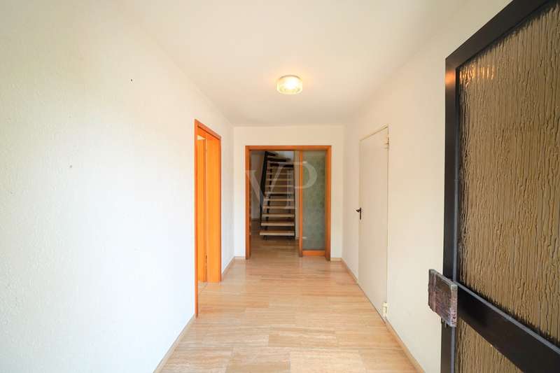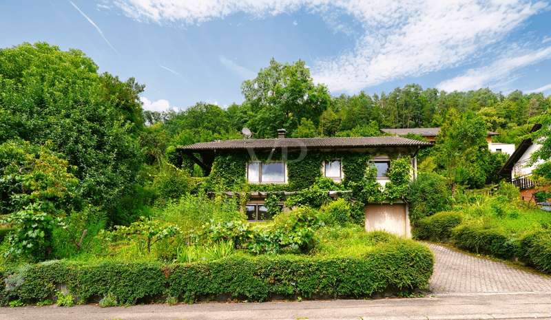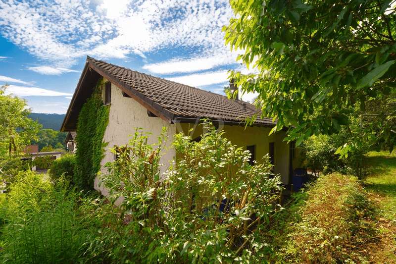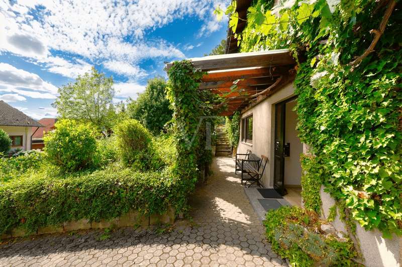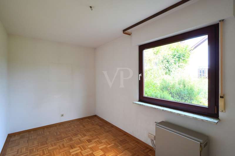 In a pleasantly quiet residential area of Sulzbach-Laufen, this well-kept detached house presents itself as a real space miracle with lots of charm and potential. The property is situated on an approx. 810 m² ingrown plot with a lovingly landscaped garden, mature trees, fruit trees and a spacious terrace. Here you can enjoy privacy and nature - ideal for families, those seeking peace and quiet or freelancers who need space. The approx. 110 m² house boasts a well thought-out and flexible room layout with a total of five rooms. On the first floor there is a separately accessible guest or office room with its own bathroom including shower, WC and washbasin - ideal for visitors, home office or as an independent area for older children. There is also a large garage with direct access to the house, a practical natural/damp cellar, a boiler room/laundry room and additional storage space. The upper floor welcomes you with a spacious hallway that leads to all rooms. In addition to the spacious living room, you will find a kitchen with a well-kept fitted kitchen and adjoining pantry, a separate guest WC, a daylight bathroom with shower, bathtub and WC as well as three further bedrooms (one parents' and two children's rooms). The focal point of the house is the spacious, open-plan living and dining area with a cozy wood-burning stove, which creates a pleasant living atmosphere, especially in the colder months of the year. From here, you have direct access to the large terrace and the green garden. A special highlight is the convertible attic, which offers further potential for living space or storage if required. The property is heated by electricity-powered night storage heaters and the centrally located wood-burning stove in the living room. The property is in a well-kept and used condition. Outside you will find a natural garden with many shrubs, fruit trees and a spacious front garden on a slope. The single garage, which can be reached via a spacious driveway, and additional storage facilities complete the offer.
