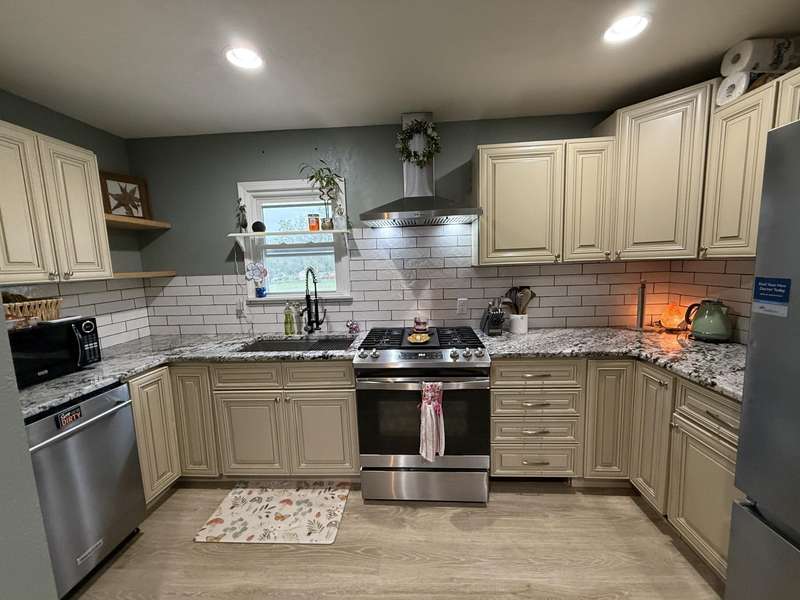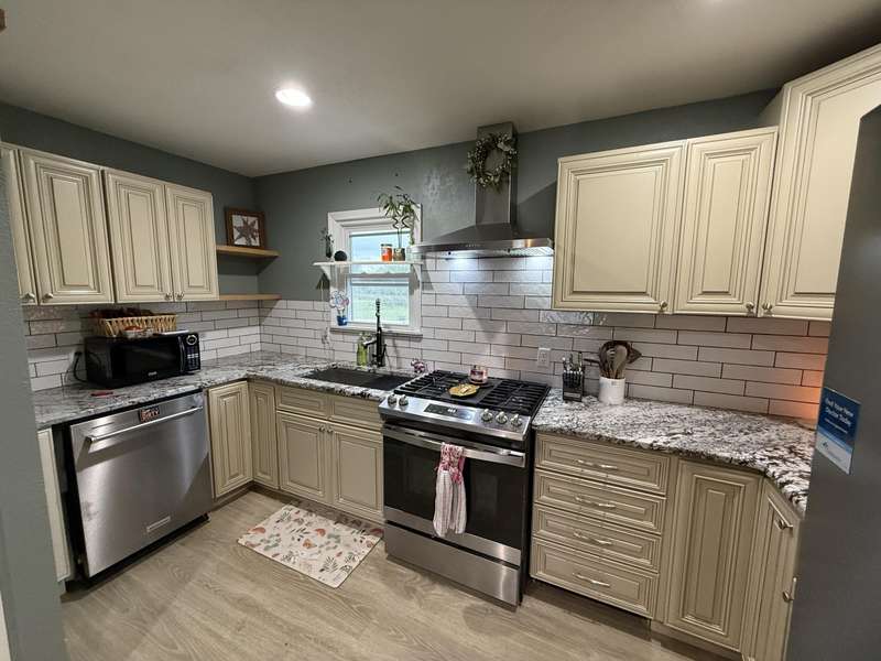 Experience the perfect blend of luxury, efficiency, and country charm with this completely renovated three-bedroom, one-bath home on a dead-flat 4.75-acre setting. Nearly every surface has been upgraded with meticulous attention to detail, offering a truly turnkey property that feels brand new.Step inside to find a designer-level remodel featuring custom cabinetry topped with granite counters, a fully gutted and reimagined bathroom, and mostly high-end Andersen windows throughout. Comfort and reliability are ensured with new gas central HVAC, a Generac whole-house generator, fully updated wiring and service panel, and new drain plumbing throughout. The brand-new roof (2024), insulated upgrades, and new gutters, fascia, and soffits mean peace of mind for years to come.The property offers excellent functionality for storage, hobbies, or small livestock with a detached 16'4' x 24'6' garage/workshop (approx. 400 sq. ft.) featuring power, concrete floor, and a new insulated garage door. Additional outbuildings include an open-air shed, detached concrete-floor shed, and bonus lean-to carport--providing three total covered parking spaces.Out back, enjoy open pasture views with approximately 1.5 acres of mature trees, complete with a private walking or riding trail--a perfect setting for peaceful evenings or a hobby farm setup.Served by private well and septic, this property lies just outside Springfield city limits in the highly rated Willard R-II School District, consistently ranked among the top in Missouri with a 9/10 district rating and above-average academic performance statewide.Whether you're seeking efficiency, tranquility, or a touch of luxury in the countryside, this remarkable property delivers it all