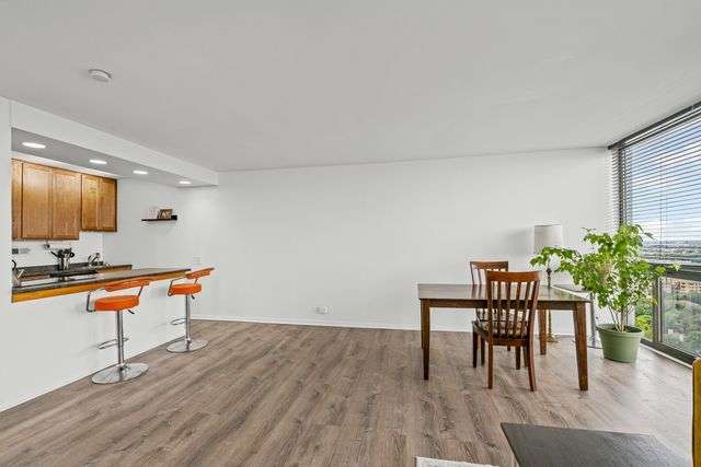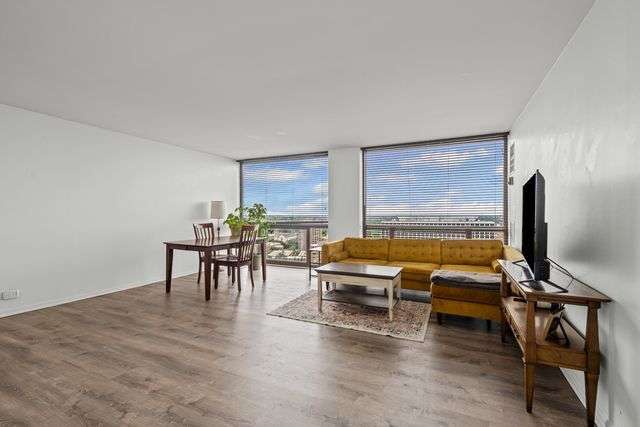 Enjoy sweeping city and sunset views from this spacious one-bedroom condo in a full-amenity building. The large open living room features a dramatic wall of west-facing floor-to-ceiling windows, filling the space with natural light. LVT [luxury vinyl tile] flooring runs throughout the main living area, creating a fresh and modern feel. The condo also offers excellent storage with an oversized entry closet, a linen closet, and a generous walk-in closet in the bedroom. The building itself provides everything you need for comfort and convenience: 24-hour door staff, an outdoor pool with sundeck, party room, tennis court, laundry room, on-site dry cleaners, fitness center and even a dog run. Rent includes heat, central air, water, and cable-making this a worry-free home. Tenant pays electricity. Situated in the heart of Uptown, this home offers easy access to Chicago's vibrant North Side lakefront. Pet owners will appreciate being minutes from Montrose Dog Beach, while outdoor enthusiasts can enjoy the lakefront trails, Montrose Harbor, and expansive park space. Public transportation couldn't be more convenient-the CTA Red Line, multiple express buses to downtown, and Lake Shore Drive are all just moments away. Shopping, dining, and entertainment options abound nearby in Uptown, Buena Park, and Lakeview, ensuring you'll always have something to enjoy right outside your door. This is your chance to live steps from the lakefront in a full-service building with every convenience. Garage parking available for $250.