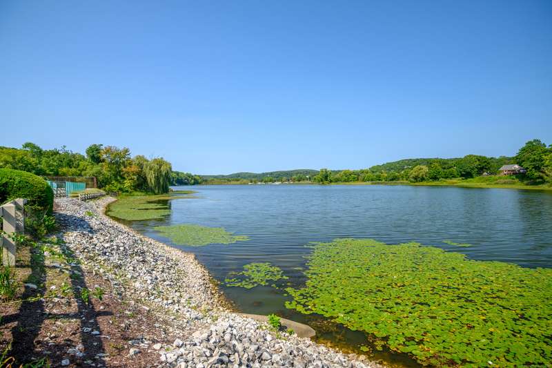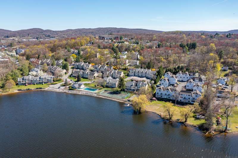 Year round waterfront lake views near the NY border offering carefree living. Embrace nature's beauty creating the ultimate sense of peace and relaxation. Imagine a life where recreation is right outside your door. Enjoy direct access to boating, fishing, kayaking, tennis, sailing and a nearby inground pool. This end unit ranch style home boasts a spacious 2 car garage, wide open floor plan grounded by new engineered flooring and highlighted by a crackling wood fireplace. Step through glass sliders to find an expansive deck that runs the length of the home.......ideal to capture the flight of eagles, stargazing or hosting family parties. There is an additional outdoor seating area surrounded by flowers and plantings just outside the front door. This coveted location is minutes to the Danbury Fair Mall, Target, Whole Foods, Trader Joes, trendy restaurants, nationally acclaimed Richter Golf Course, local theater and the Brewster train station to NYC. The Association responsibility inc