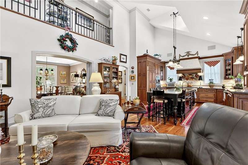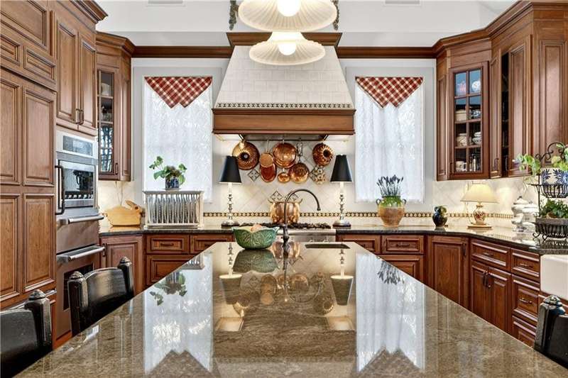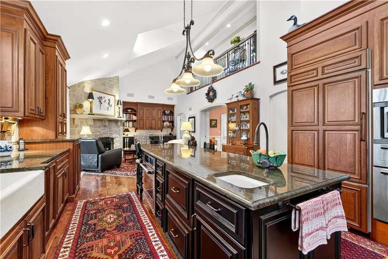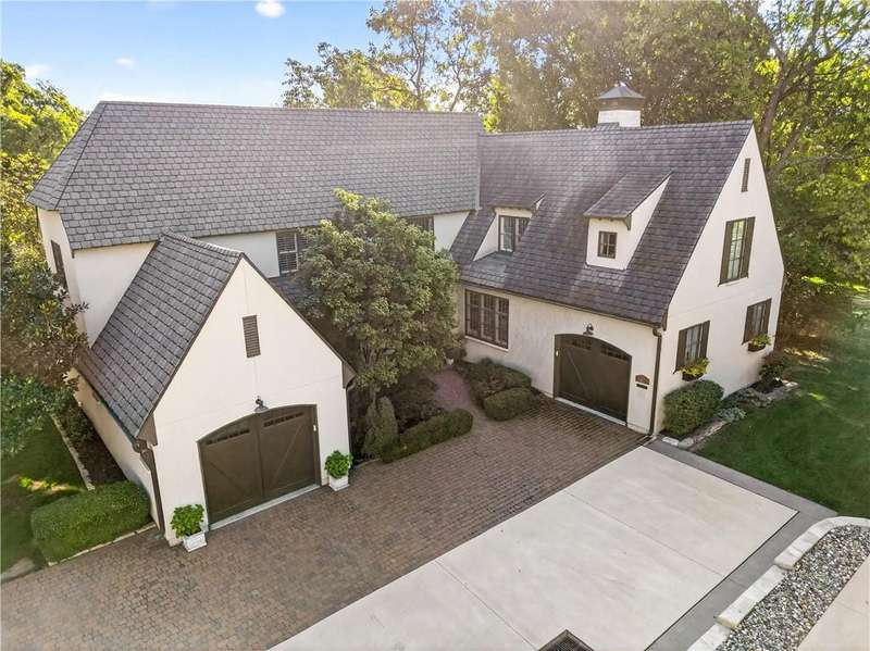 Welcome to this custom built one-owner 1.5 sty villa. Located in the highly sought after Crescent Court Community, this 4,030 sqft home combines timeless design, superior construction, and everyday convenience. The expansive entryway w/ soaring ceilings and sweeping staircase introduces the homes warmth and craftsmanship. Rich walnut floors, 1 solid wood doors, and custom millwork highlight the exceptional quality found throughout. The kitchen is a showpiece w/ vaulted ceilings, cherry cabinetry, granite countertops, and professional-grade Thermador appliancesincluding a paneled refrigerator w/drawers, double ovens, and 6-burner gas range. The adjoining hearth room features a beautiful stone gas fireplace and convenient wet bar, creating the perfect gathering spot. The spacious living room showcases another gas fireplace w/a custom mantle and built-ins, enhanced by abundant natural light and walnut flooring. The main-level primary suite offers plantation shutters, ceiling fan, and expansive walk-in closet w/center island, plumbed for a stackable washer and dryer. The ensuite bath includes double vanities, jetted soaking tub, large walk-in tile shower, and private water closet. Upstairs, youll find four additional bedroomseach spacious with generous closets and beautifully upgraded bathrooms. Two bedrooms being large suites w/their own private bathrooms and the remaining two bedrooms being accommodated by a shared bathroom. Dont miss the additional finished space over the garage! Additional features include plantation shutters throughout, E-glass casement windows with true divided light, two HVAC systems, two dedicated office spaces that provide flexibility for work or hobbies, and a huge daylight lower level offering 2,200 sqft ready for finishing. Outside, enjoy the private brick patio framed by a stunning stone wall, lush landscaping, all-copper gutters, and stone chimney. A rare opportunity for quality, privacy, and location in the heart of Kansas City.