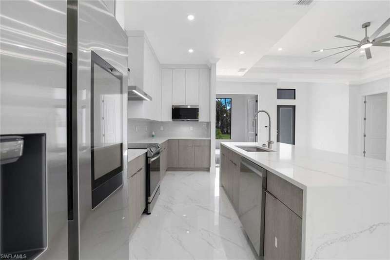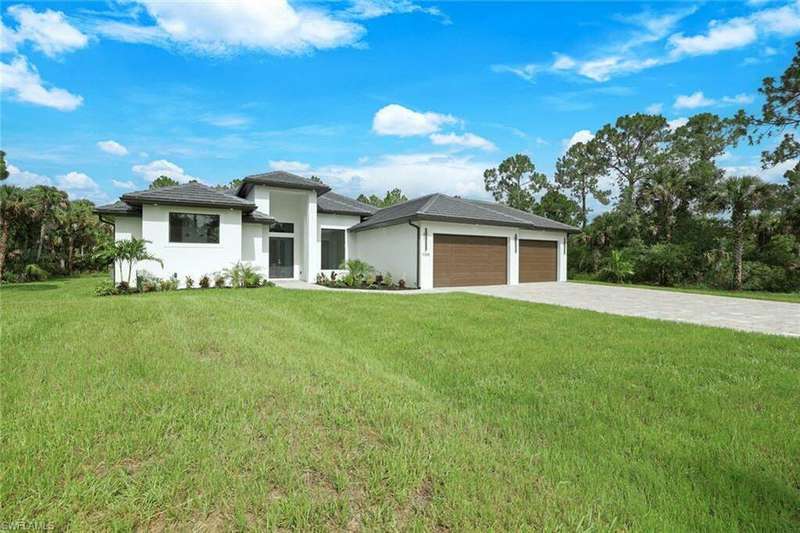 Home 100% complete! This is an excellent prime location with the extension of Vanderbilt Beach Road. A very large lanai overlooking a serene wooded view in Golden Gate Estates. An elegant kitchen with 2 tiered cabinetry. An accommodating floorplan, suitable for large families. Luxurious master suites with his and hers closets, separate shower heads and soaking tub.