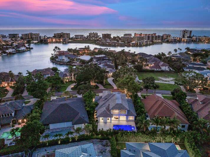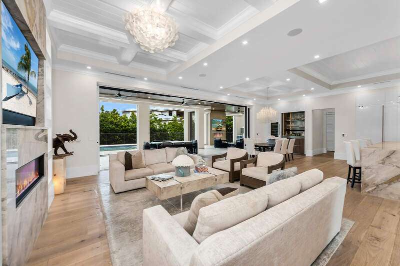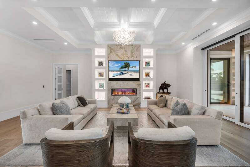 Stunning 2023 custom built home meticulously designed by Clive Daniel and Robb & Stucky interiors, furniture negotiable and features 5 bedroom/en suites, plus a Pilates / yoga studio. The home was designed to be handicap friendly with an elevator that takes you from the garage level up to the main floor and second floor of the home, also Perfect for heavy lifting! The primary bedroom features his and her walk-in California Closets, a large walk in shower, a free standing tub, electric blackout hunter Douglas shades and 2 private Japanese smart toilet rooms. Entire home offers an array of technology throughout and is powered by Savant Automations' new *brilliant smart home system* with video audio and sound controlled from every area of the house linked to your smart phone. As you walk through this well thought out floor plan, you will find an expansive family room with floor to ceiling Anderson pocket sliding glass doors that allows plenty of natural light with wide plank legno bastone flooring throughout. The family room will lead you into the oversized Chef's Kitchen with Sub-Zero Wolf and Asko Appliances with a full butler's pantry. On the second level offers guest en suites, along with a large bonus room/loft that can be used as a home theatre set up or game room. Relax by your Resort Style salt water pool/spa surrounded by Brazilian trees while enjoying the Florida weather that also features a 900 sq foot lanai area with electric roll down screens and shutters, a fireplace, mounted 85 inch TV with 10 outdoor speakers perfect for entertaining. A built-in summer kitchen with outdoor subzero refrigeration and ice maker. This Moorings masterpiece has it all and touched by all. Within minutes to Historic Downtown Naples, white sugar Sand Gulf Beaches, and all that Naples has to offer! Just 1.5 miles to four seasons and waterside shops. Truly a rare find! 12 Foot Elevation.