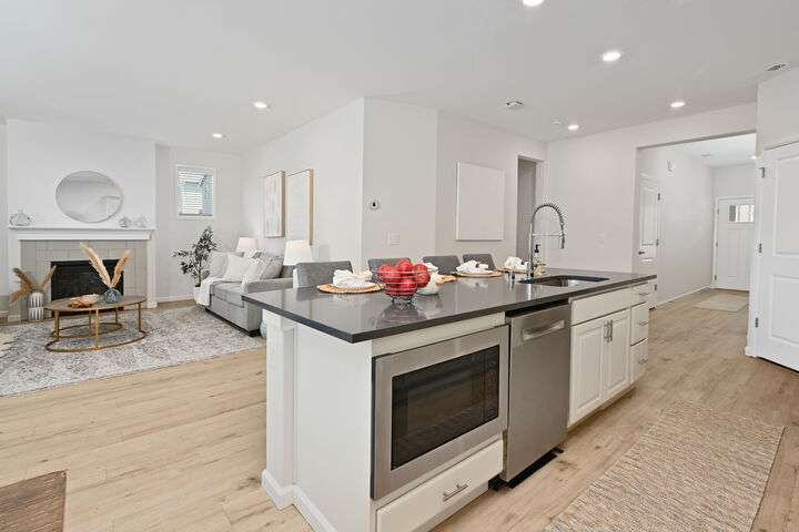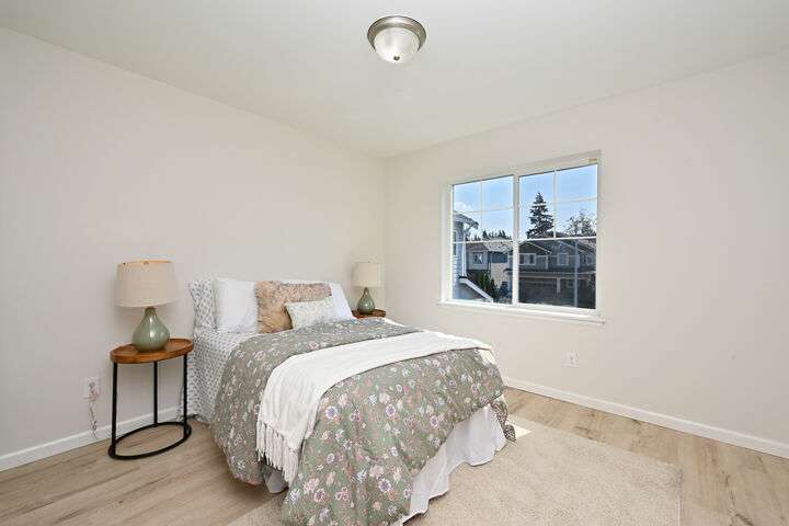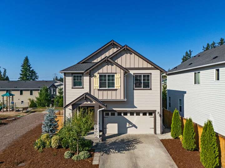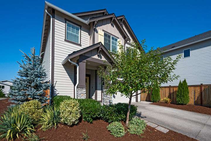 Traditional & turnkey 2019 Lennar resale with west light with partial views on cul-de-sac. This is where modern comfort meets thoughtful design. Sizeable great room with big kitchen island, gas fireplace & slider to back. Ideal home office & 3/4 bath on main + 4 top-floor beds with upper loft. Primary Suite has privacy, large bath & walk-in closet. 2nd upper bath has new lux shower with body jets & loft is perfect extra living space. Stainless appliances, quartz counters, central A/C, long driveway, attached 2-car garage & fully fenced in back has been rediscovered. Quick I-405 & 522 access too. Whether you're hosting friends, working remotely or relaxing in the owner's suite, this home has the spaces you need - right where you need them.