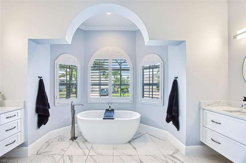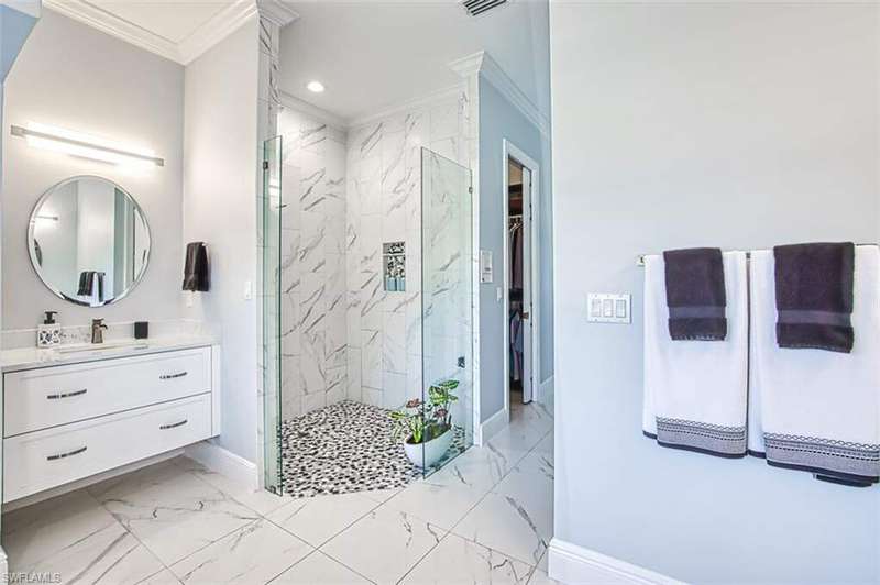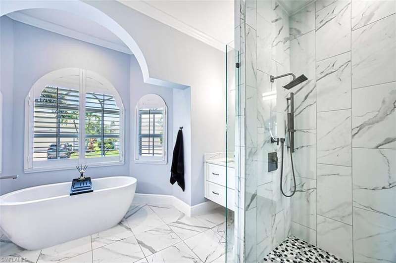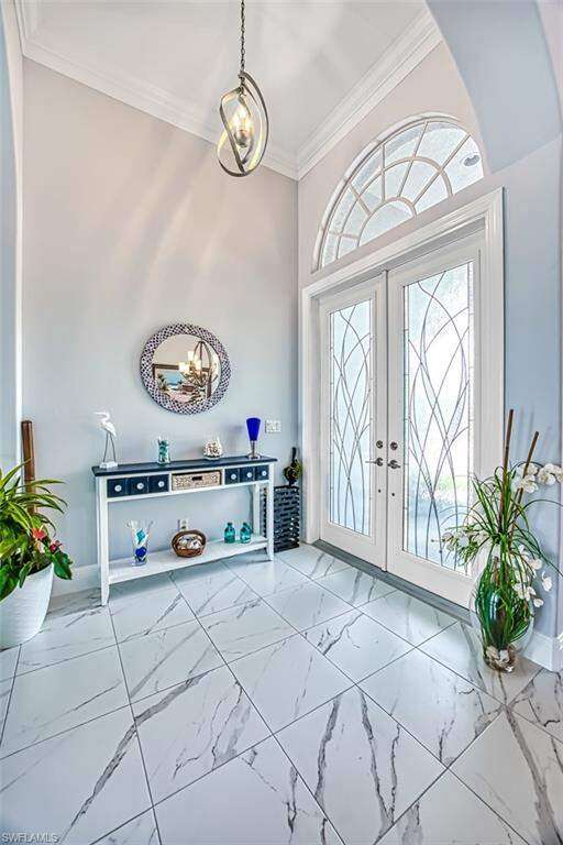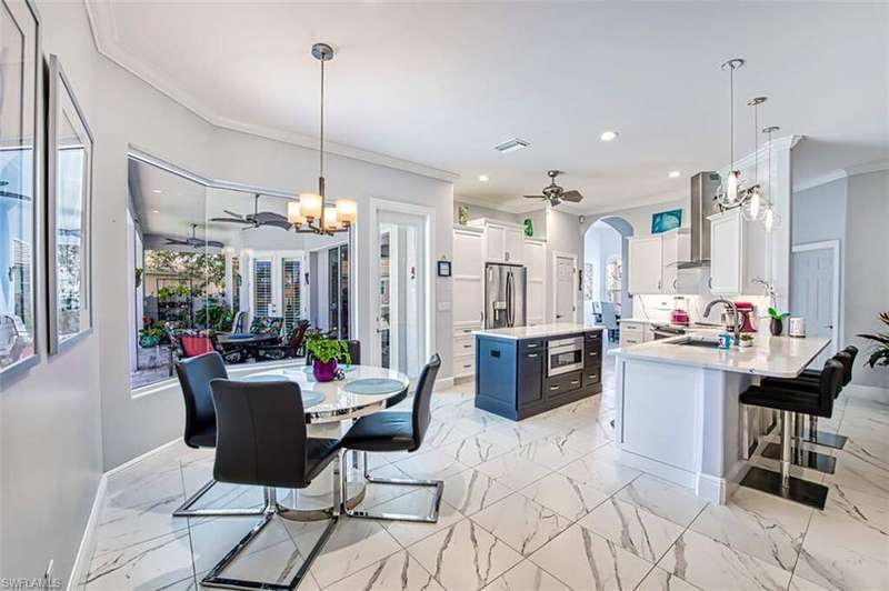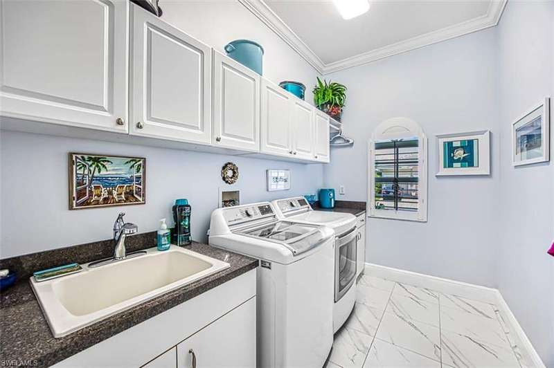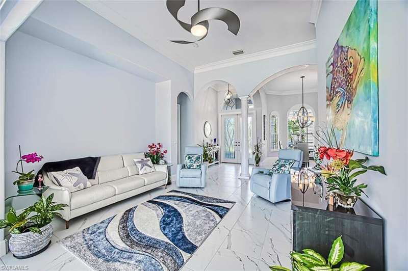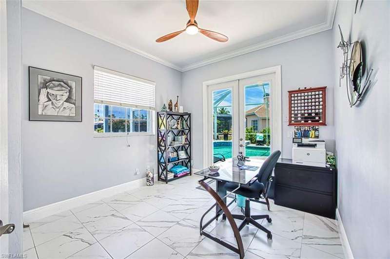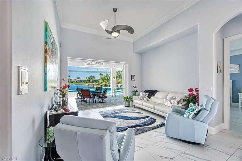 Welcome to your dream waterfront home with southern exposure in Southwind Preserve! This stunning single family home boasts 4 bedrooms, 3 bathrooms, and a 2 car garage, providing ample space for you and your family. The salt water pool is perfect for relaxing on hot summer days, while the waterfront location offers beautiful views and a sense of tranquility. Southwind is located close to Sanibel, Captiva Islands and Ft Myers Beach. The recently remodeled interior features quartz countertops, wood cabinets with undercounter lighting, stainless steel appliances, tile flooring, modern lighting, plantation shutters along with a cozy fireplace in the adjoining family room, wholehouse intercom/stereo system all creating a modern and inviting atmosphere. The recently replaced pool/lanai enclosure features a picture window overlooking the lake and fountain provides peace of mind and added luxury. Lanai has elec, ventilation and water to add summer kitchen. With fabric hurricane protection and hurricane doors, you can rest easy knowing your home is safe and secure during storm season. The salt water pool was recently renovated with a diamond brite finish and has a heater for perfect year-round enjoyment, while the upgraded master closets and crown molding throughout add a touch of elegance. Tile roof was replaced in 2019. The garage features over the garage door shelving for extra storage and the floor has been upgraded with Tidal Wave full chip polyurea concrete floor coating system. All this, plus, the home comes with a transferrable FEMA flood insurance, so you can feel confident in your investment. Don't miss out on this incredible opportunity to own a truly exceptional home in Southwind Preserve! Home is located close to the Down Town District, fine dining and shopping, our international airport, I75 and so much more. Be sure to view the attached virtual tour to feel how open and spacious the home truly is.