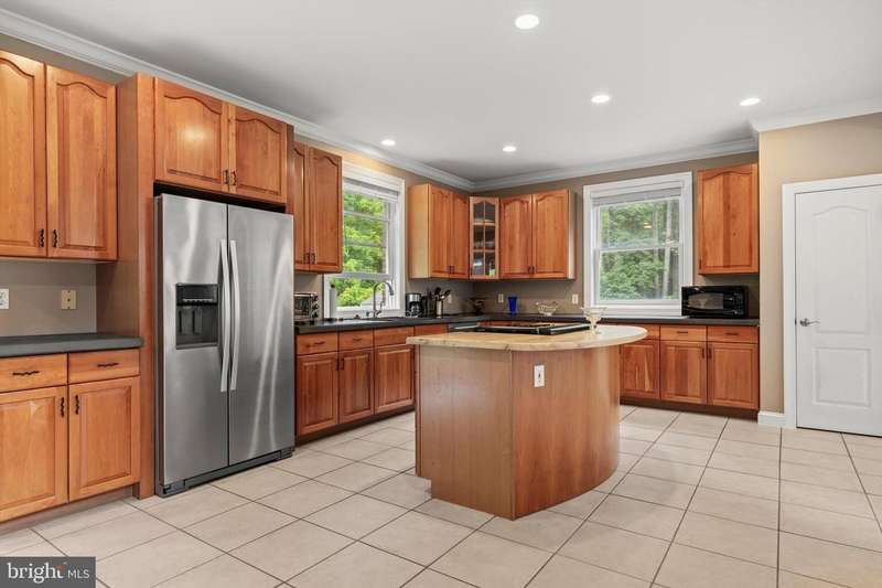 Classic all brick colonial in Glyndon on 2.52 secluded wooded acres! The open concept main level offers 9' ceilings and a contemporary look with ceramic tile floors throughout, a sophisticated kitchen with large center island, concrete counters, recessed lighting, updated stainless steel appliances and gas cooking open to an inviting family room with a gas fireplace. The upper level primary bedroom has vaulted ceilings, huge walk-in closet, a spa-like primary bathroom. 3 additional bedrooms occupy this level and another full bathroom. A bright finished lower level that is in pristine condition, game room/recreation room and 3rd full bathroom, walk-out to side yard. 9' ceilings on all 3 levels. oversized 2 car attached garage with built-in shelving plus a barn that has 2 levels, and there is plenty of additional parking for RV or a boat! No HOA! The address is Central Ave but you will need to turn on Glyndon Mews and take the 2nd driveway on the right, this is the next driveway after the school drive. Actual zip code is Glyndon 21071