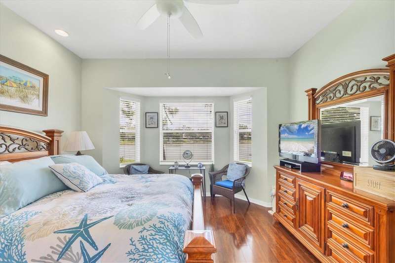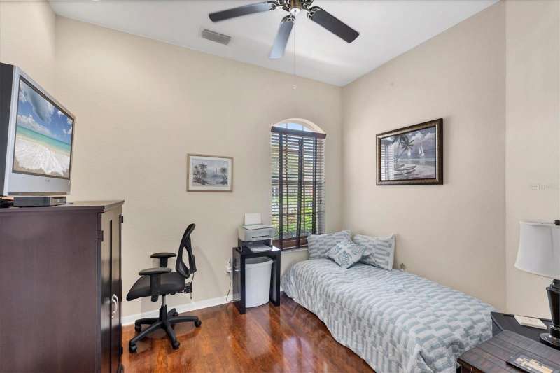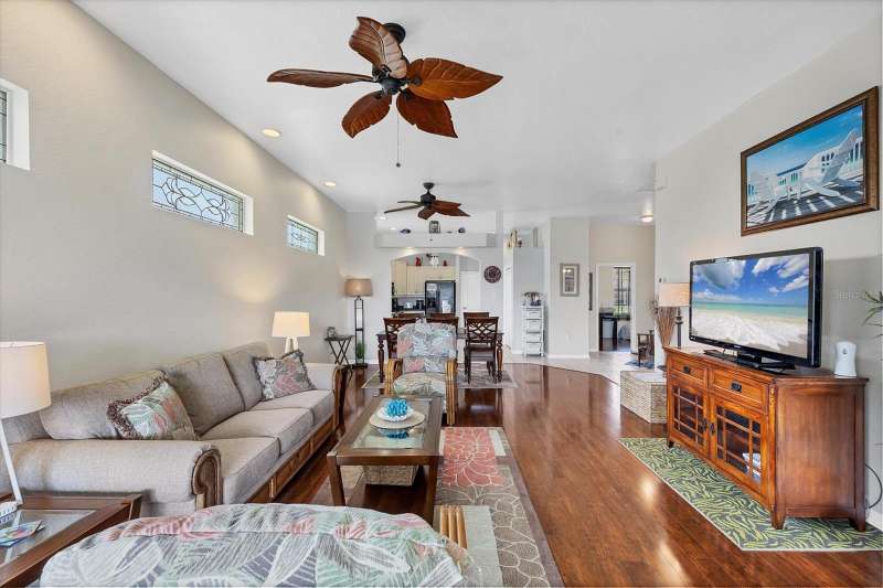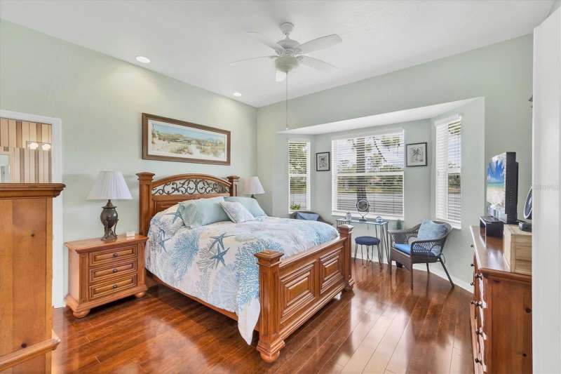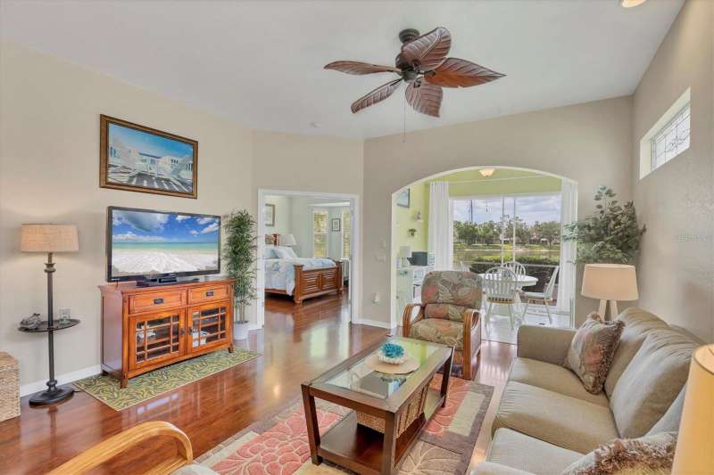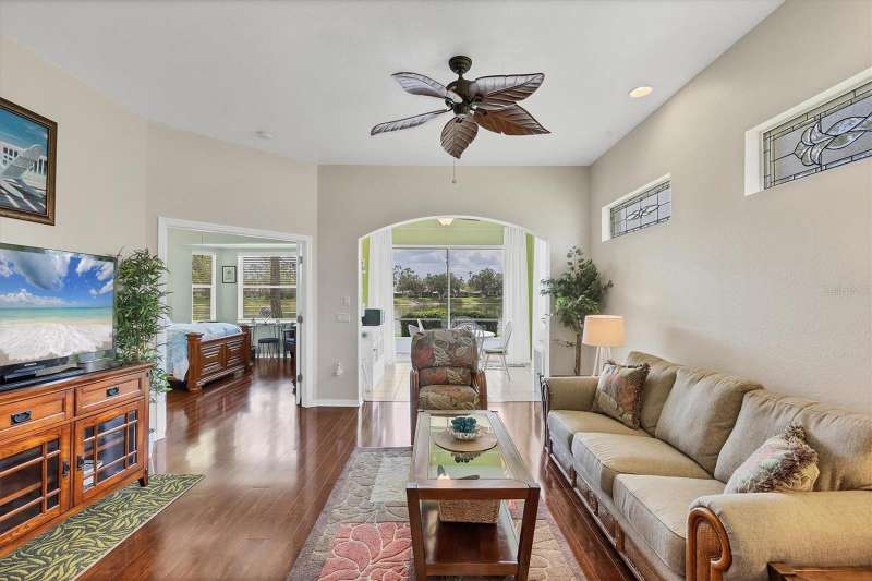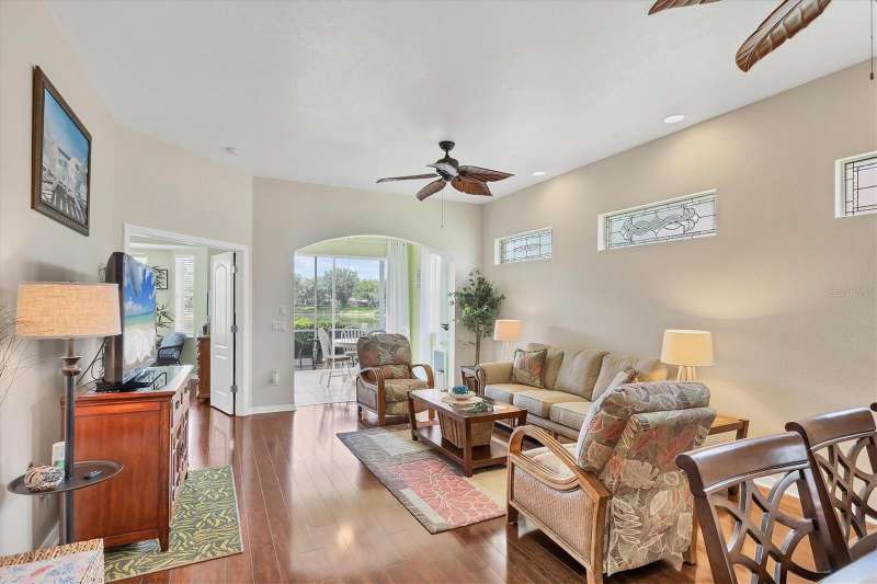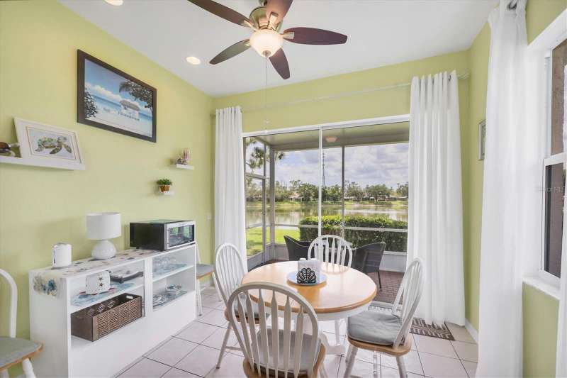 MOTIVATED SELLER: A beautiful pond view, 1665 square feet of living space, end unit, 2 bed, 2 bath, plus bonus room with closet, a new tile roof, roof assessments paid in full, and beautiful laminate flooring, along with three leaded glass windows which brightens the living area, are just a few of the fantastic features this Villa has to offer. This well maintained, tastefully decorated Villa is also being sold Turnkey and ready to move in. A new lanai and screen have just been completed. The kitchen features abundant cabinets, a pantry and island with a new granite counter top. The ample sized primary suite boasts a large walk-in closet, a double vanity and a walk-in shower. Bobcat Trail Villas are conveniently located near I-75 and US 41. It also offers easy access to medical care, restaurants, shopping, and only 25 minutes to the beach. Baseball enthusiasts will enjoy the proximity to the Spring Training facilities of the Rays and the Braves. Bobcat Trail Villa residents also enjoy amenities such as a private community pool in the middle of the Villa Community along with a larger heated community pool, Tennis and Pickleball, a fitness center and community center with a small library. Important Note: The Privately owned gulf course is currently closed.