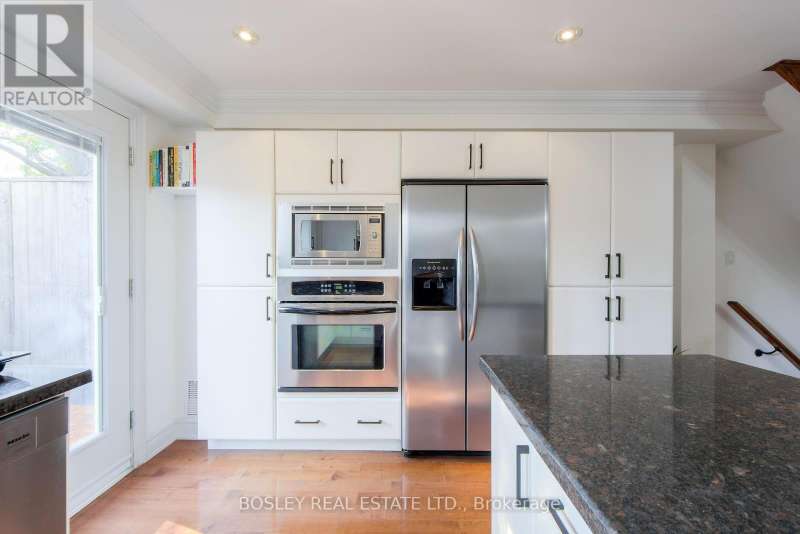 188 McCaul is the epitome of urban living in Toronto's downtown core - a Victorian-inspired red brick house with over 1800 sq ft of indoor living space and a rooftop terrace, boasting views of the CN Tower. With a walkability score of 100, you can leave your car at home and discover the vibrant Baldwin Village neighbourhood, full of popular restaurants and pretty tree-lined streets. With 3 bedrooms and 2 full bathrooms, this end unit townhouse has North East and West exposures for natural light while perfectly blending modern comforts with classic charm. The heart of every home is the kitchen. Here, it is spacious, adorned with granite countertops, equipped with full-size stainless steel appliances and ample cabinetry. The kitchen has a walkout to a large private balcony with a gas BBQ hookup. The open concept and sizeable dining and living rooms, complete with gas fireplace, are a timeless space for meals and entertainment. The primary bedroom has terrific closet space with custom organizers. The ensuite bathroom features a built-in jet tub bathtub and large shower. The two additional bedrooms on the top floor are generously sized, both with double door closets and windows, offering flexibility of serving as sleeping or working spaces. There is direct access from the house to the built-in garage, basement and storage room. At 188 McCaul, you will be able to walk to your downtown office, access the TTC, theatres, restaurants, cafes, countless entertainment venues, University of Toronto, and every major hospital in the downtown core. (id:7434)