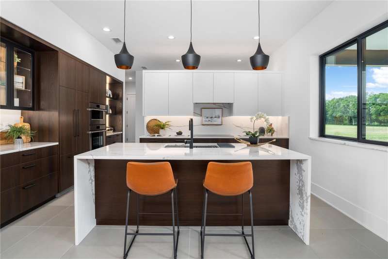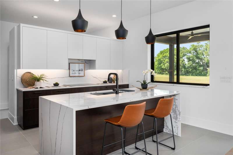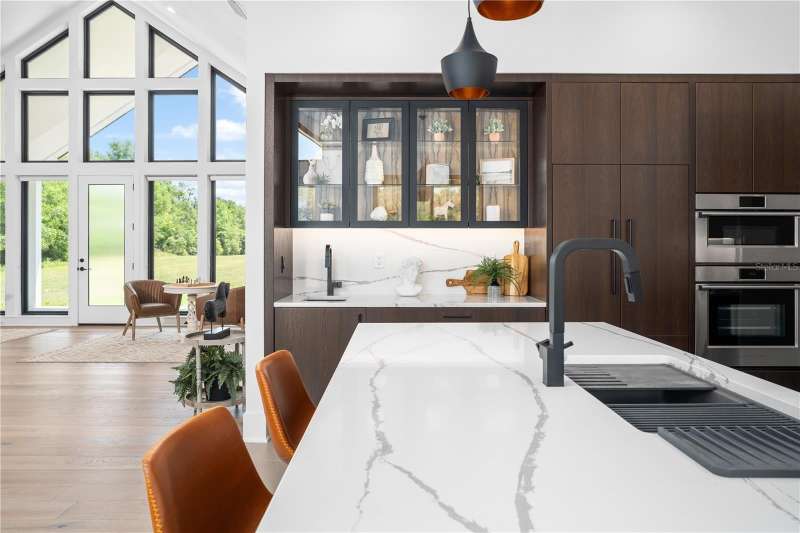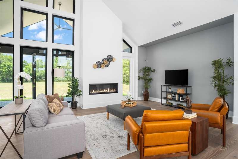 Now even more stunning with A BRAND NEW POOL! This home recently appraised above list price, reflecting its exceptional value and quality. Introducing this extraordinary 5 bedroom, 4 bathroom, custom built home by Atlantic Design, situated on over 3 acres within an exclusive gated community of Dylan’s Grove. You are welcomed with a beautiful front porch that seamlessly flows into floor to ceiling premium Fibrex Composite windows, known for their superior insulation, durability, and low maintenance. Inside you will find an expansive living room with 18’ vaulted ceilings, filled with natural light, accompanied by an indoor vented 50” gas fireplace. Every detail was thoughtfully considered from the grain matched wood cabinetry in the kitchen, customly designed by Straw & Co Woodwork, to the upgraded Fisher and Paykel appliances, to the high-end fixtures and hardware that ties the space together. Adjacent to the kitchen is the butler’s pantry, offering additional custom cabinetry, a second sink refrigerator, dishwasher, and extra countertop space and storage. Also included in this space is a chic wet bar, perfect for crafting cocktails and hosting gatherings. This home is not only lavish but also environmentally conscious, boasting energy-efficient features throughout. From high-performance windows to efficient 18 Seer, 2 stage air conditioner systems with wi-fi thermostats, every detail has been carefully considered to minimize energy consumption without compromising comfort. The home has also been pre-wired for an alarm system, (6) gigabit ethernet ports, a wifi system, (4) exterior cameras, smart door locks, and automated lights. The exterior of the home is equally captivating, with an oversized covered lanai-already pre-wired and plumbed for a summer kitchen. The outdoor gas fireplace with stone veneer makes it a perfect sanctuary for those looking to cozy up and soak up the panoramic views. Schedule your private tour today and experience the epitome of luxury living.