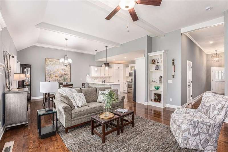 Charming reverse 1.5 Story home in sought-after Leabrooke Town Manor. Completely updated with a nice open floor plan and stunning wood floors. Beautiful great room with a fireplace and vaulted ceiling. Gorgeous all white kitchen with stainless steel appliances, a pantry, breakfast bar, and quartz countertops. Spacious primary suite with an updated bath. The finished daylight lower level has a family room, two bedrooms, and a full bathroom. Cozy screened-in porch for entertaining. Two car garage. Newer HVAC. Great neighborhood amenities including roof & gutter maintenance, water, sprinkler system, property fire and hazard insurance, exterior painting, snow removal, and lawn care. Additionally, there’s an annual $1090 master HOA fee that covers the clubhouse, fitness room, pool, tennis and basketball court, trash, and recycling. Perfect location close to shopping, restaurants, and just a short walk to Ironwoods Park with a playground, trails, picnic area, and amphitheater.