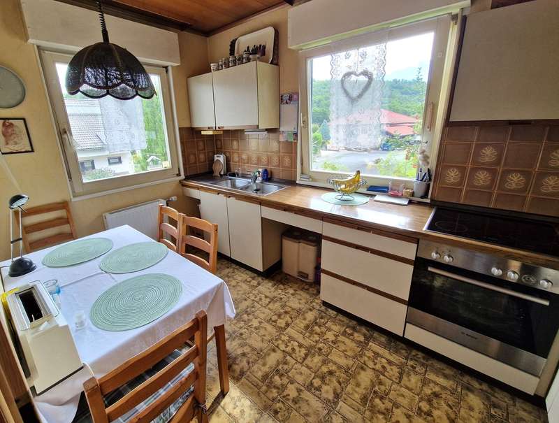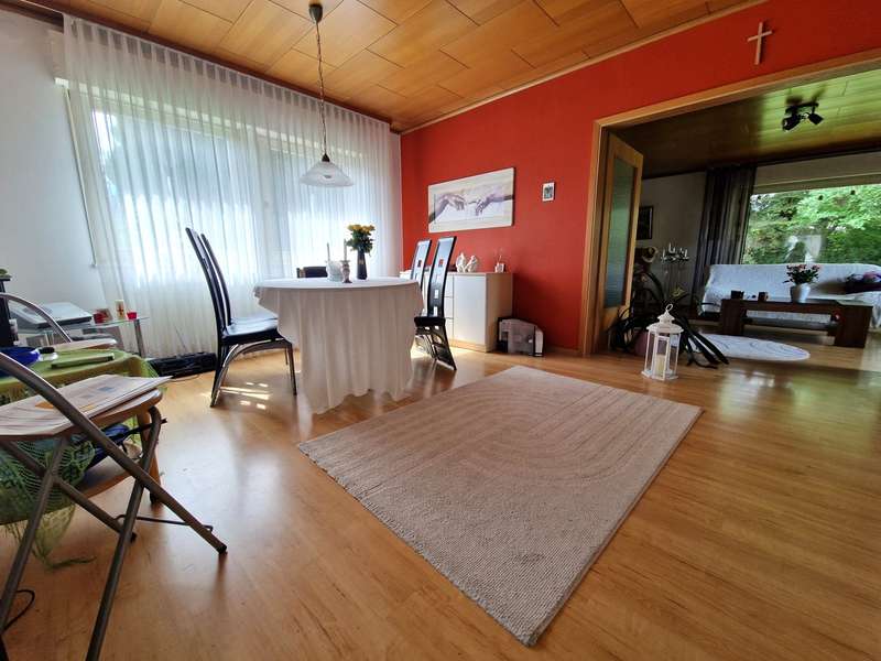 Welcome to a detached house that impresses with its friendly atmosphere and well thought-out room layout. The house, built in 1981, is situated on a plot of approx. 852 m² and offers many possibilities to realize individual living wishes both inside and outside. You can reach the garage integrated into the house via the driveway - a plus point that is particularly appreciated on rainy days. From there you can go directly into the interior of the property, which is in a well-kept condition. In 1994, a large (apartment) room with a shower room was converted in the basement, and the gas central heating was replaced in 2013. The heating system ensures comfortable temperatures in all living areas and enables economical heating. The house was built as an OKAL prefabricated house; the first floor (EG) and the attic (DG) were mainly constructed using prefabricated construction methods. In addition, the spacious basement was built in solid construction, which is reflected in its dry, stable and easily usable condition. The living areas extend mainly over the ground floor plus the converted areas in the basement. A spacious living area awaits you on the first floor, offering versatile design options. Large windows provide pleasant brightness and an appealing view of the spacious garden. The kitchen is adjacent and offers enough space for a dining area. Thanks to the intelligent layout, the living, dining and kitchen areas fit together harmoniously. The house has a total of six rooms, four of which can be used as bedrooms. Most of these are located on the first floor and offer privacy for every member of the family. Two full bathrooms - one on each floor - contribute to a comfortable everyday life. The garden impresses with its generous space and various usable areas. Whether vegetable patch, play area or space for social gatherings - there are many options open to you here. A terrace invites you to dine outdoors and offers space for relaxing hours. The location of the house combines quiet living with good connections to shopping facilities, schools and public transport. Leisure facilities and local recreation areas are often within easy reach. The basement not only offers additional storage space, but is also suitable for hobbies, supplies or as a workshop. Access is possible both via the house and from outside, which makes everyday life easier. In summary, this detached house offers many advantages for people who value a well-kept environment, a functional room layout and a spacious plot. Come and see for yourself the possibilities this house has to offer during a viewing. We look forward to your inquiry.