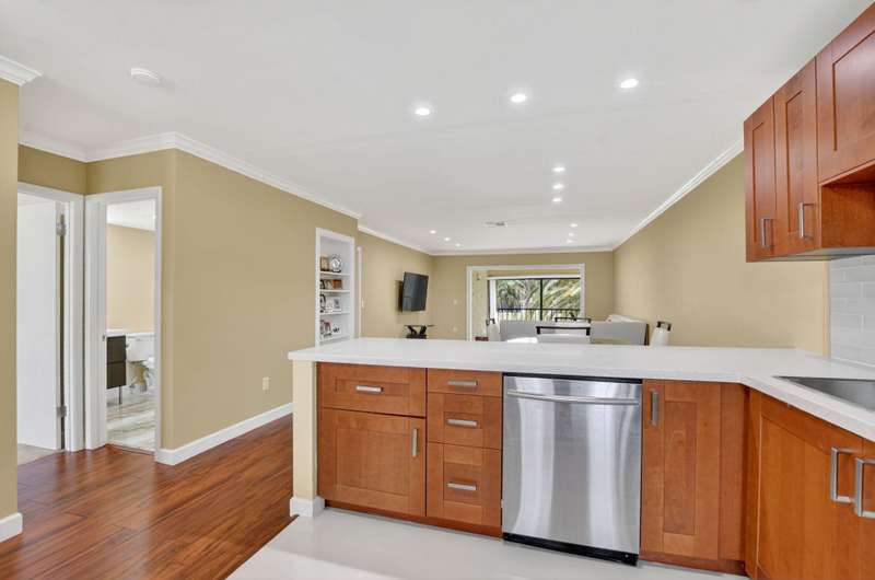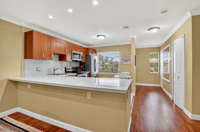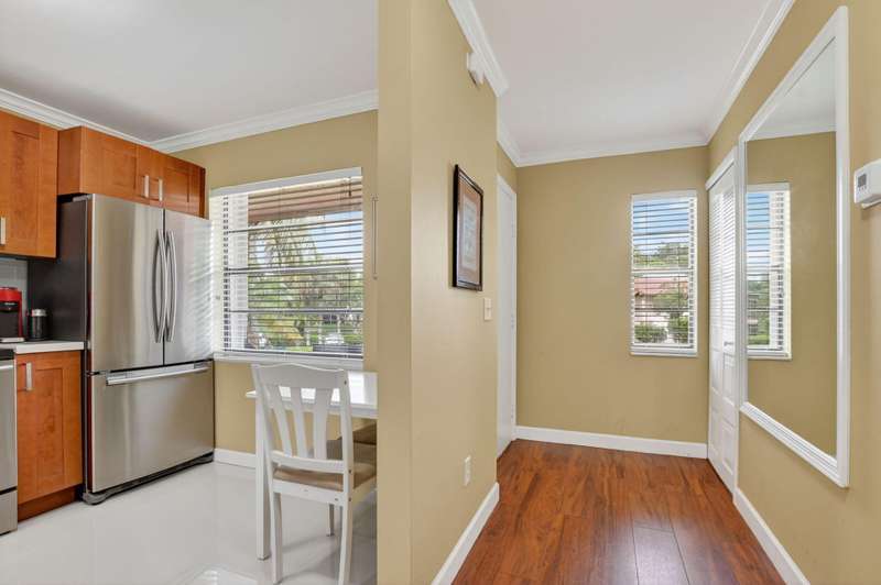 This beautifully renovated unit offers the perfect blend of style, comfort, and natural serenity. Step into a spacious living area with smooth ceilings and elegant laminate flooring that flows seamlessly through the common spaces. The Florida room adds valuable extra square footage -- ideal for a home office, reading nook, or sunlit lounge. The kitchen has been thoughtfully opened up to enhance flow and functionality featuring sleek quartz countertops, stainless steel appliances, and newer cabinetry and flooring. From the kitchen and one of the bedrooms, enjoy calming garden views. Both bedrooms are newly carpeted for comfort. The community boasts two sparkling pools, vibrant social areas, and a full calendar of activities. Just outside the entrance, youll find one of Boca Ratons most