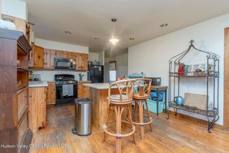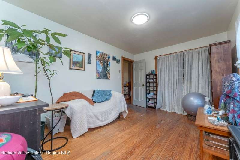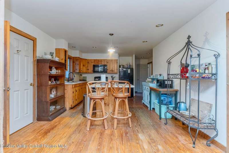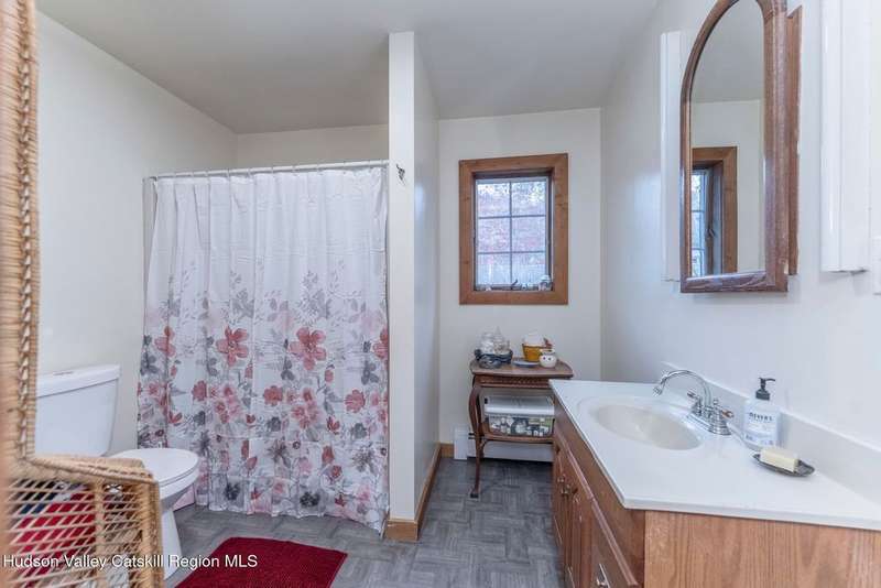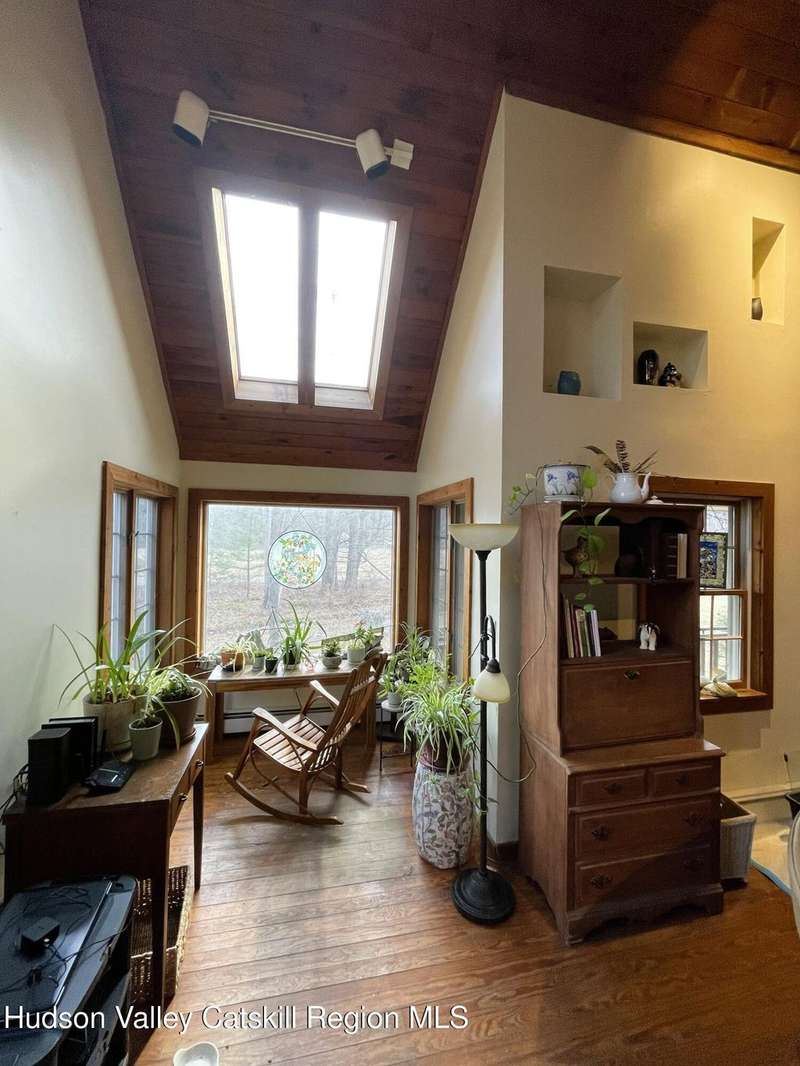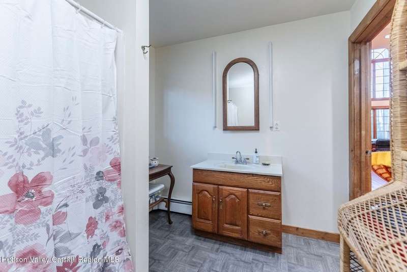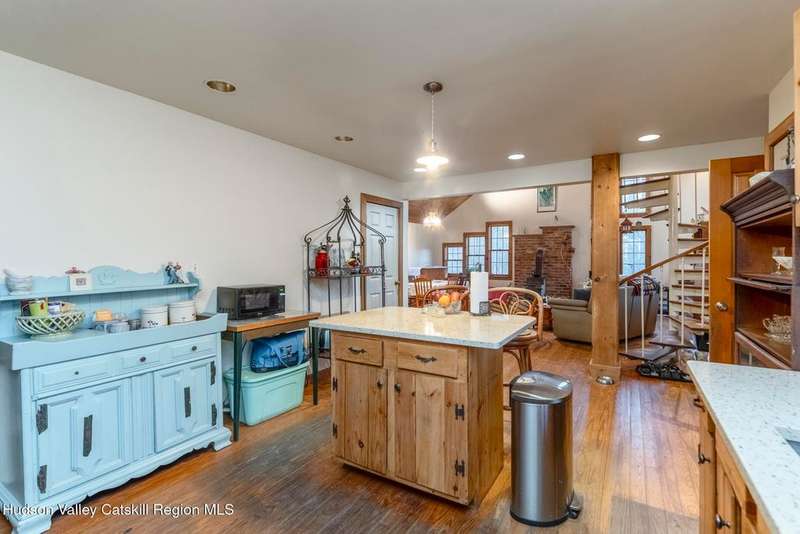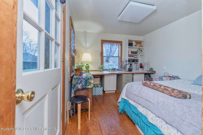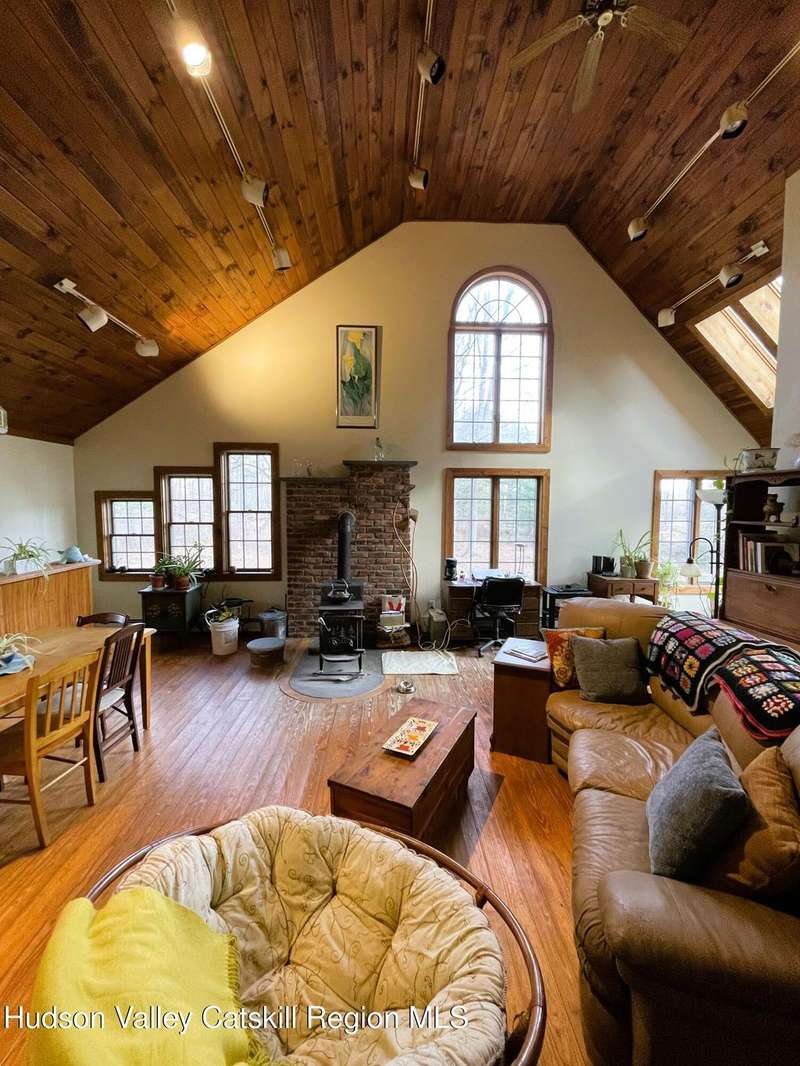 Nestled in the Catskill Mountains, the small Hamlet of West Shokan sits in Watson Hollow at the base of South Mountain and Samuels Point where the Bushkill and Drybrook converge and enter into the picturesque Ashokan Reservoir. This beautiful little town is bordered by the vast acreage that surrounds the reservoir and has retained its rural character and charm for generations. On the approach to this home, you'll cross over the creeks and notice the mountains at every turn. This special home was custom built and architecturally designed with attention given to create not only whimsy and charm but bring in the natural light and volume to the gathering spaces. The Cathedral Ceilings are adorned with wood planks and flooring is a random-width solid heart-pine giving the room a warm, homey feeling. Plus, there's a woodstove with hearth and real brick firewall. You'll love the architectural design details such as the wall niches for displaying a favorite art piece and the corner window nook area which is perfect for cozying up with a book on a comfy chair, growing some indoor plants or just gazing out the window any time of year. The spiral staircase is a stylish and unique feature allowing the natural light to flow through the spaces; it contains oak stair treads and is wide enough to easily navigate with a comfortable cadence. The downstairs bedroom has an attached room with a separate entrance door to the outside which creates a perfect situation for a small office. Don't forget to check out the lovely covered front porch which overlooks the charming, partially shaded and serene lot as well as the neighboring large meadow. This property is surrounded on three sides by approximately 100 aces of Conserved Land. A view of South Mountain is enjoyed from some areas of the property as well. Other features include an adorable little shed perfect for firewood and your tools, an attached garage to keep your car dry and clear of snow during the winter, a wheelchair ramp to the backdoor and a spacious laundry area on the first level. You'll fall in love with this charming home, so full of character and warmth....it's the perfect country retreat or full -time residence. Some little gems nearby include: Davis Park within walking distance with ballfield, basketball court, the town Pool and pavilion; the Olive Free Library and the High Point Trailhead for local hiking, just a short drive up the road. You can also enjoy the Ashokan Rail Trail in Boiceville which is great for a leisurely walk or bike ride alongside the shady banks of the Ashokan Reservoir and the Esopus Creek; the views are gorgeous! Not to be outdone, is the Ashokan Promenade where you can take in the vast wide--open views of the stunning Ashokan Reservoir with the Catskill Mountain range as it's backdrop....it never gets old!! What a way to live, enjoying nature every day with a small-town relaxing vibe! Come take a look, you will love this exceptional offering, it's truly a rare find!