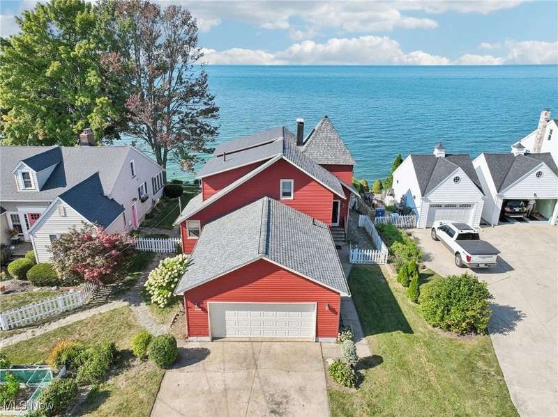 The Lake Erie views from this home are wonderful! This property offers 4 bedrooms and 1.5 bathrooms. Home does need some extensive updating, but the Location is worth it! The front living room/sunroom offers lake views and the morning sun. The back family room with its hardwood floors has the best lake views with French doors to the back deck. Kitchen has plenty of space to work and includes a breakfast area with lake views. All 4 bedrooms are upstairs with hardwood under the carpet (per previous owner). 2 of the bedrooms have built-in bookcases and the main bedroom offers more lake views and a walk-in closet. Laundry is in the basement that has been waterproofed with a sump pump and plenty of storage. This home shares the driveway, walkway and stairs down to the pier with the neighbors on the west. 2 car garage is attached and offers an extra storage closet. Roof was replaced early 2025. Per previous listing, Basement was waterproofed in 2002, French doors to deck 2012, New siding 2012 and Garage door 2015.
