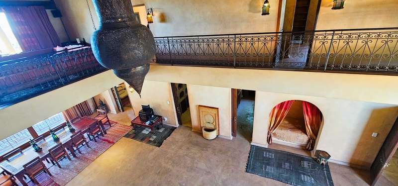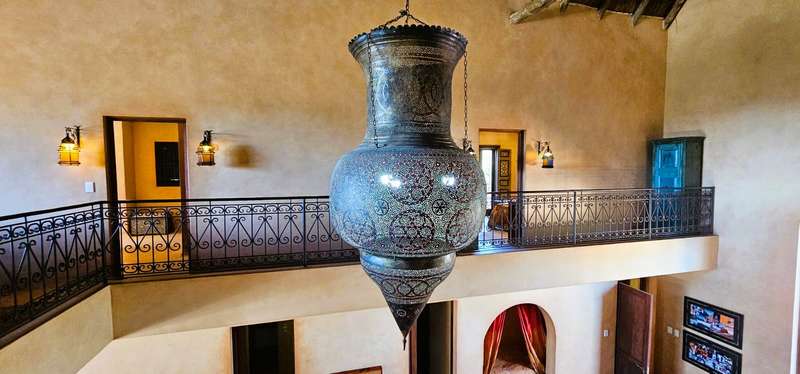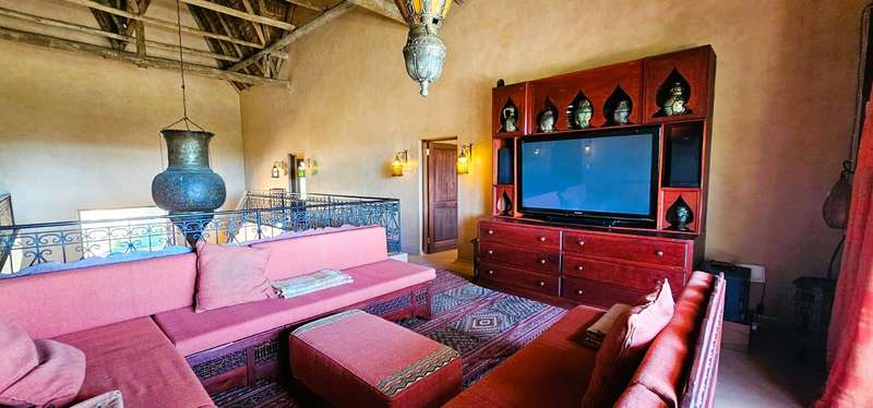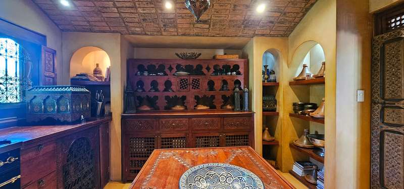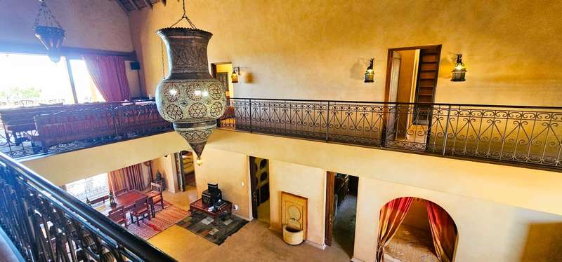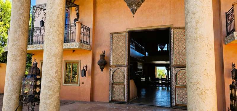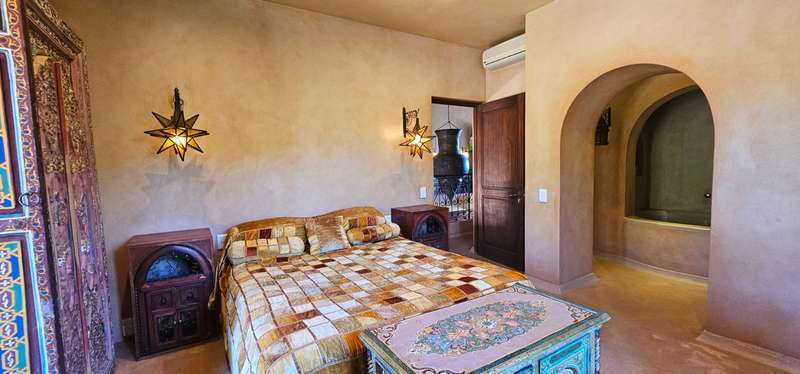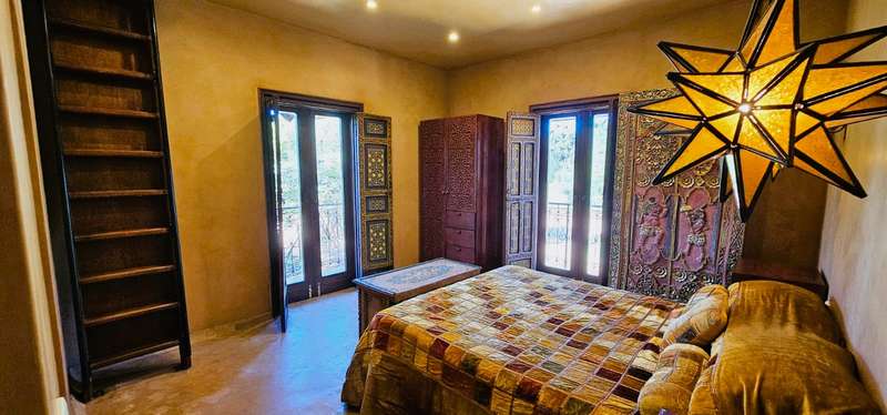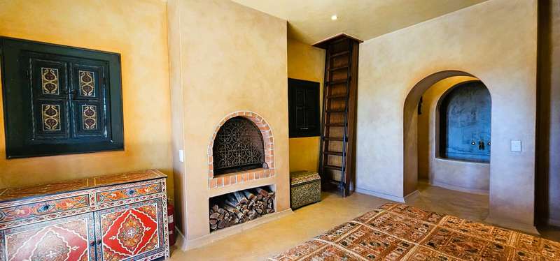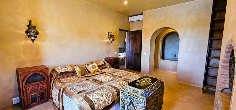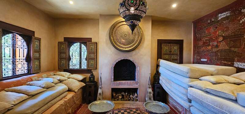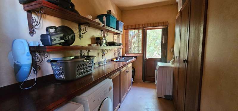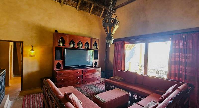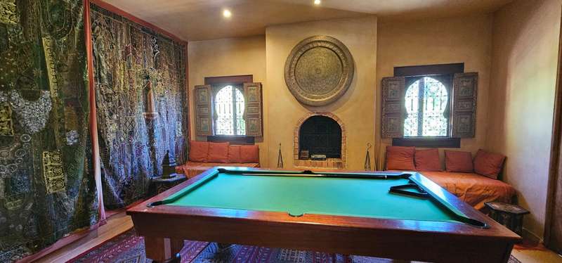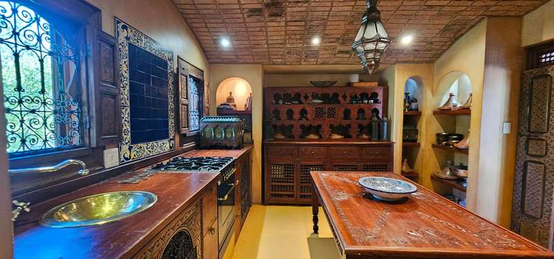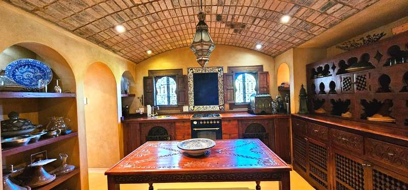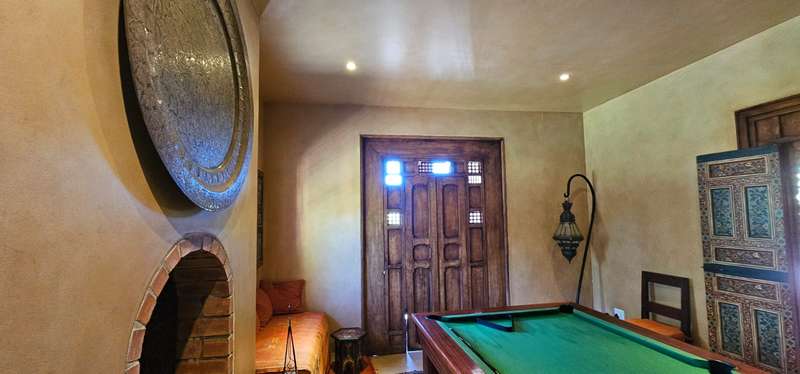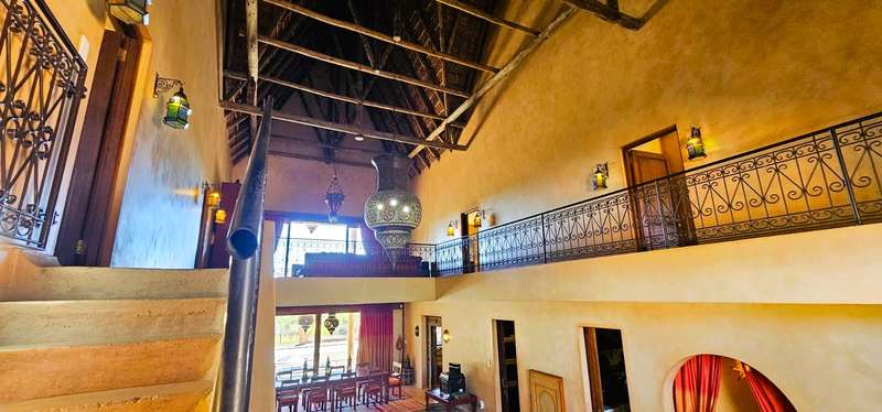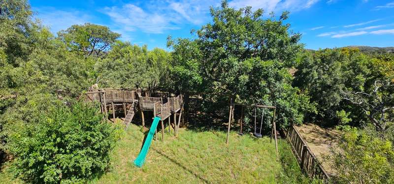 Step into the enchanting world of this Moroccan-inspired haven nestled within the breathtaking Big-5 Mabalingwe Nature Reserve. As you step through the grand entrance, be transported to a realm of opulence and serenity. Two indoor Moroccan daybeds invite you to pause and soak in the lodge's magnificence. The guest bathroom boasts exquisite finishes and a refreshing shower awaits. Enter the expansive open-plan dining and living area, seamlessly connected to a sprawling patio. The ground floor features a remarkable wooden kitchen, complete with a pantry and scullery leading to a charming courtyard play area for little ones. Indulge in a welcome drink from the intimate wine cellar before enjoying a game in the pool room or relaxing by the fireplace in the lounge. Outside, the vast patio offers panoramic views of the bushveld, mountains, and wildlife watering hole. Take a dip in the sparkling pool, unwind in the undercover jacuzzi, or savor a delicious barbecue from the braai area with a pizza oven. Upstairs, prepare to be amazed by four luxurious en-suite bedrooms, two boasting cozy fireplaces and all adorned with loft areas. Moroccan-inspired baths and impeccable finishes adorn each bathroom, while private balconies with traditional louvers provide tranquil retreats. A cozy TV room awaits before stepping onto the expansive balcony, where you can enjoy a well-deserved sundowner as you take in the breathtaking vista. Experience the epitome of Moroccan elegance and be the envy of all with this extraordinary property.