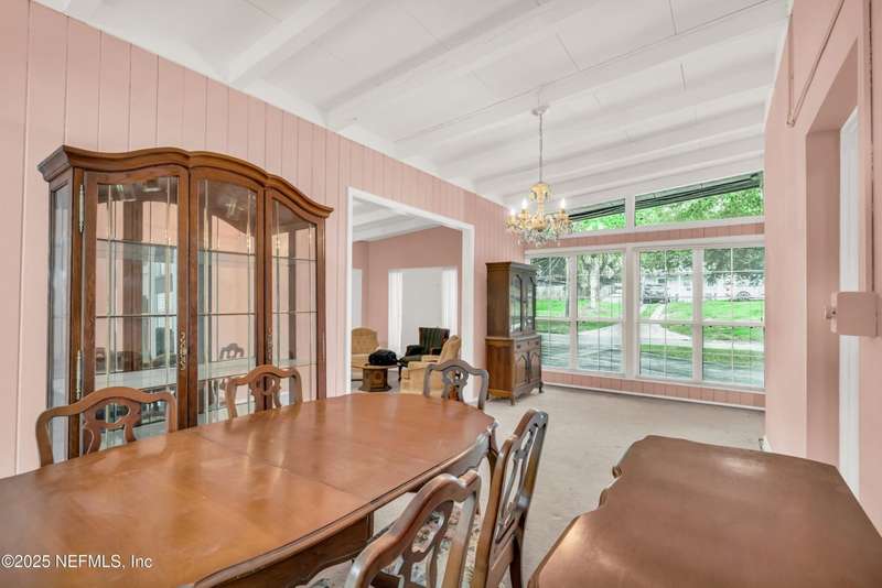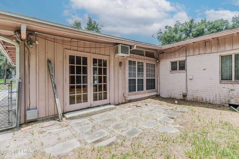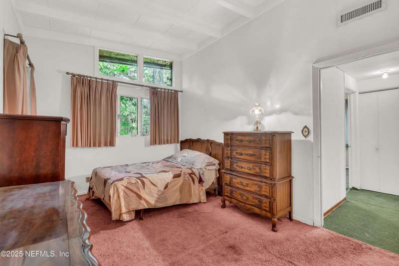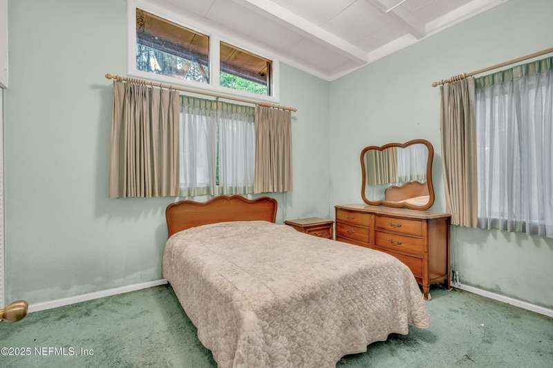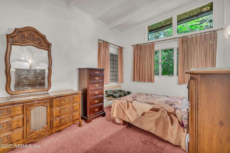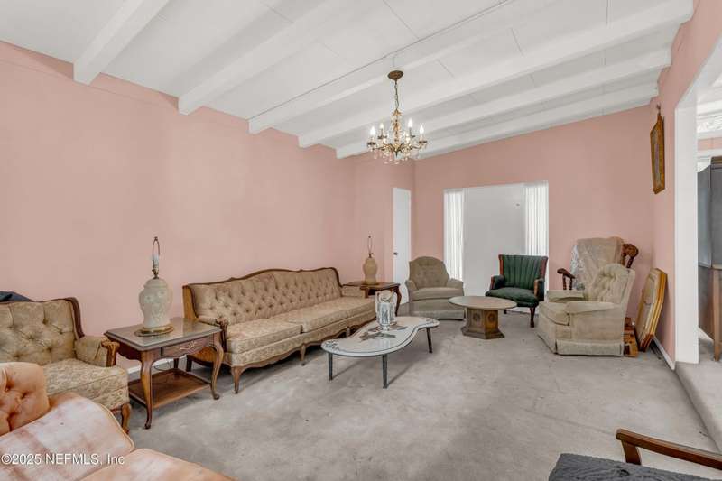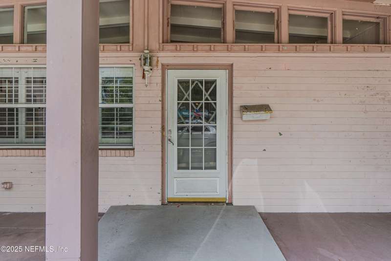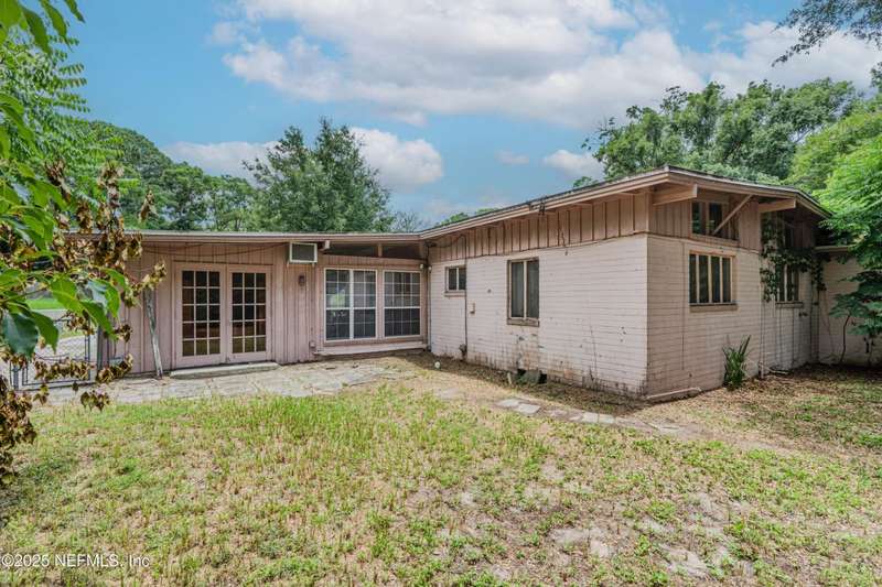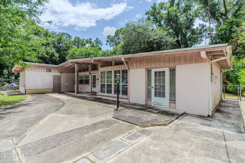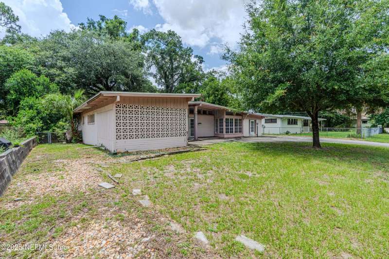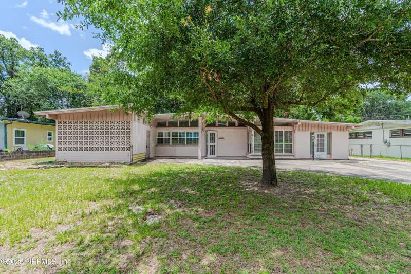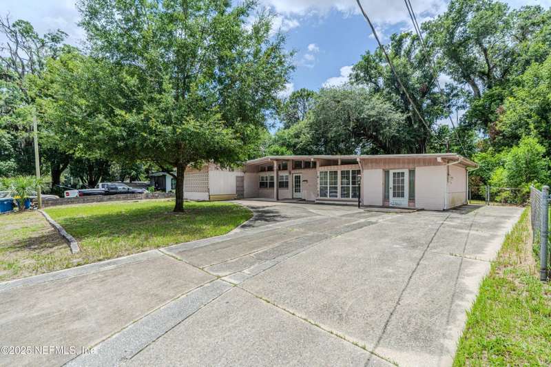 Spacious 4BR/2BA, 2,375 sq ft concrete block Mid-Century Modern home with tons of potential! Add your personal touch with a little TLC. Features plantation shutters in main living area, split bedroom layout, and interior utility room with washer/dryer. Septic system offers utility savings. Large driveway, extra parking pad for boat/trailer, and no HOA. Centrally located near downtown, beaches, airport, universities, and Mayport Naval Station. Plenty of off-street parking. Roof is 11 years old. Home is sold AS-IS; seller will not make repairs. Water is turned off. Note: Front door locks automatically-carry key with you.