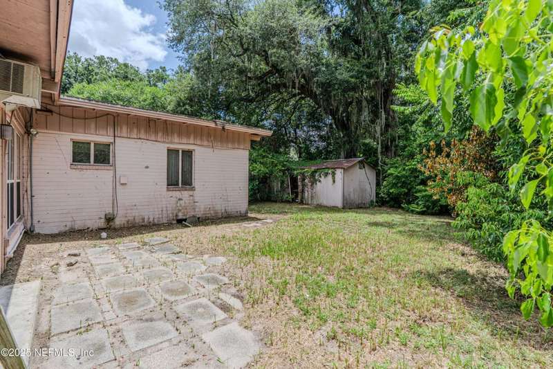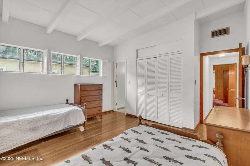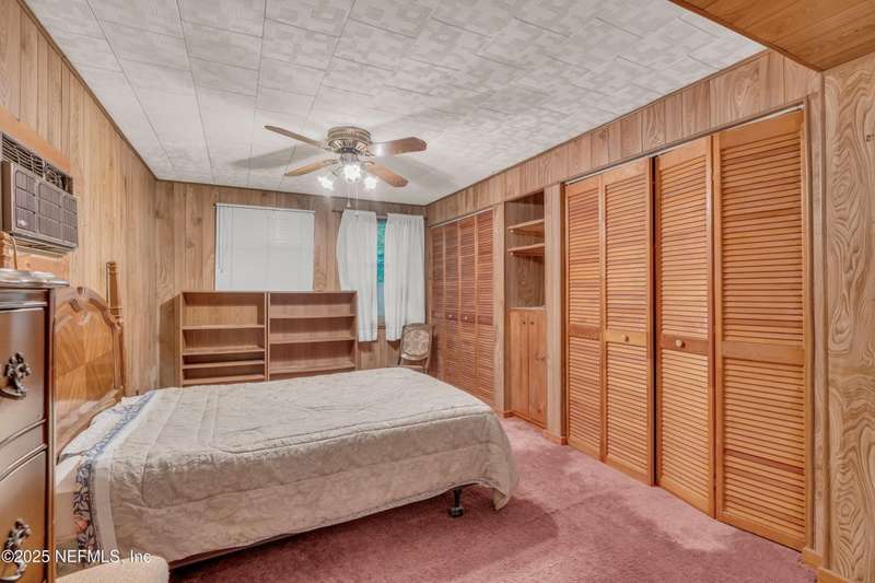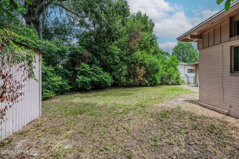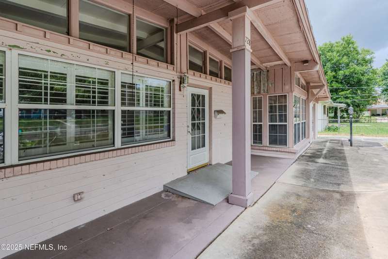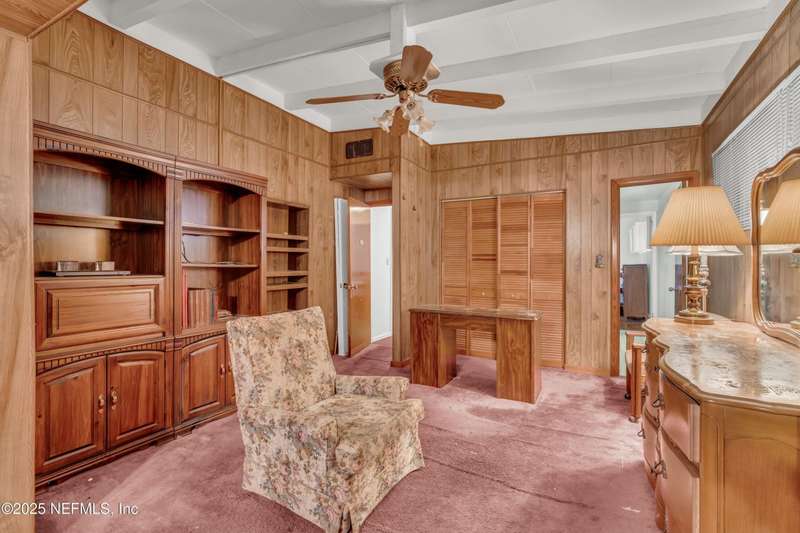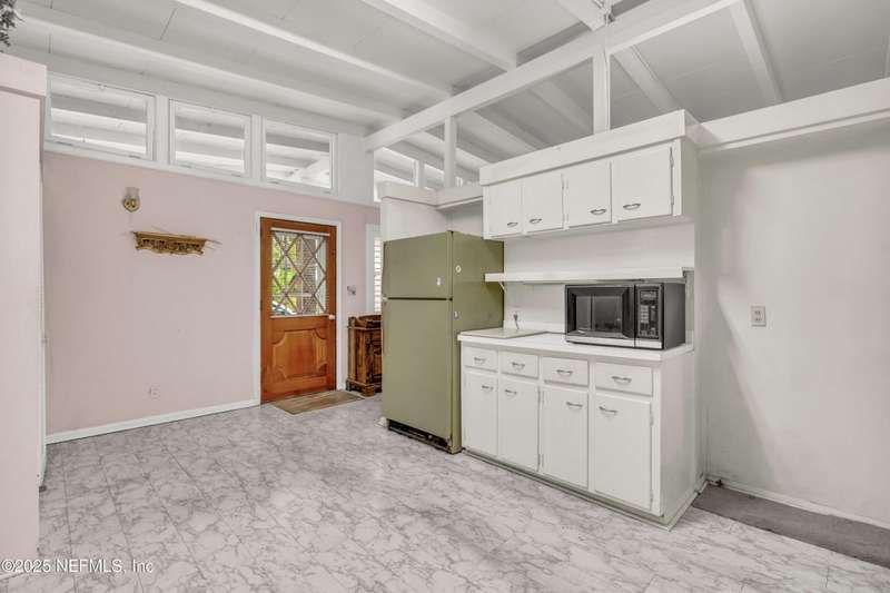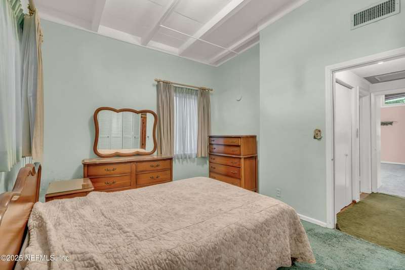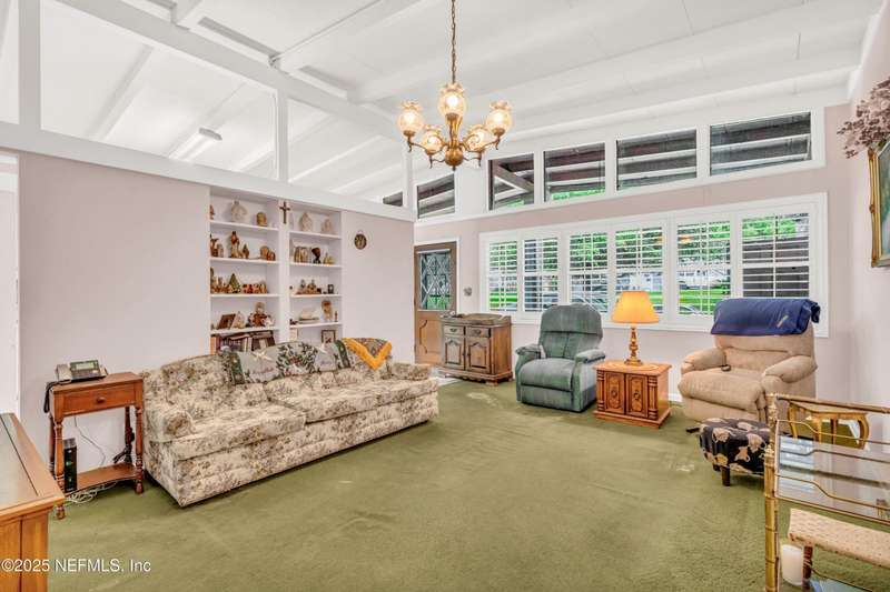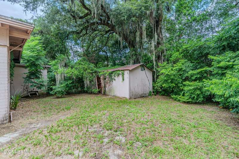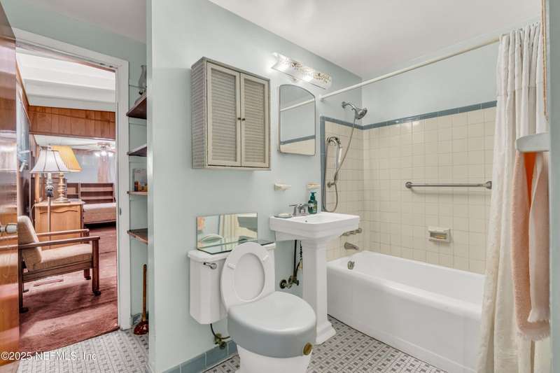 Spacious 4BR/2BA, 2,375 sq ft concrete block Mid-Century Modern home with tons of potential! Add your personal touch with a little TLC. Features plantation shutters in main living area, split bedroom layout, and interior utility room with washer/dryer. Septic system offers utility savings. Large driveway, extra parking pad for boat/trailer, and no HOA. Centrally located near downtown, beaches, airport, universities, and Mayport Naval Station. Plenty of off-street parking. Roof is 11 years old. Home is sold AS-IS; seller will not make repairs. Water is turned off. Note: Front door locks automatically-carry key with you.