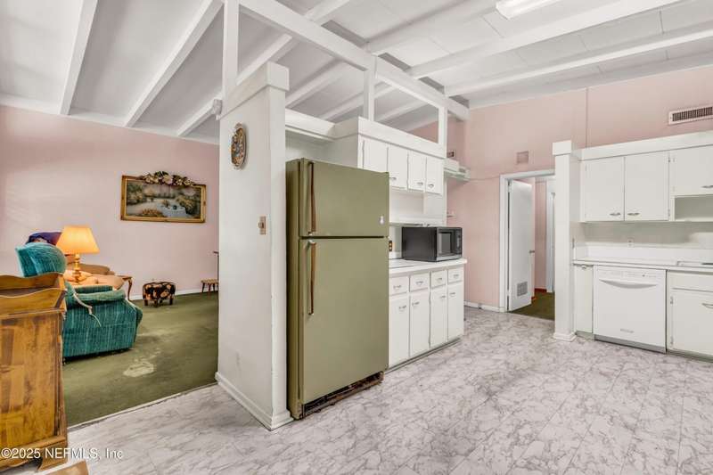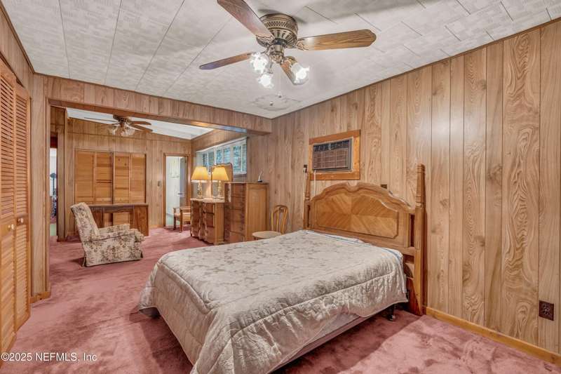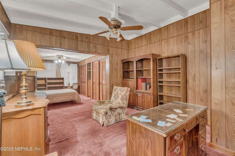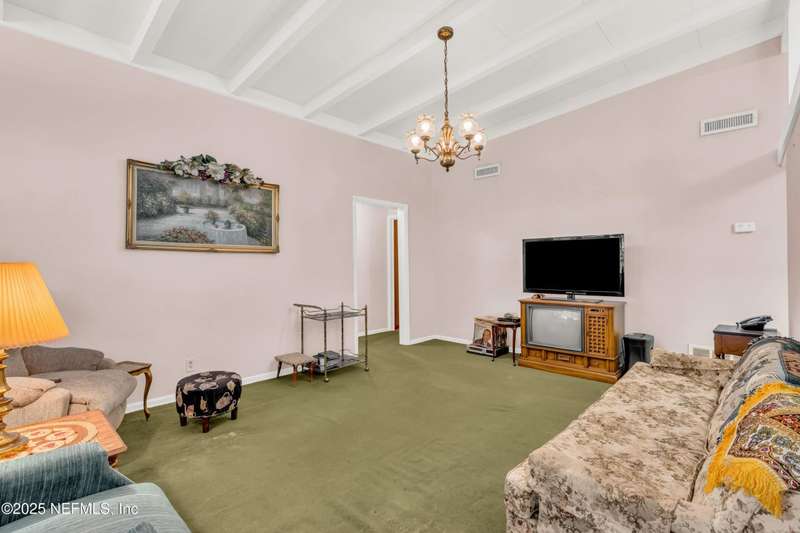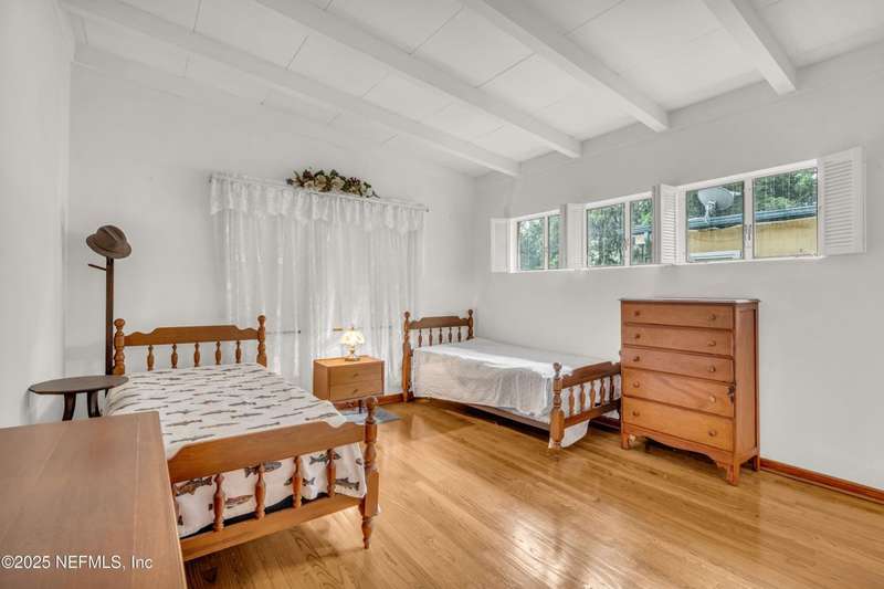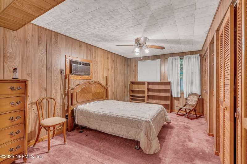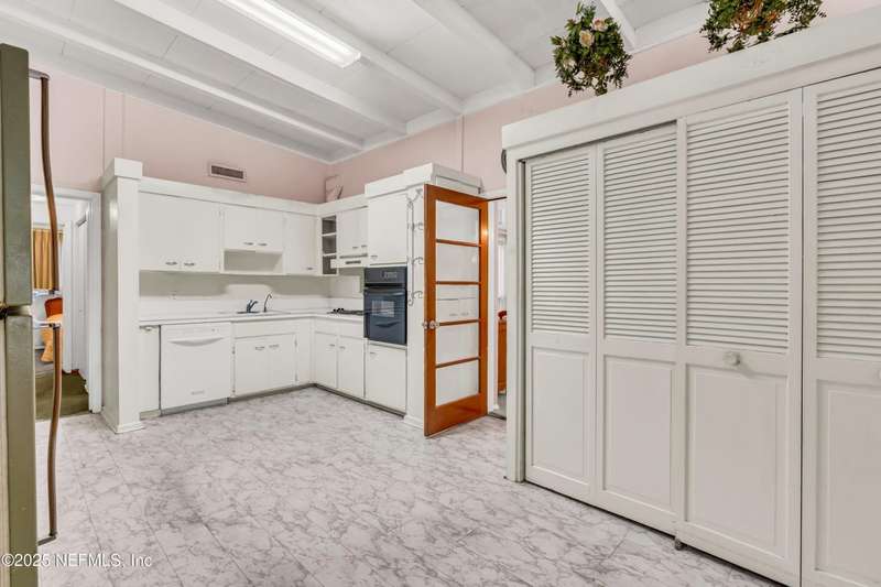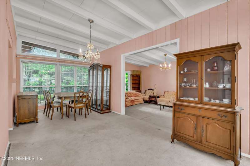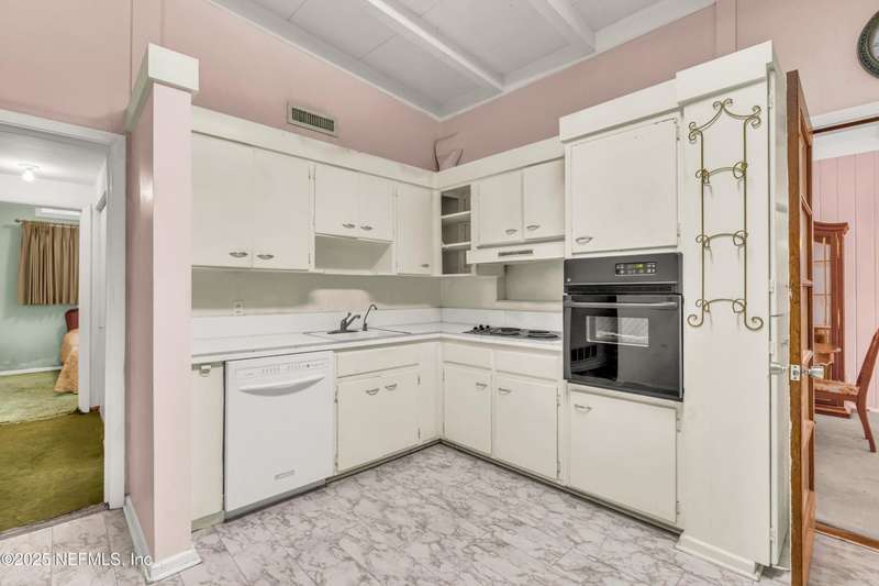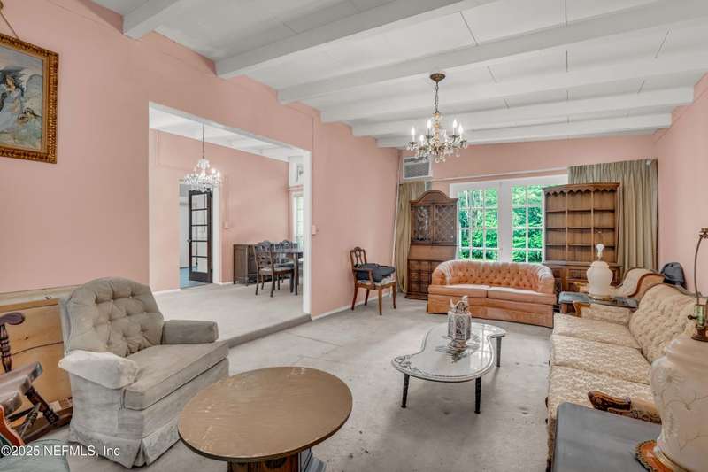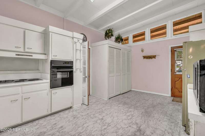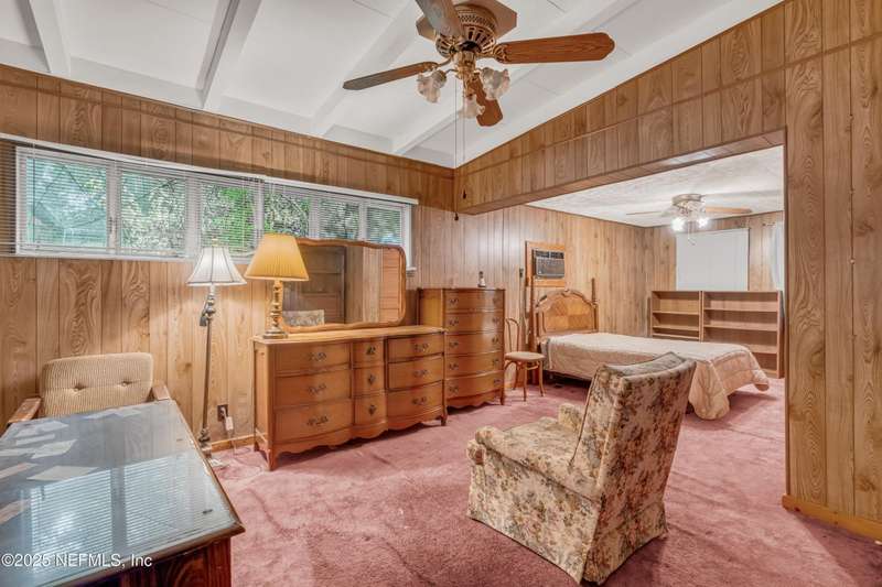 Spacious 4BR/2BA, 2,375 sq ft concrete block Mid-Century Modern home with tons of potential! Add your personal touch with a little TLC. Features plantation shutters in main living area, split bedroom layout, and interior utility room with washer/dryer. Septic system offers utility savings. Large driveway, extra parking pad for boat/trailer, and no HOA. Centrally located near downtown, beaches, airport, universities, and Mayport Naval Station. Plenty of off-street parking. Roof is 11 years old. Home is sold AS-IS; seller will not make repairs. Water is turned off. Note: Front door locks automatically-carry key with you.