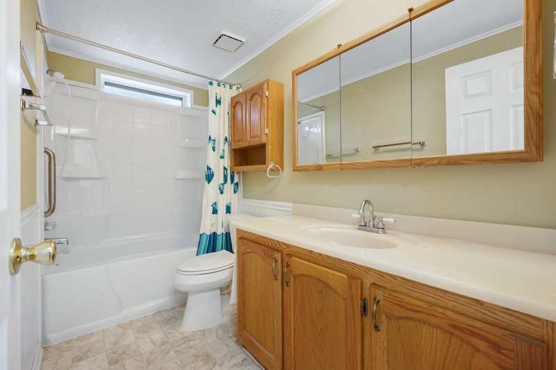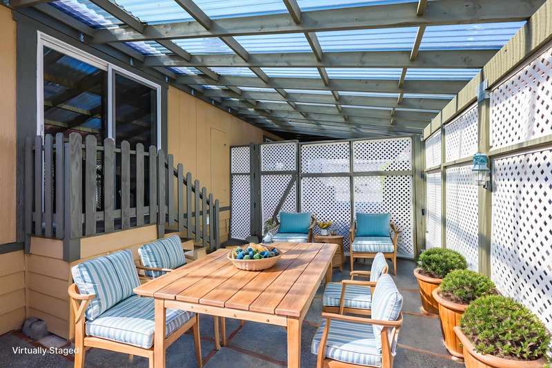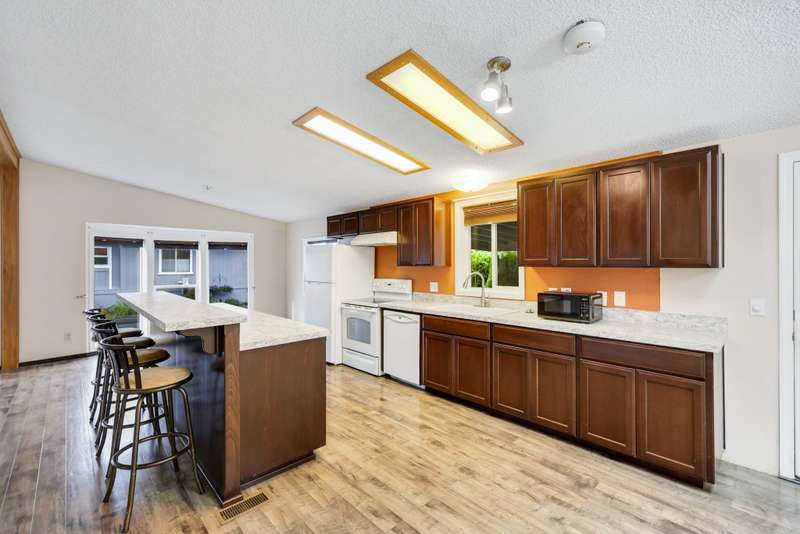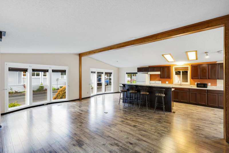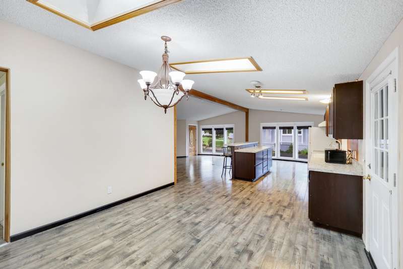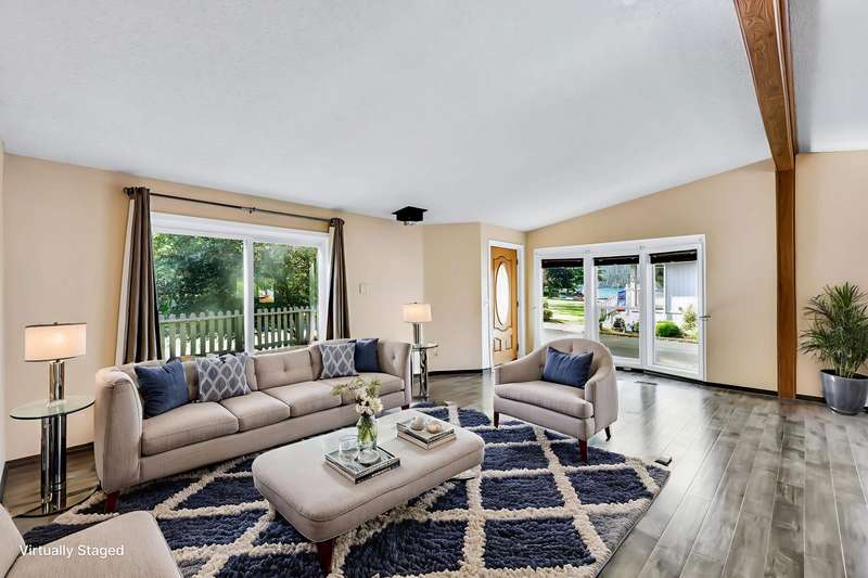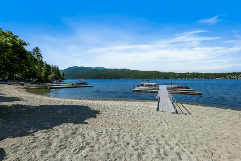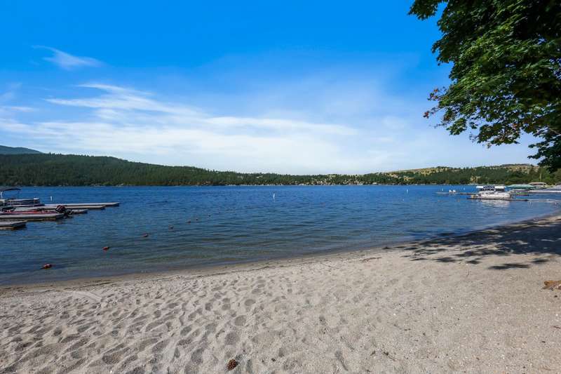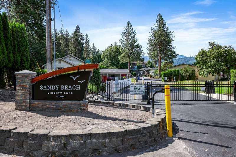NEW FLOORING IN BEDROOMS & BATHROOMS, PLUS PRICE REDUCTION! Liberty Lake Waterfront-Style Living in Gated 55+ Community of Sandy Beach Mobile Park! Beautiful lake views from many rooms as well as the deck and is steps away from the water! The community's private beach and park are extremely well kept and provide picnic tables & a gas fire pit! Optional boat slip rental & RV parking (additional fees) within the park. 3 nearby golf courses, Pavilion Park, walking/biking trails, restaurants, groceries, shopping & many other amenities within a short distance. This community offers something for everyone! Step inside to an open floor plan with vaulted ceilings, floor to ceiling windows, top-down/bottom-up blinds & lovely entertaining space inside & then out to the spacious deck. 3 bedrooms, with the primary having an ensuite plus a slider out to private, enclosed patio. Laundry room with large folder counter & great storage cabinets, in addition to the storage shed. New roof & skylights 2022. Monthly lot fee $997