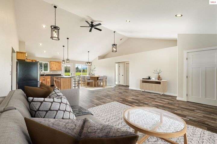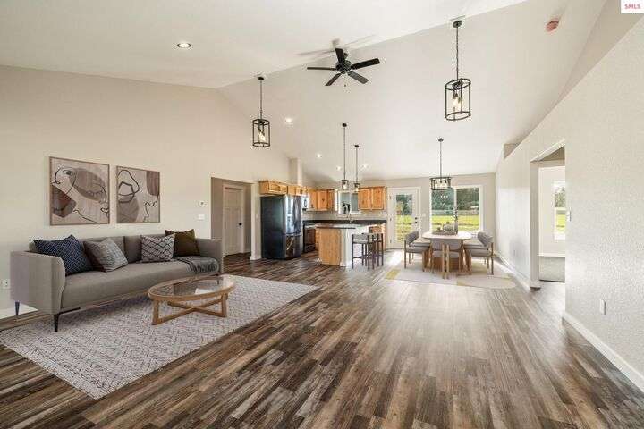 Welcome to this beautiful new construction single level home nestled on .75 acres of prime real estate surrounded by the Purcell Mountains! This 4 bed 3 bath residence offers 2,048 spacious sq ft with vaulted ceilings in the main living area, an open concept kitchen with custom cabinetry, leathered granite surfaces, gourmet LG appliances, huge storage pantry, expansive master suite with soaking tub, shower and large walk in closet. The large laundry room with utility sink and cabinetry will give you ample storage and the finished 2 car garage is oversized with side load access & storage room. The property is the perfect canvas for adding your touches or building a shop for your hobbies. Ask us about landscape packages we offer. 1 year warranty included!