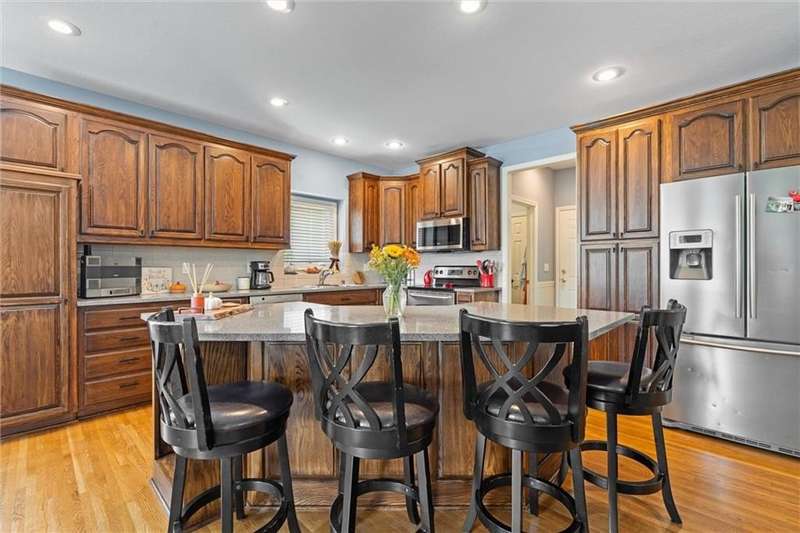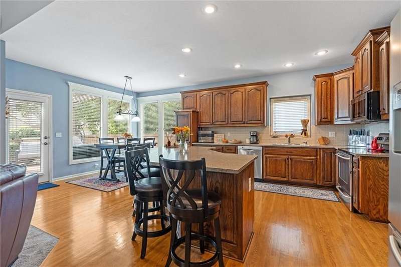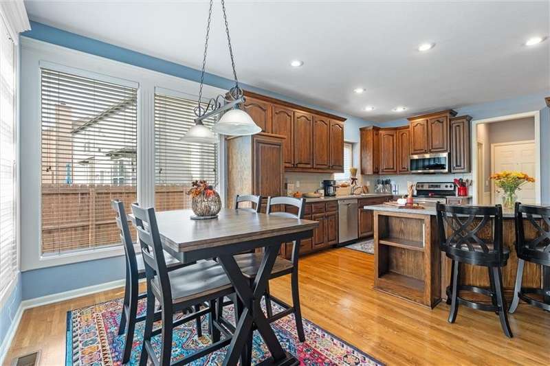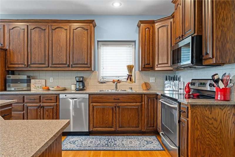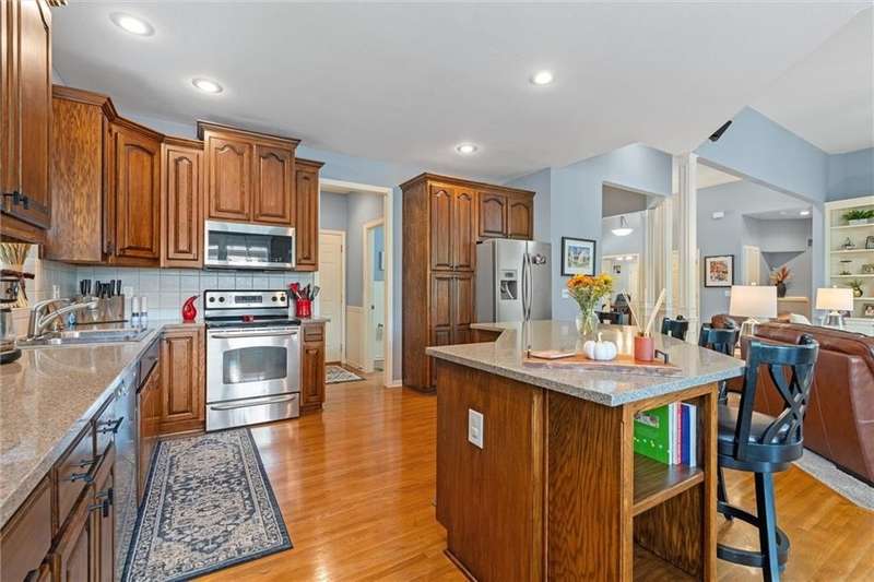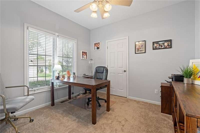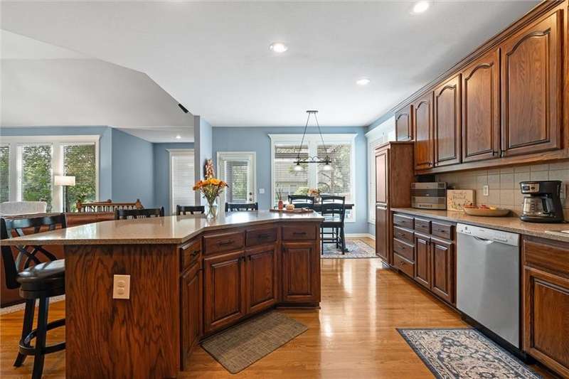 Welcome to this stunning 4-bedroom, 2.5-bathroom reverse 1.5-story home, on a desirable corner lot, in the award-winning Blue Valley School District! You'll love the open-concept layout that makes it easy to stay connected while cooking, dining, or relaxing. The main floor features a convenient laundry room, a home office, and a spacious primary bedroom with ensuite bathroom and walk-in closet. Downstairs includes bonus space for a playroom, hobby space, or game room, plus lots of storage. Step outside to enjoy the spacious backyard featuring a great deck-perfect for gatherings or quiet evenings at home. The 3-car garage provides plenty of room for vehicles, tools, and toys. This warm and inviting home has everything you need and more!