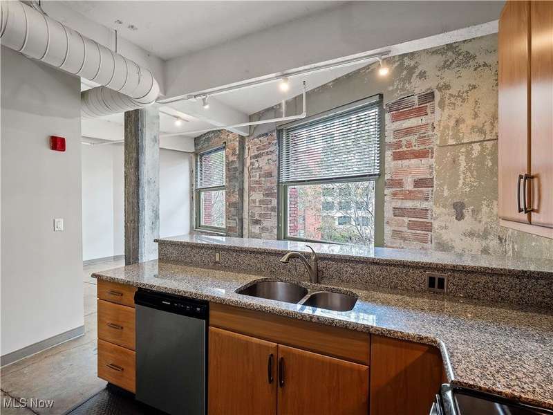 Spacious, 1-bedroom condominium spanning from the front to the back of the building! The Living Room features oversized windows overlooking Prospect Avenue. The Kitchen is equipped with stainless appliances, granite counter tops, and lots of cabinetry. This condo offers a very functional layout and privacy with the bedroom situated on the opposite end from your living area. The bathroom features neutral colors, modern hardware, and tub. You'll love this condo's high ceilings and character with its exposed brick and concrete floors. Full utility room with stackable washer/ dryer and sink (and extra storage!). The American Book Bindery has a workout room, secure access, elevator, and well-maintained common areas. Location, location, location! Walk to the Theatre District, Heinens, Progressive Field, and East Fourth Street.