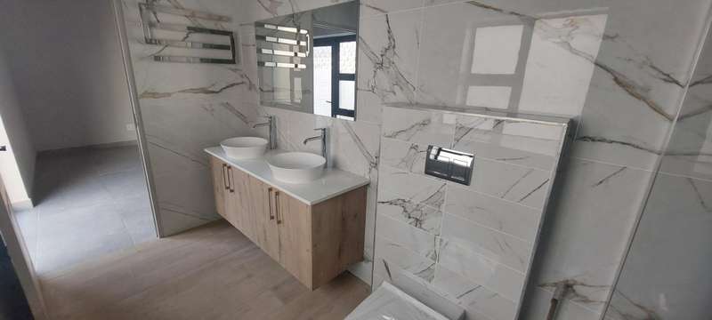 In a charming seaside town, nestled between majestic mountains and tranquil waters, lies a hidden gem - a three-bedroom duet waiting to be called home. With two bathrooms, two garages, a modern kitchen with ample cupboard space, and a built-in braai, this home embodies the perfect blend of comfort and convenience. Imagine waking up to the gentle sea breeze and the picturesque view of the mountains, beckoning you to embrace a life of serenity and luxury in this dreamy abode.