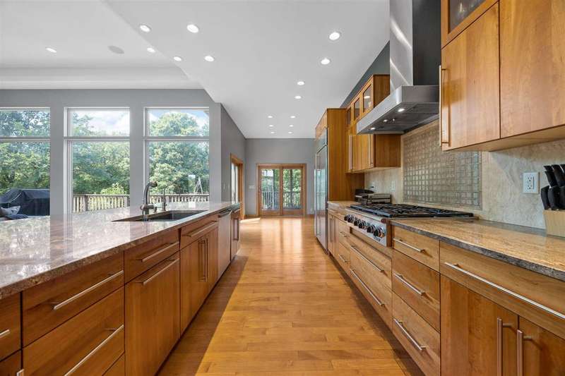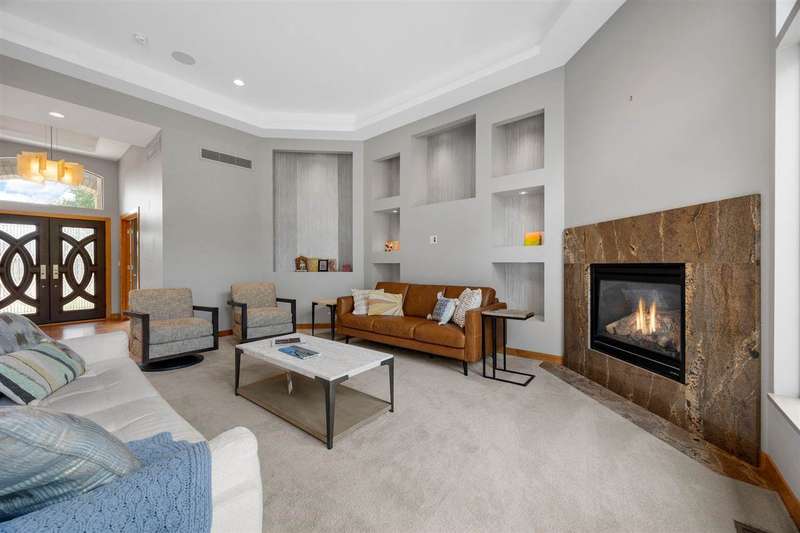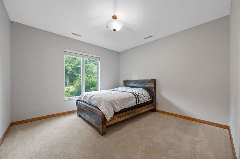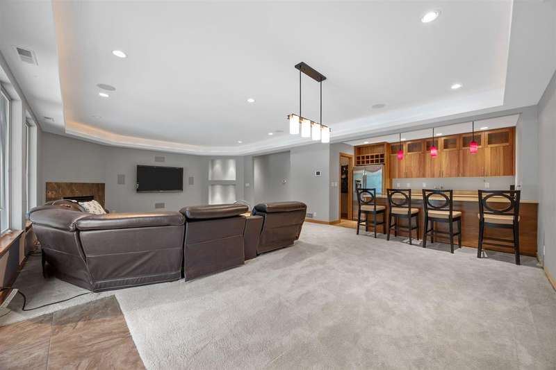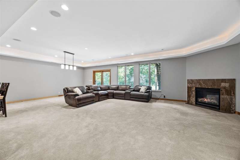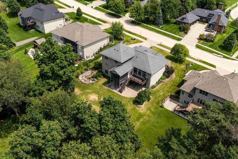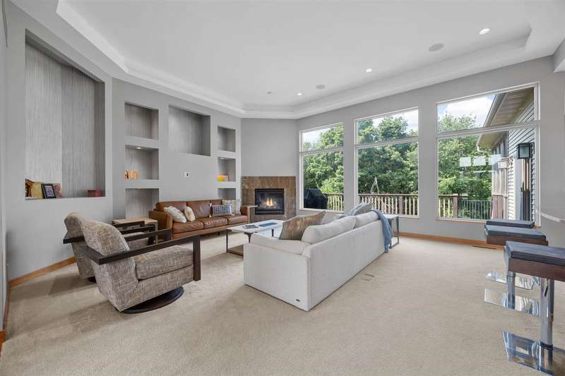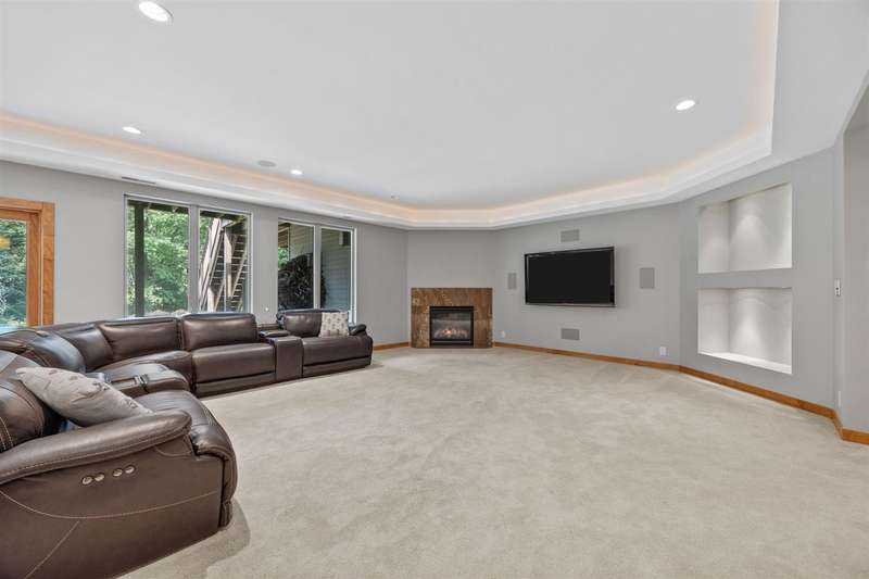 Experience refined living in this one-of-a-kind custom estate, thoughtfully designed for comfort, functionality, and beauty. With nearly 6,000 square feet of space, 5 bedrooms, 3 full bathrooms and 2 half baths. Soaring floor-to-ceiling windows that frame tranquil woodland views, a firelit backyard with water feature and a deck plus screened-in porch for peaceful outdoor living. The main level includes a formal great room, private office, formal dining room, laundry room, and a stunning primary suite with custom dual walk-in closets. Spa-inspired en suite bath with tiled shower, dual vanities and soaking tub. Upstairs, two bedrooms share a Jack and Jill bath alongside a built-in study area, flex room, and secondary laundry. The walkout lower level is an entertainer’s dream, featuring large rec room, wet bar, craft room, gym, 2 additional bedrooms with jack and jill bath, and direct access to the backyard retreat. With geothermal heating and cooling, a whole-home audio system, custom built ins throughout, and an oversized 3-car garage, this home blends sustainability with luxury in every detail.