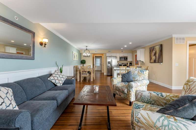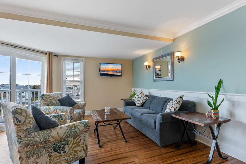 Welcome to The Dunes in highly sought-after Townsend Inlet! Hitting the market for the first time, this second-floor corner unit offers breathtaking OCEAN and BAY views with some of the most spectacular sunsets you'll ever see. Spanning 1,477 square feet, this sun-drenched, south-facing condo features an open floor plan with 3 bedrooms and 3.5 baths, designed for effortless coastal living. The inviting layout seamlessly connects the spacious living area to a private deck, perfect for soaking in the ocean breeze and the calming sound of the waves. Wake up to breathtaking sunrises in the primary suite, which opens directly onto the deck through sliding glass doors. This tranquil retreat includes an oversized walk-in closet and an en-suite bath with a stall shower, blending comfort and convenience. The second bedroom offers its own private bath with a tub/shower combo and a double-door closet, while the third bedroom features an equally spacious en-suite with a stall shower and a generous closet. A full-size washer and dryer are conveniently tucked into the hallway laundry closet. Thoughtful design elements throughout the condo include shiplap accent walls, stylish sconces, overhead puck lighting, and ceiling fans, adding a touch of sophistication to this coastal retreat. Enjoy the ease of maintenance-free beach living with TWO reserved covered parking spots and a private storage box for all your beach gear. The building also offers an elevator, outdoor rinse station, bike rack, and shared storage for larger items. Situated just steps from Shorebreak cafe, Blitz's Market, Anthony's, and Sole, this prime location offers unmatched convenience in Townsend Inlet. Whether you're looking for a personal getaway or a highly desirable investment property, this condo is a fantastic opportunity. Don't miss your chance to own a piece of paradise-call now for more details!