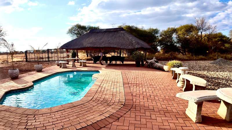 Developed for diversified use: Guesthouses, Cattle, Game, Grazing and Crops 200 hectares turfland suitable for crop production 60 hectares planted pasture (Bloubuffel grass) for grazing 73 hectares game camps Game included in sale: 30 Impala 10 Njala Guesthouse 1: 8 En-suite guest rooms, all with air-conditioning Conference hall for events or business functions Large storeroom (15m x 18m) Lapa entertainment area with pool Separate 1-bedroom flatlet for private accommodation or rental Shaded parking for guests Outside laundry facilities Dedicated staff accommodation 20kW solar installation ensuring sustainable energy supply Fully electric fenced perimeter Guesthouse 2: 10 En-suite guest rooms, all with air-conditioning Fully equipped industrial kitchen with adjoining scullery Laundry room for operational efficiency Office space for administration Dining hall and comfortable living area Single garage and double garage for vehicle storage Infrastructure: Separate 2-bedroom house Two storage units: 7m x 10m storeroom & 6m x 20m storeroom Additional 10kW solar installation 2 x Cement dams 130kL Zinc dam Magalies Water connection 4 x 2-Bedroom staff quarters Cattle kraal and working facilities for livestock handling Ontwikkel vir uiteenlopende gebruik: Gastehuise, Beeste, Wild, Weiding en Gewasse 200 hektaar turfgrond geskik vir gewasproduksie 60 hektaar aangeplante weiding (Bloubuffelgras) 73 hektaar wildkampe Wild ingesluit by verkoop: 30 Rooibokke 10 Njalas Gastehuis 1: 8 En-suite gastekamers, almal met lugversorging Konferensiesaal vir geleenthede of besigheidsfunksies Groot stoorruimte (15m x 18m) Swembad en lapa vir vermaak Aparte 1-slaapkamer woonstelletjie vir privaat verblyf of verhuur Oorskadu parkeerplek vir gaste Buite wasgoedgeriewe Toegewyde personeelverblyf 20kW sonkraginstallasie vir volhoubare energievoorsiening Volledig omhein met elektriese heining Gastehuis 2: 10 En-suite gastekamers, almal met lugversorging Ten volle toegeruste industriële kombuis met aangrensende opwasarea Wasgoedkamer vir operasionele doeltreffendheid Kantoorruimte vir administrasie Eetsaal en gemaklike leefarea Enkelmotorhuis en dubbelmotorhuis vir voertuieberging Infrastruktuur: Aparte 2-slaapkamer huis Twee stoor eenhede: 7m x 10m stoorkamer & 6m x 20m Addisionele 10kW sonkraginstallasie 2 x Sementdamme 130kL Sinkdam Magalies Water-verbinding 4 x 2-slaapkamer personeelkwartiere Beeskraal en werkgeriewe vir vee hanteer