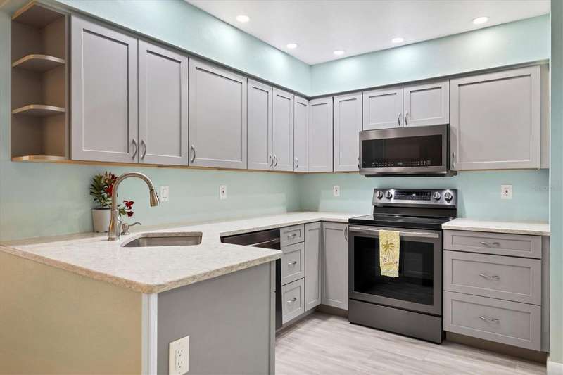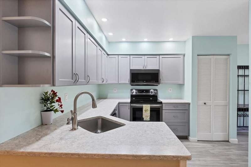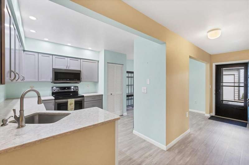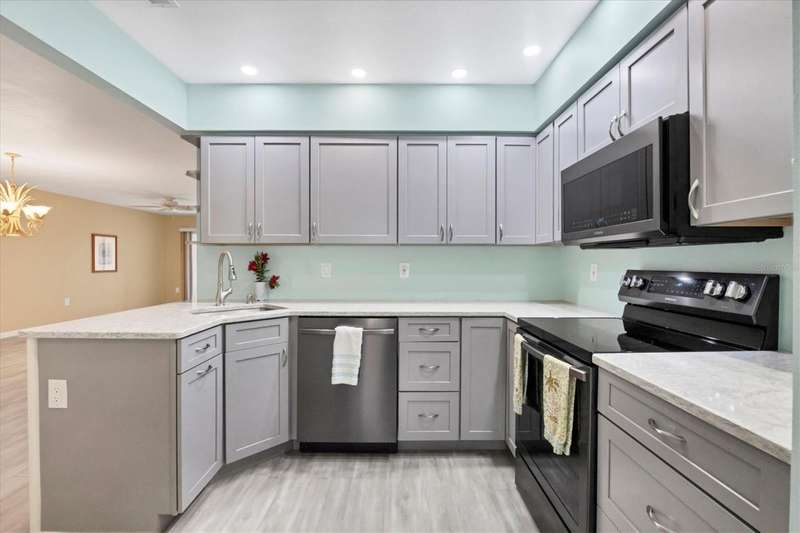 Elegant Coastal Living-Updated 2-bedroom, 2 bath condo in premier 55+ Community. Experience the perfect blend of comfort, style and convenience in this beautifully updated first-floor residence. Upscale updates and features: Designer Pergo flooring throughout the living space. Remodeled kitchen with sleek quartz countertops, stainless steel appliances and custom cabinetry. Master suite with a private en-suite bath and dual sinks, his-hers closets. Light-filled Florida room ideal for morning coffee or quiet afternoons. Private one-car garage with generous storage space. Enjoy an active resort-inspired lifestyle with access to the clubhouse, sparkling pool, shuffleboard courts, and vibrant social gatherings. Just minutes from medical facilities, fine dining, shopping and our pristine beaches. Whether you're reconnecting with friends or meeting new ones, this community offers the perfect balance of relaxation and recreation.