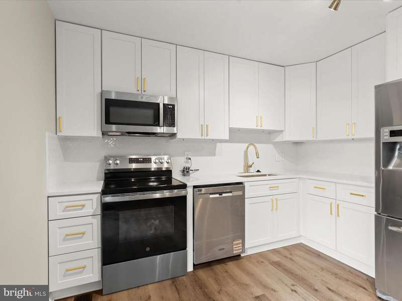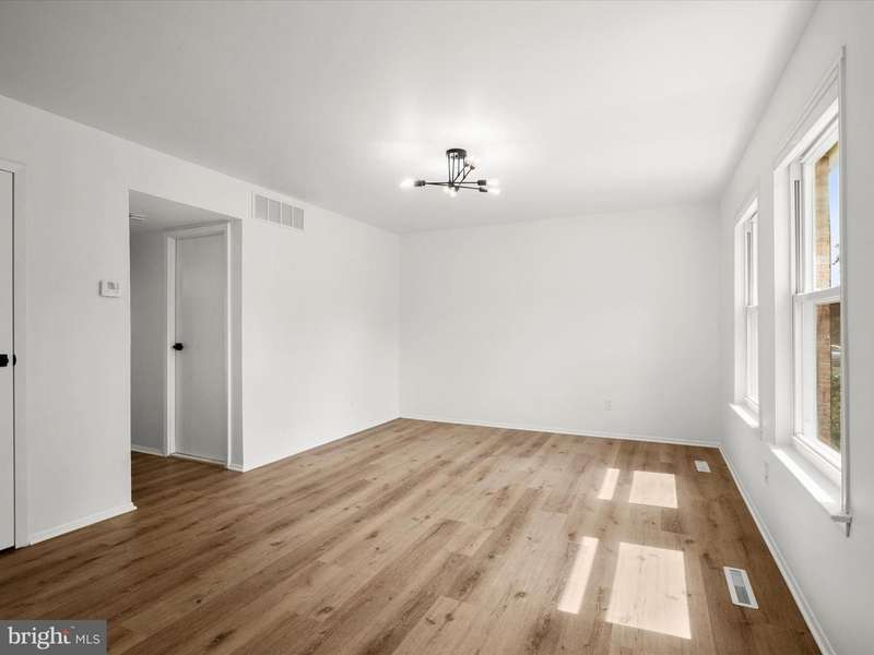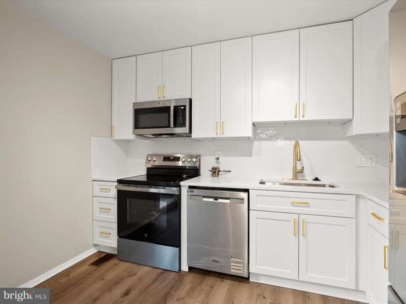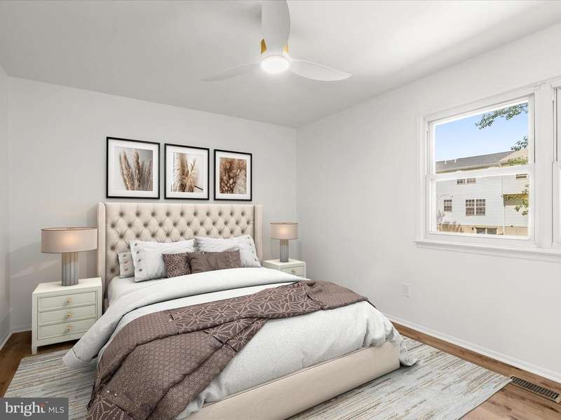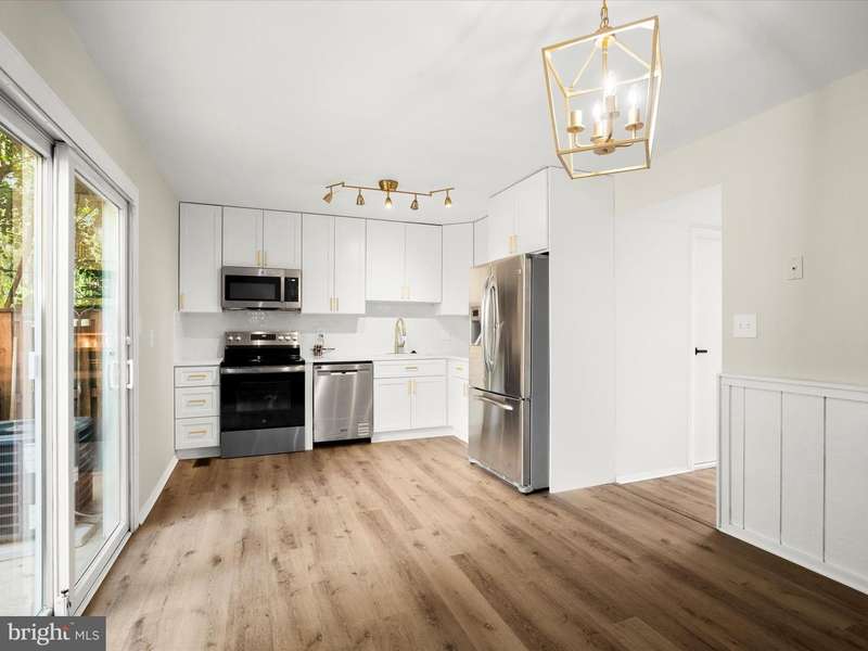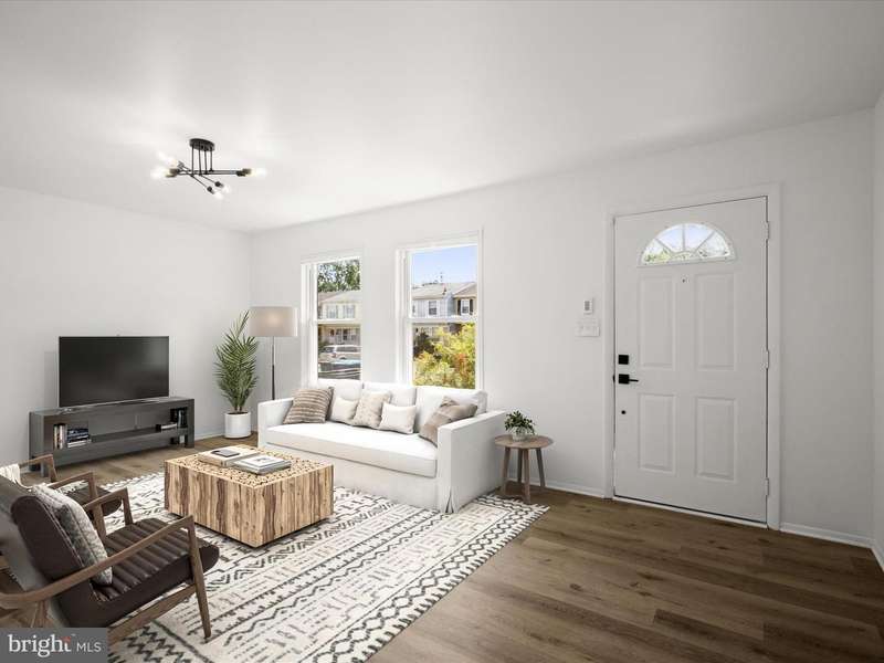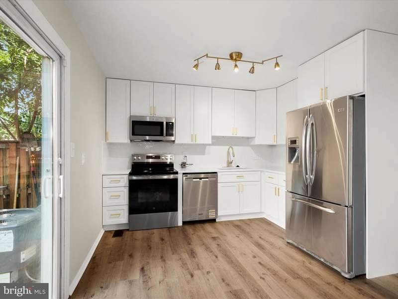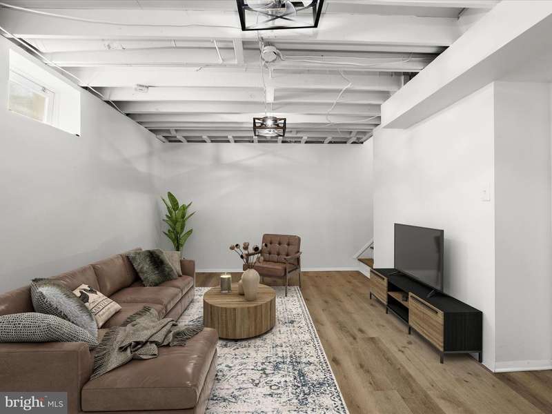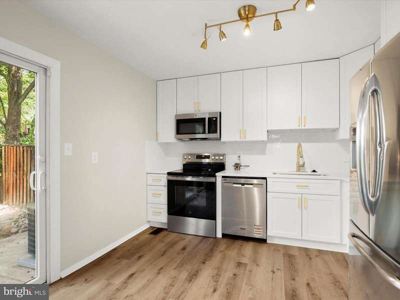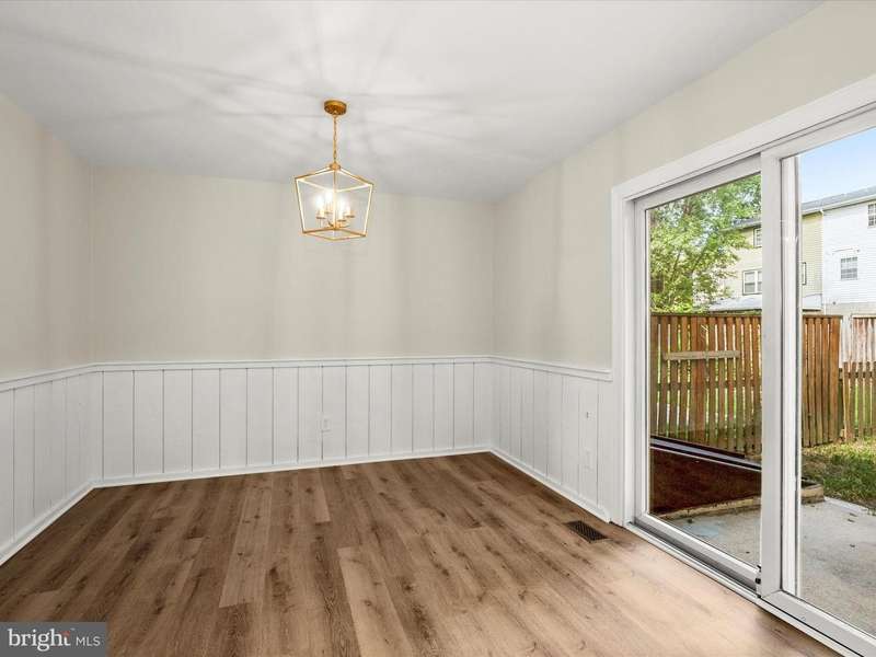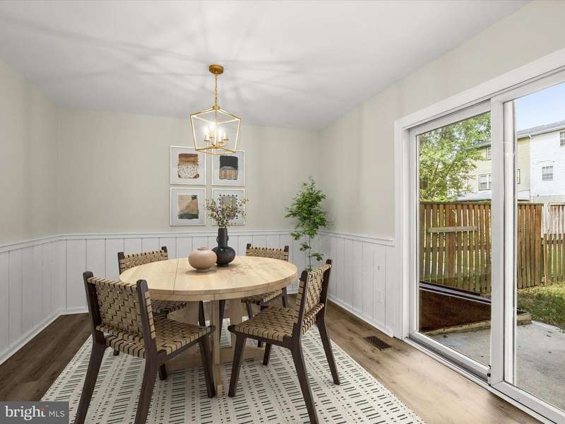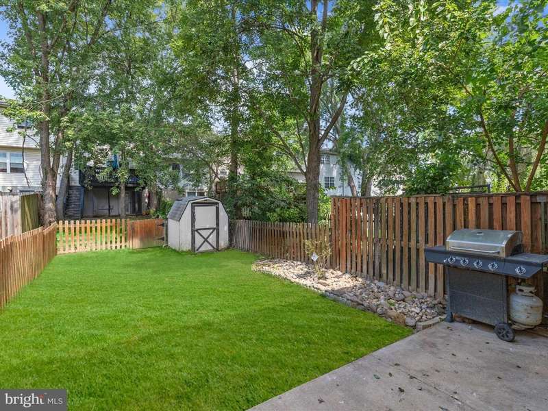 Welcome to this beautifully updated 3-bedroom, 2.5-bath townhome in the Harford Square community. The open-concept main level greets you with a spacious living room featuring wood-look laminate plank flooring for warmth and durability, complemented by a fresh, neutral color palette that creates a bright and inviting feel. The eat-in kitchen impresses with new stainless steel appliances, a stunning herringbone backsplash, quartz countertops, and brushed gold fixtures and hardware for a modern touch. A dining area with a contemporary light fixture provides the perfect spot for casual meals, while sliding glass doors lead to a fenced rear yard with a patio and storage shed for added convenience. The main-level powder room offers extra shelving behind sliding doors, ideal for pantry overflow or storage needs. Upstairs, the primary suite includes a sleek ceiling fan and a beautifully updated en suite bath with a walk-in shower surrounded by designer ceramic tile, a modern vanity, and stylish fixtures. Two additional bedrooms, each with ceiling fans and lights, plus a full hall bath, complete the upper level. The lower-level recreation room offers a comfortable space to relax, entertain, or catch the game, with laundry tucked nearby for easy access. Move-in ready and thoughtfully updated, this home offers comfort and style; schedule your showing today before it's gone! Note: Select interior photos have been virtually staged.