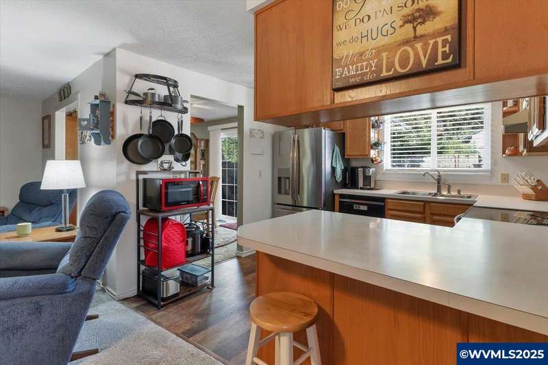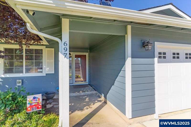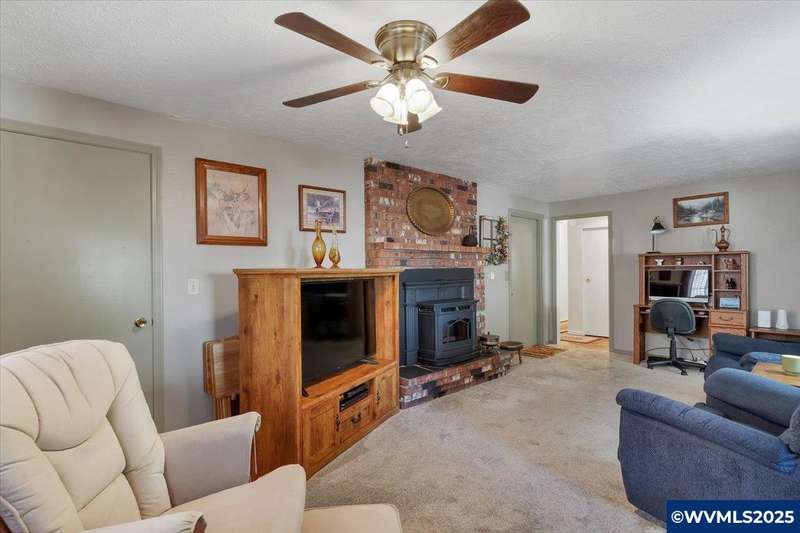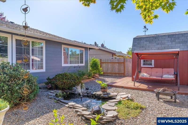Come see this impeccably cared for home, in a well-established neighborhood that showcases a blend of comfort and functionality. Recent updates include new siding, remodeled guest bathroom, windows, electrical panel, hot water heater, and a cozy pellet stove that enhances both warmth and ambiance. Step outside to a backyard oasis designed for relaxation and entertainment. Enjoy the serene water feature, vibrant flower beds, and a covered patio that ensures year-round outdoor enjoyment, rain or shine.