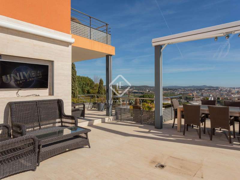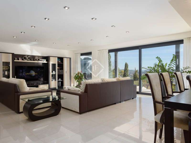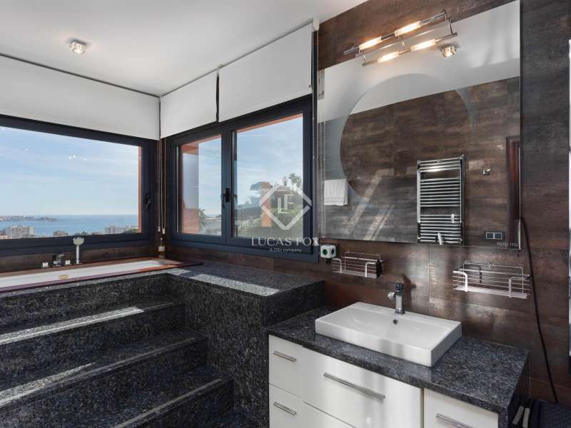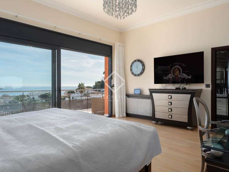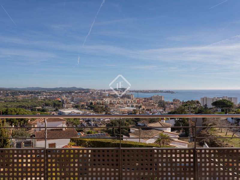 Lucas Fox presents this fabulous property with panoramic views of the Mediterranean, located a short distance from the beach of Sant Antoni de Calonge with white sand and crystal clear waters. The house was built in 2007 with high-quality materials and is in excellent condition. It sits on a 1,010 m² plot and comprises the main house and two annexes: one with a spa area, and the other with a private garage and a multi-room apartment. The villa is distributed over two floors. Upon entering the house, you'll find a grand entrance hall with a floating staircase and high ceilings. The majestic, light-filled living-dining room features sliding glass doors that open onto a large terrace surrounding the entire house, with several dining room areas , chill-out zones, relaxation areas , and a barbecue area. Downstairs, you'll find a heated infinity pool , a jacuzzi, and access to the spa area with a dry sauna. The fully equipped kitchen has access to the same terrace and is connected to a spacious laundry area and pantry. On the same floor, there is a double bedroom overlooking a lovely courtyard and a full bathroom with a shower. Ascending a beautiful staircase, we find a spacious hall with a reading area. On this floor , there are three bedrooms and two bathrooms. The fabulous main bedroom boasts high ceilings and spectacular panoramic sea views, along with a large private terrace, an en-private bathroom with a shower and a whirlpool bathtub, and a dressing room. The other two double bedrooms share a bathroom with a shower. The exterior area is very well maintained and offers multiple chill-out and relaxation areas , an outdoor dining room with automatic awnings and a barbecue area, a heated pool, a jacuzzi, a porch with a built-in television and automatic irrigation. In the annex building, there is a private garage with space for three cars, a gym, a multipurpose room or bedroom , and a bathroom with a shower. An excellent property with stunning views and very close to the beach and all amenities, with a wide range of restaurants, supermarkets and shops, ideal as a first or second home. Please contact us for more information.