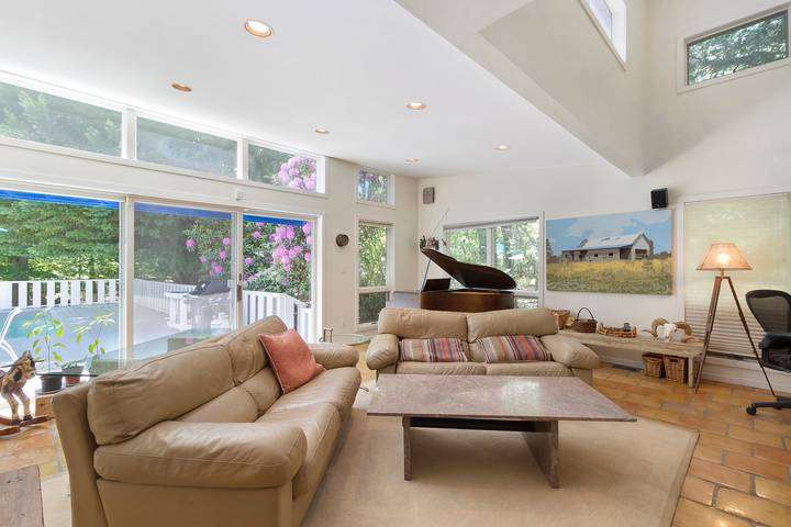 Rental Registration #: 22-89. Lovely contemporary home with spacious, private master suite, two additional lovely bedrooms, heated pool and a large deck w/retractable awning! There are three fireplaces, a large chefs kitchen with a 9-foot granite island perfect for entertaining. A finished basement with billiards table adds to the fun. Moments from the buzzy new Springs restaurants SiSi and Rita's Cantina. This home has a fabulous location just off of Three Mile Harbor Road, close to the beautiful bay beaches and just 5 minutes to East Hampton and less than 10 to Amagansett and the Ocean beaches Atlantic and Indian Wells. Listing ID 754506.