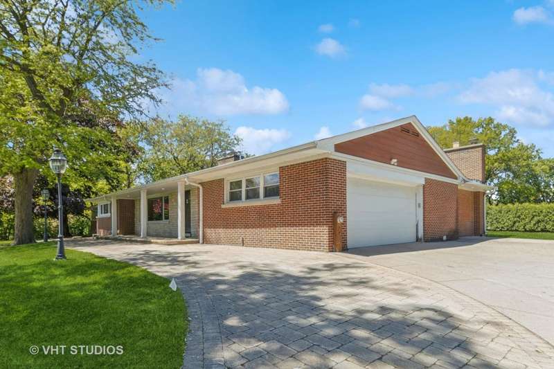 Tucked away on nearly 2 acres of peaceful, partially fenced land in Northbrook, this spacious 3 bedroom, 2.5 bathroom brick ranch offers space and comfort in a serene setting! Set far back from Willow Road, the home welcomes you with a sun-filled layout featuring a modern all-white kitchen with granite countertops and sleek black hardware. The massive primary suite includes a walk-in closet, an attached dressing room and a steam shower in the primary bathroom. Zoned heating for added comfort. Incredibly large deck overlooks the expansive yard for endless outdoor enjoyment with a unique fenced 80x40 area with Star Pro Greens Astro Turf which is easy to clean and phenomenal for dogs. A rare opportunity for space and tranquility, just minutes from town conveniences!