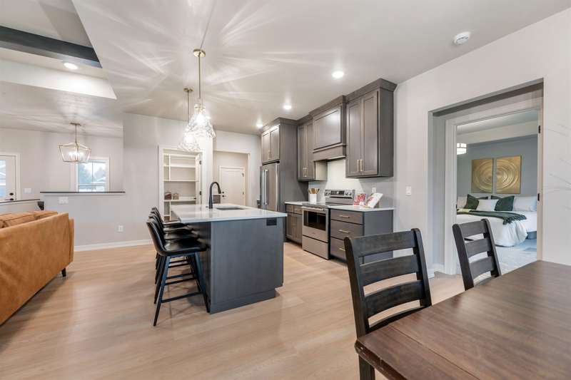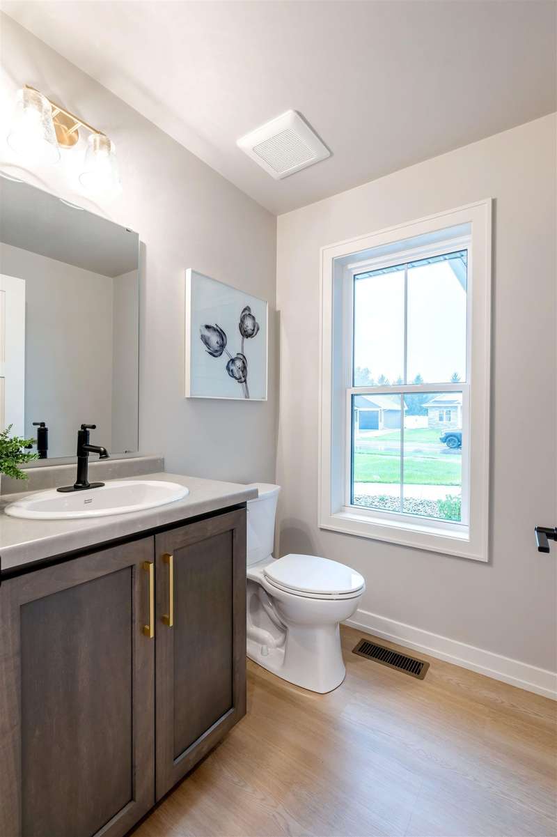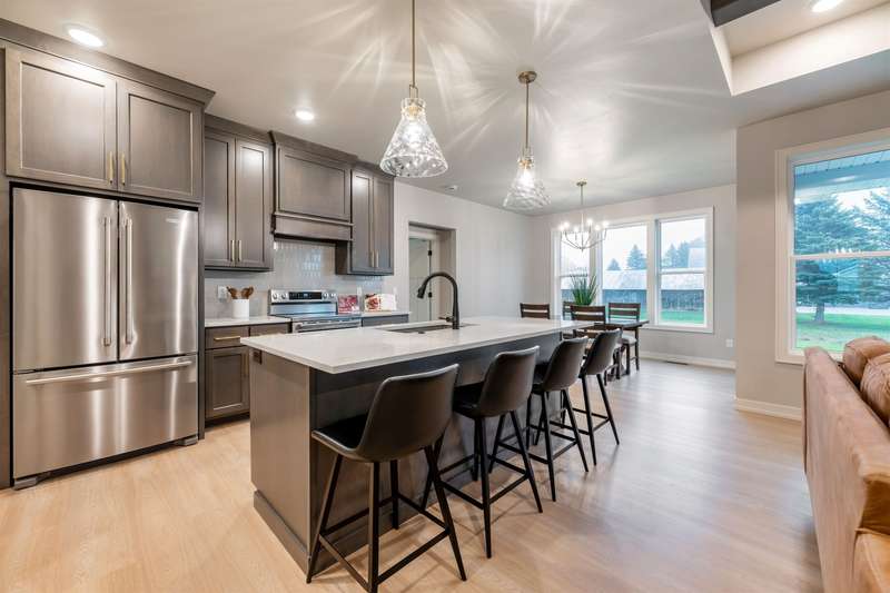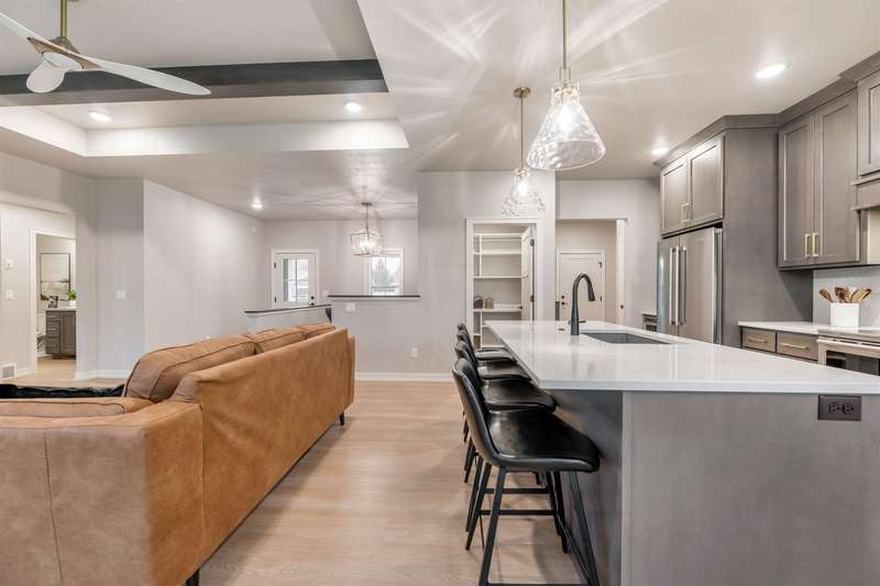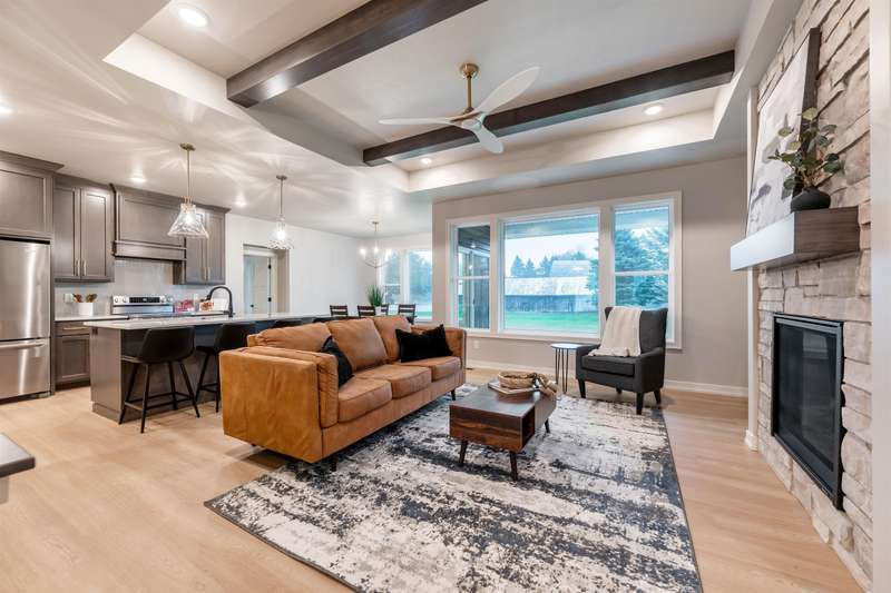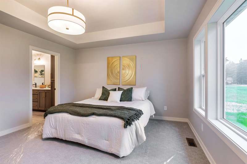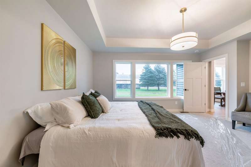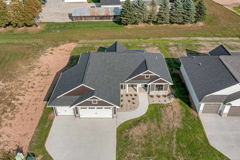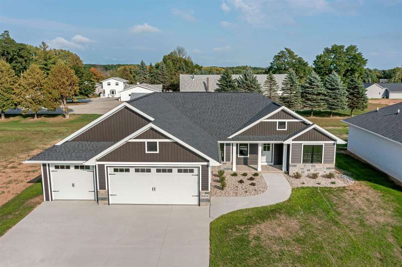 2025 Showcase Home! Stunning ranch close to schools, shopping & scenic walking trail. Step inside & you are greeted by a warm & spacious Great Room where the stone flr-to-clg FP creates an inviting atmosphere perfect for cozy nights. Kitchen features a center island that invites casual dining & entertaining w/quartz countertops, stylish tile backsplash & pantry. Retreat to the primary BR, a sanctuary that boasts a tray ceiling & generous wk-in closet. The adjoining primary bath offers dual sinks & tile wk-in shower perfect for unwinding after a long day. Step outside to a covered porch off the dining area where you can enjoy your morning coffee or entertain friends. LL stubbed for bath for future additional space. This home truly checks all the boxes for comfort & style. 9/26/25 complete