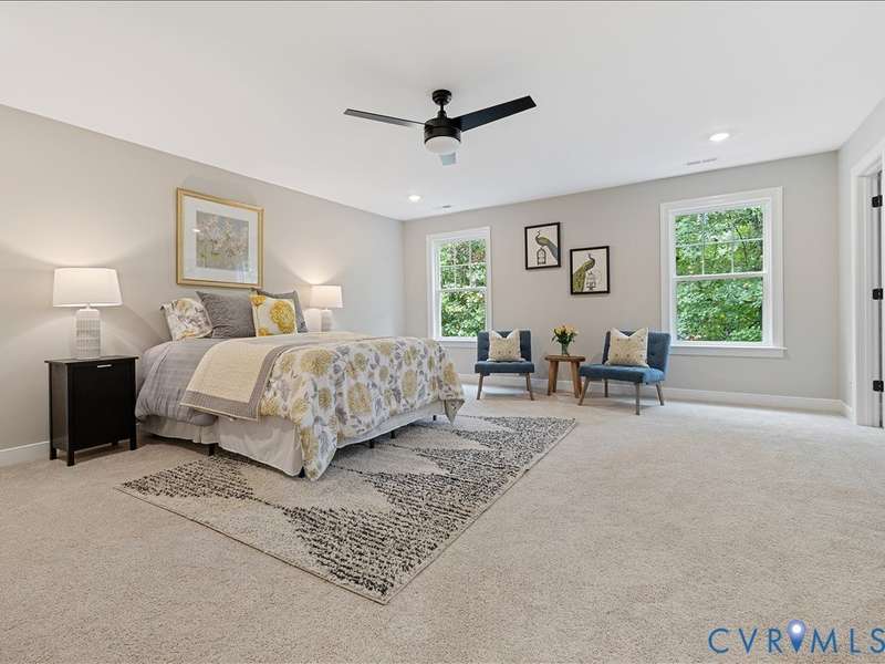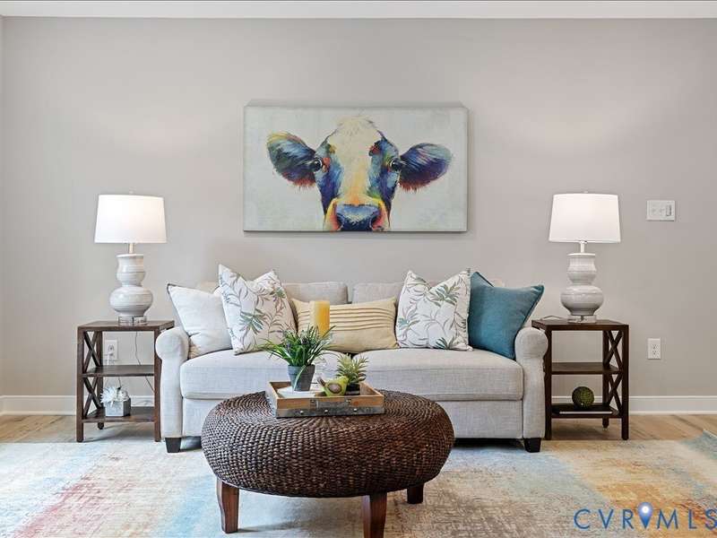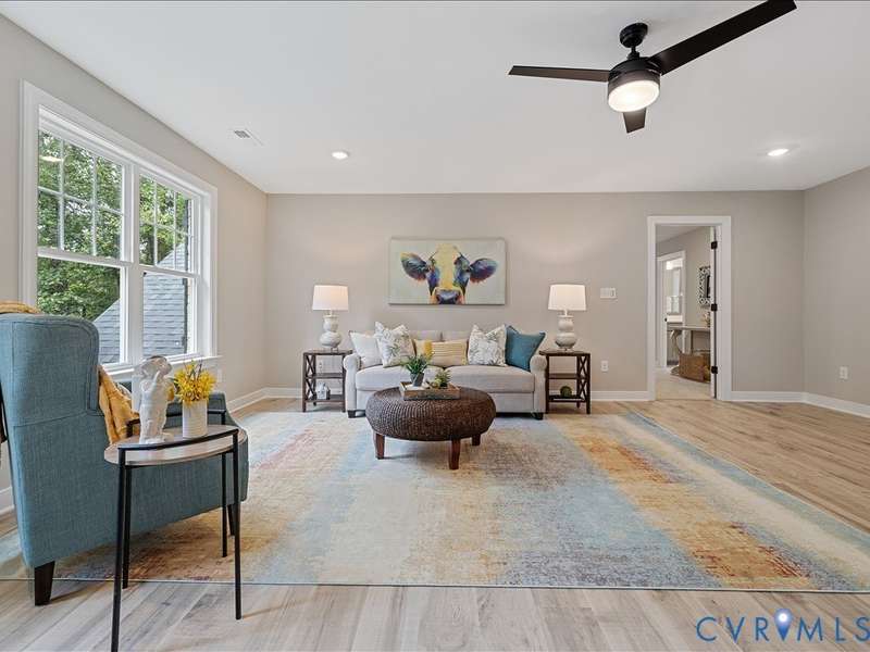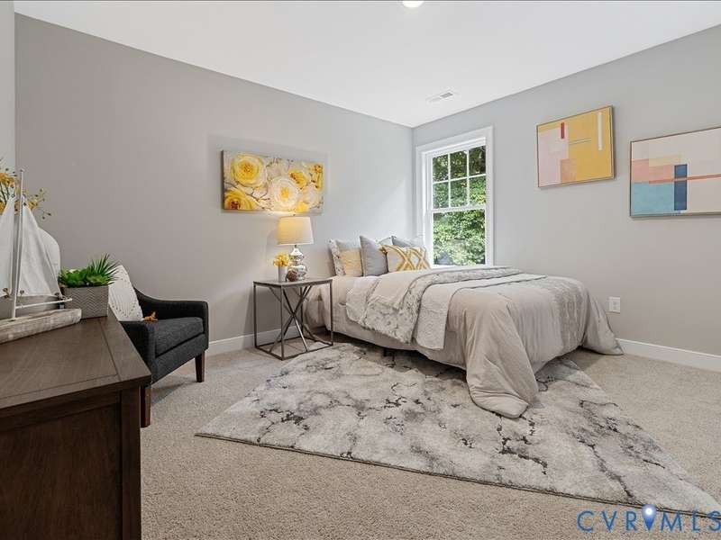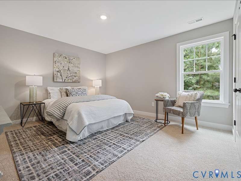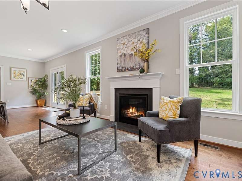 Welcome to 4321 Saratoga Rd, a stunning new construction in the desirable Huguenot Farms neighborhood. This 5-bedroom, 3-bath Lockwood III model offers over 3,000 sq ft of thoughtfully designed living space, blending timeless craftsmanship with modern design. Set on just over an acre with a brick front & low-maintenance vinyl siding, the property provides both curb appeal & privacy. A terraced paved driveway, retaining wall, & side-entry 2-car garage create a grand approach, while a rear deck overlooks the expansive backyard framed by woods. Inside, the first floor features 9-ft ceilings, engineered hardwood floors, & elegant trim details. The open-concept family room with gas fireplace flows into the chef's kitchen, showcasing quartz countertops, a large island, stainless steel GE appliances including gas cooktop & double ovens, pearl-opal tile backsplash, & Aristokraft soft-close cabinetry. A formal dining room, front flex room, full bath, laundry, & first-floor bedroom (ideal for guests or an office) add versatility. Upstairs, a spacious loft offers a second living area with durable LVP flooring, while four bedrooms include the luxurious primary suite with dual vanities, a frameless glass shower with porcelain tile, & a large walk-in closet. Secondary baths are finished with ceramic tile & designer fixtures. Additional highlights include a Rinnai tankless water heater, insulated garage, designer lighting package, ceiling fans, & a neutral interior palette ready for personalization. Thoughtfully crafted with style & function in mind, this brand-new home delivers the perfect blend of elegance, comfort, & convenience in a prime Richmond location.