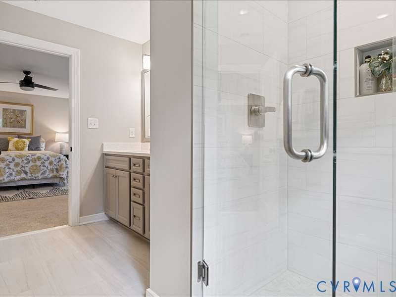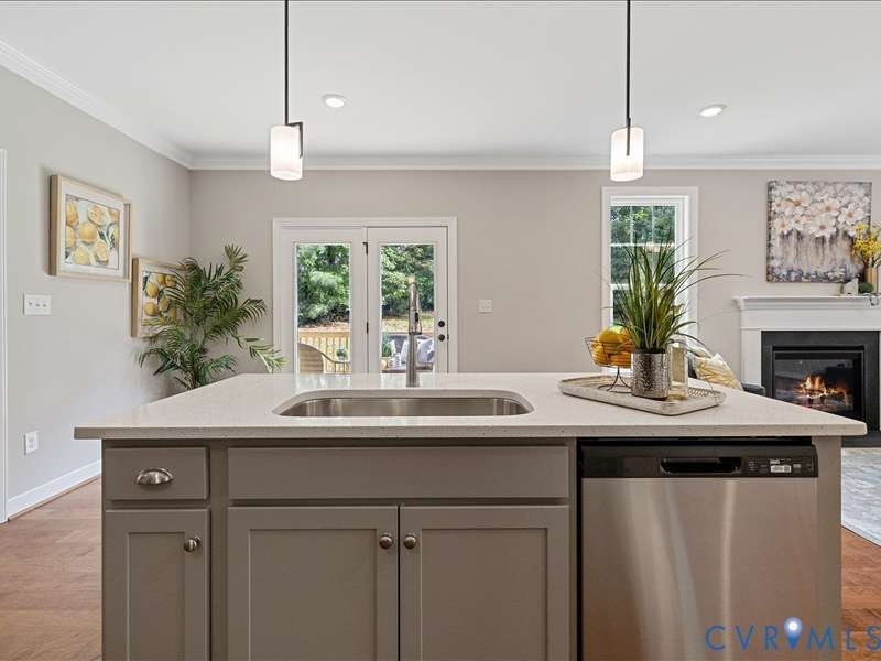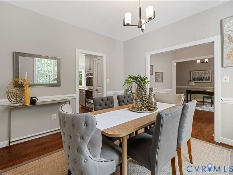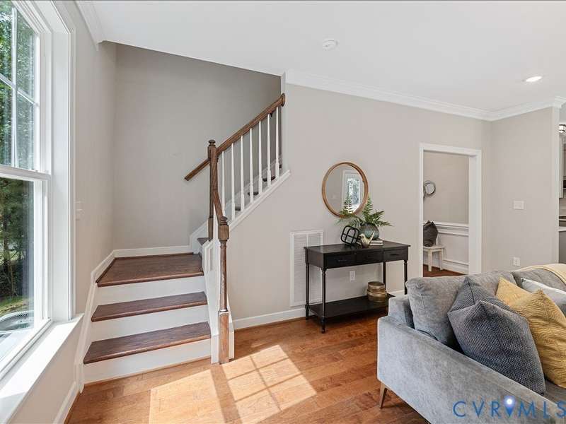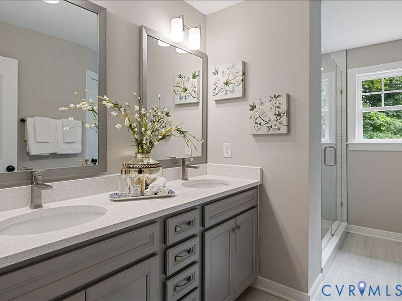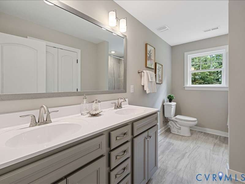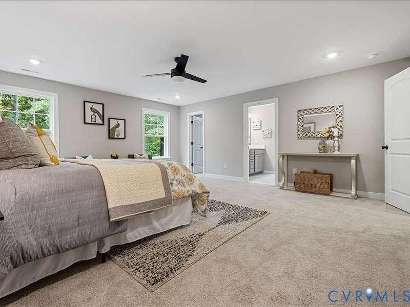 Welcome to 4321 Saratoga Rd, a stunning new construction in the desirable Huguenot Farms neighborhood. This 5-bedroom, 3-bath Lockwood III model offers over 3,000 sq ft of thoughtfully designed living space, blending timeless craftsmanship with modern design. Set on just over an acre with a brick front & low-maintenance vinyl siding, the property provides both curb appeal & privacy. A terraced paved driveway, retaining wall, & side-entry 2-car garage create a grand approach, while a rear deck overlooks the expansive backyard framed by woods. Inside, the first floor features 9-ft ceilings, engineered hardwood floors, & elegant trim details. The open-concept family room with gas fireplace flows into the chef's kitchen, showcasing quartz countertops, a large island, stainless steel GE appliances including gas cooktop & double ovens, pearl-opal tile backsplash, & Aristokraft soft-close cabinetry. A formal dining room, front flex room, full bath, laundry, & first-floor bedroom (ideal for guests or an office) add versatility. Upstairs, a spacious loft offers a second living area with durable LVP flooring, while four bedrooms include the luxurious primary suite with dual vanities, a frameless glass shower with porcelain tile, & a large walk-in closet. Secondary baths are finished with ceramic tile & designer fixtures. Additional highlights include a Rinnai tankless water heater, insulated garage, designer lighting package, ceiling fans, & a neutral interior palette ready for personalization. Thoughtfully crafted with style & function in mind, this brand-new home delivers the perfect blend of elegance, comfort, & convenience in a prime Richmond location.