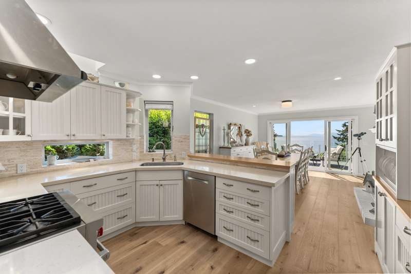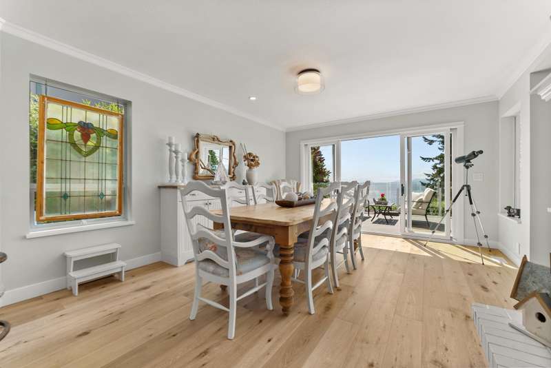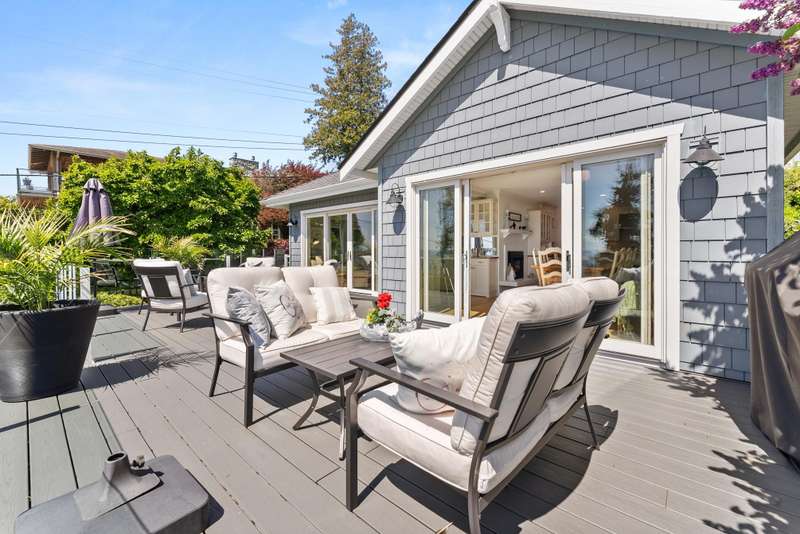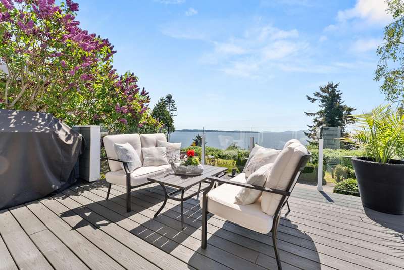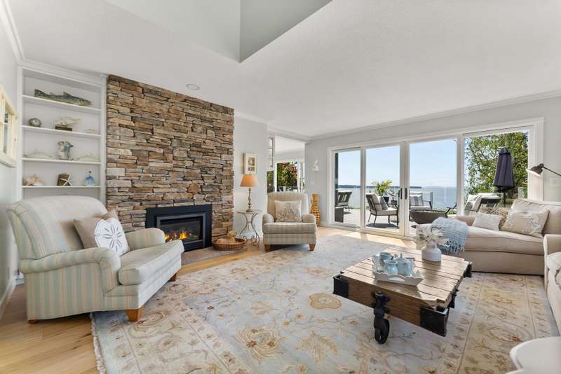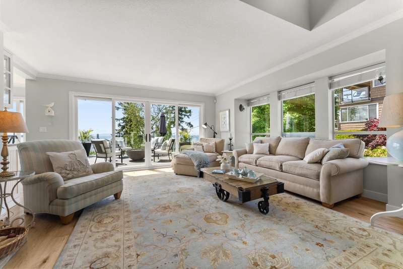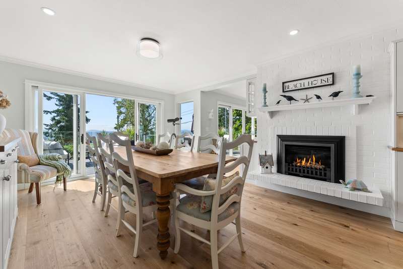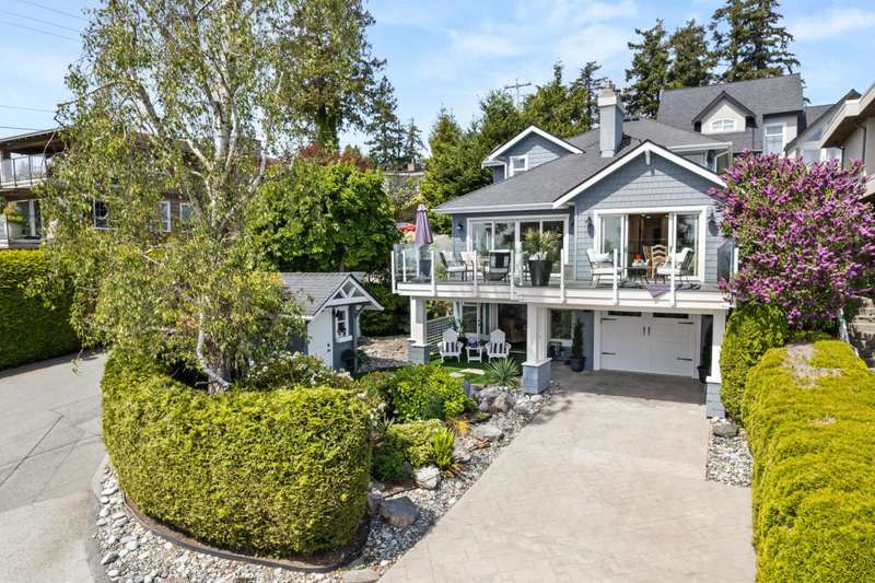 A rare opportunity to own on the bluff along a peaceful no-thru road, where breathtaking ocean views and soaring eagles are part of everyday life. This impeccably maintained 3 BD, 2-storey home with a full bsmt has been extensively renovated with quality craftsmanship and thoughtful design. All 3 levels provide vantage points to enjoy the stunning ocean scenery. Tastefully decorated in a coastal palette, the home blends elegance and warmth. The main floor offers bright, open living spaces designed for everyday comfort. Upstairs, the resort-style primary BD is a true retreat, complete with a private deck and ensuite. The bsmt includes a BD, large rec room, and wet bar. Surrounded by beautifully landscaped gardens, this home embodies the essence of coastal living.