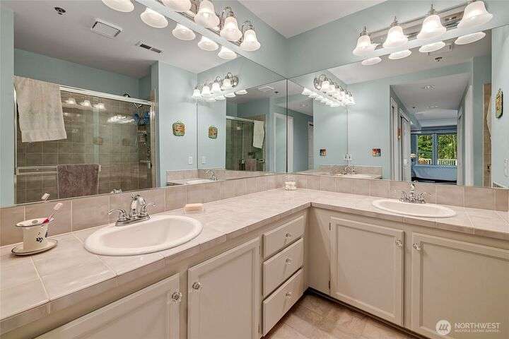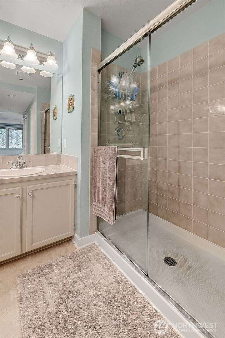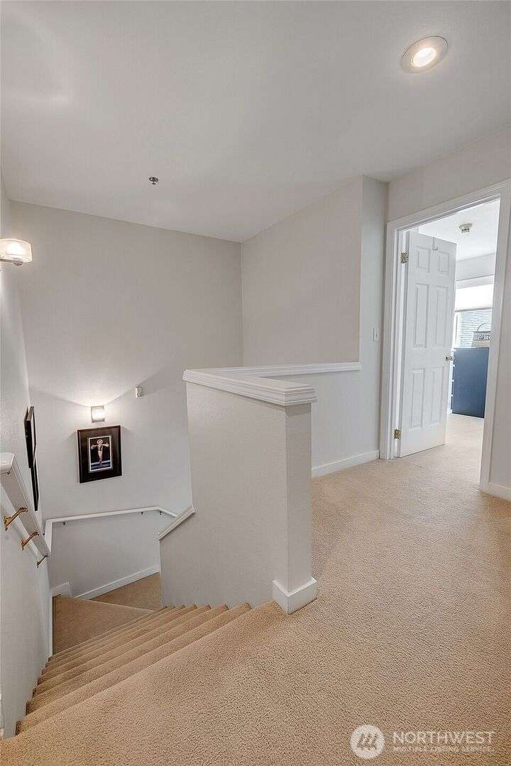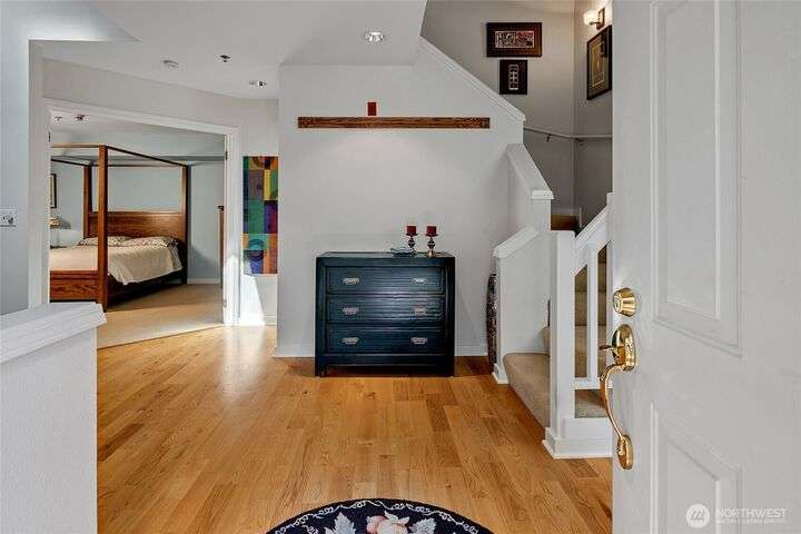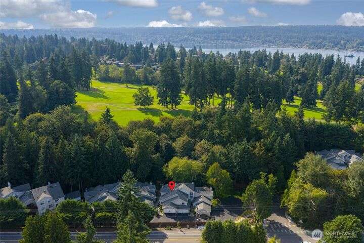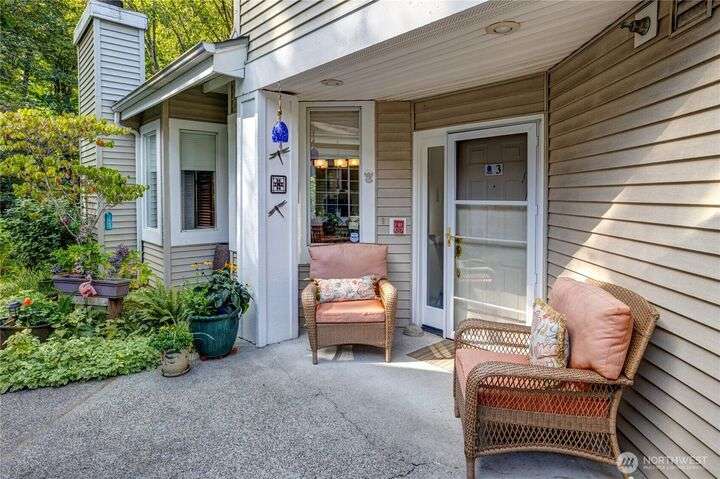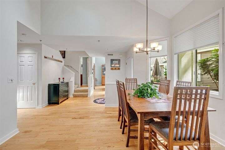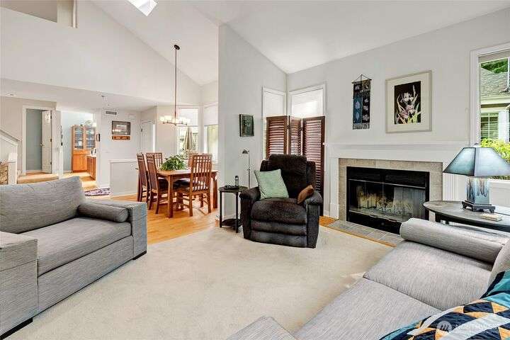 Light-filled, updated three-bedroom, 2.5-bath townhouse located in Canterbury at Inglewood along the Inglewood Golf Course. Enjoy fantastic natural light and private views of lush green space and golf course from large windows and private back deck. Main level features living space with vaulted ceilings, skylight and wood fireplace, primary suite w/walk in closet, dining room and large kitchen with eating nook. Zero step main level! Flexible upper level with 2 beds and a full bath, perfect for guest space, home office or hobby room. Large 2 car attached garage with built in shelving... so much storage space. Relaxing, private location close to St Edward State Park and Burke-Gilman Trail with easy access to 522, Seattle, Kirkland and more!
