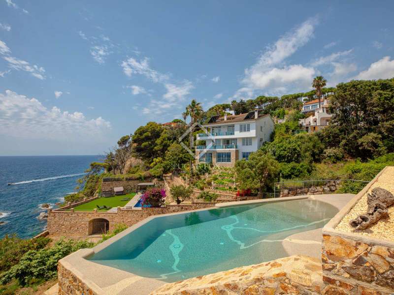 Lucas Fox presents this beautiful house on the seafront with direct access to the coastal path. Less than 100 meters away there are two bathing areas with access from the rocks, perfect for enjoying the tranquility, since they are little frequented. The house is surrounded by wooded areas classified as rustic areas , so the area enjoys a low construction density. It is just 20 minutes walk or 5 minutes by car from the centre of Lloret. Canyelles Cove, with its marina, several restaurants and a tennis club, is also nearby. Sandy beaches such as Cala Trons, Sa Caleta, Cala Canyelles and Playa Gran complete the attractiveness of the area. The house is distributed over several floors that adapt to the sloping terrain. It is built with the air chamber method, which maintains a space between the rock and the walls, to achieve good ventilation and use these spaces as a wine cellar or warehouse. At street level, there is a garage with space for a large car and a motorcycle. Through a few steps we reach the main entrance, followed by a separate kitchen . From the kitchen, there is access to the terrace, the pool and the garden. Next, there is the spacious living room with impressive views of the sea, thanks to the large windows that lead to the terrace. At the back of the living room there is a complete bathroom with a shower. On the lower floor , there is a practical laundry room with storage space. Next, three bedrooms in total are offered, including the master with exclusive access to the terrace and a private bathroom with shower. The other two double bedrooms share a bathroom. Exterior, there is an independent apartment with its own entrance, two bedrooms with natural light and a full bathroom . Likewise, it offers a garden and a compact sand pool with saline chlorination and easy maintenance. Among its qualities, it is worth highlighting the Snadeiro Italian design kitchen, equipped with high quality appliances , including a Siemens oven with microwave and steam and a Foster gas stove, fiber optic connection, solar panels for energy production and diesel heating with a prepared aerothermics . Get in touch for more information.