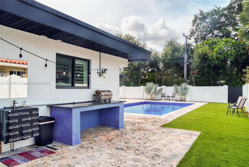 This fully renovated 4BD/3BA pool home in Miami Shores offers 2,600+ SF of elegant living. Designed for the discerning buyer, it features a spacious formal living/dining area and a chef’s kitchen with a marble island, custom cabinetry, and high-end appliances. The split-bedroom layout includes a luxe primary suite with dual walk-in closets and a spa-style bath. Enjoy impact windows/doors, a steel roof, LED lighting, Italian porcelain floors, and new fencing. Timeless elegance meets modern appeal. Walking distance to magnet schools nestled on a close-knit residential neighborhood.