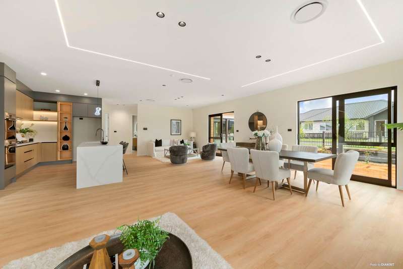 Are you searching for a solid, spacious home with a large, flat section that offers the flexibility to accommodate extended family or earn extra income to support your mortgage? Look no further—this exceptional property is the perfect solution! Designed for the modern family, this home boasts open-plan living bathed in natural light, ensuring all-day sun. It offers five generous bedrooms, three contemporary bathrooms, a double internal access garage, secure off-street parking, and ample storage spaces. A standout feature is the separate living quarters, complete with two bedrooms, its own entrance, a separate living room, a bathroom, and a wet bar area. This versatile space is ideal for hosting grandparents, extended family, or flatmates, providing privacy and independence for all. This beautiful family residence was constructed with long-lasting, quality materials—brick and weatherboard—and finished with top-tier fittings throughout. For peace of mind, a Ten-Year Master Builder Guarantee is included. Situated on a large, flat corner section of approximately 503m² (approx), the property features a beautifully landscaped, tropical-inspired garden. The home itself offers a generous floor area of (approx) 226m². The open-plan lounge and dining area, featuring an electric fireplace, flows seamlessly through a slider to a large, private deck—the perfect space for entertaining family and friends. The luxurious master suite boasts a large walk-in wardrobe, an ensuite, and a private door leading directly to the deck and garden for those moments of quiet relaxation. Premium Features Included: • 2.7-meter high ceilings for an airy, spacious feel. • The kitchen has modern engineered countertops & double oven & Bosch appliances; • Central air conditioning unit for year-round comfort. • Central vacuum system. • CCTV system and alarm. • Fibre connection ready. • Electric fireplace. Enjoy the convenience of a superb location. The home is zoned for Orewa College and is just a short walk to a local reserve, the newly opened kindergarten and Primary School, and the future Shopping Centre currently under construction. Commuting is easy with a short drive to the motorway via the new Pine Valley Road, Park & Ride, and Silverdale Shopping Centre. This is a fantastic opportunity for an established or growing family! Call us now for more information and to arrange a viewing.