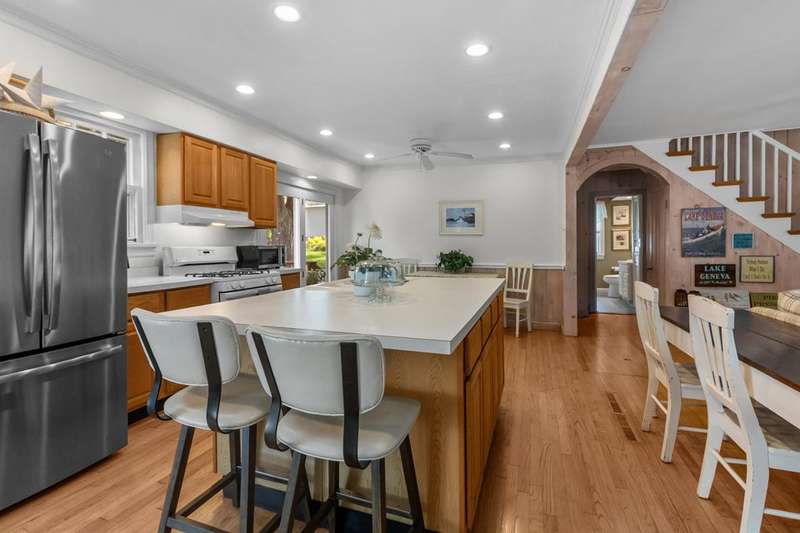 Discover this charming 5-bedroom/3-bath lake cottage on a spacious three-lot property in the coveted Lake Geneva Beach Association. Just a short walk to the private lakefront park with sandy play area, basketball court, pier, swim platform, and water slide. Inside, a cozy living room with fireplace, open kitchen, and multiple gathering areas welcome family and friends. Outdoors, enjoy a large deck overlooking the yard--ideal for games or evening fires. Whether you're planning weekend escapes or seeking a year-round retreat, this home provides the perfect backdrop for creating lasting memories at the lake! (5th bedroom could be used as a game room or den)